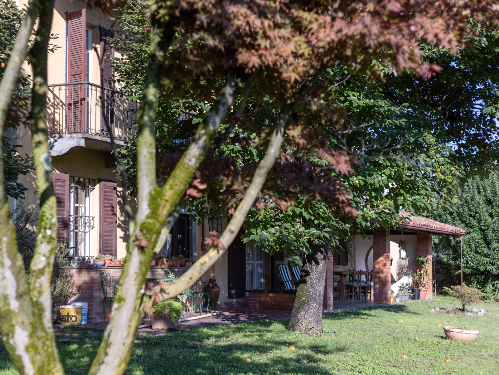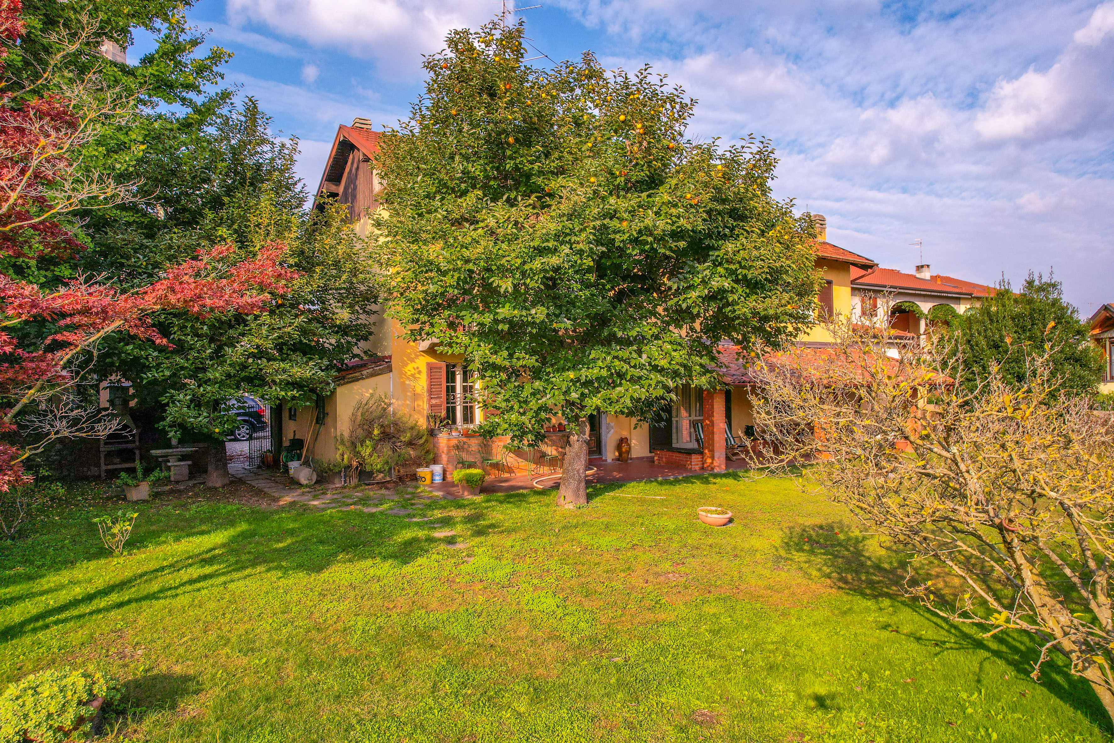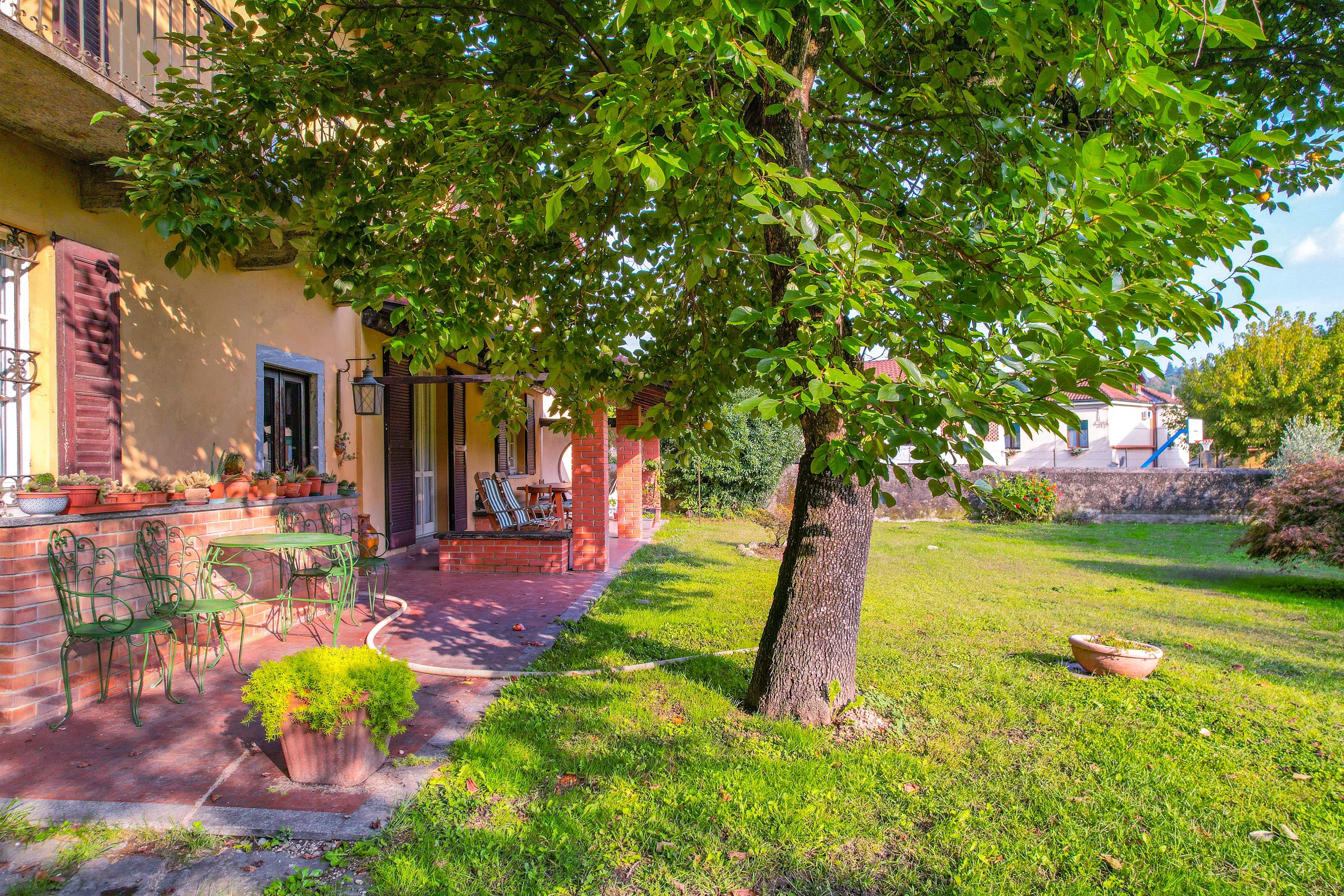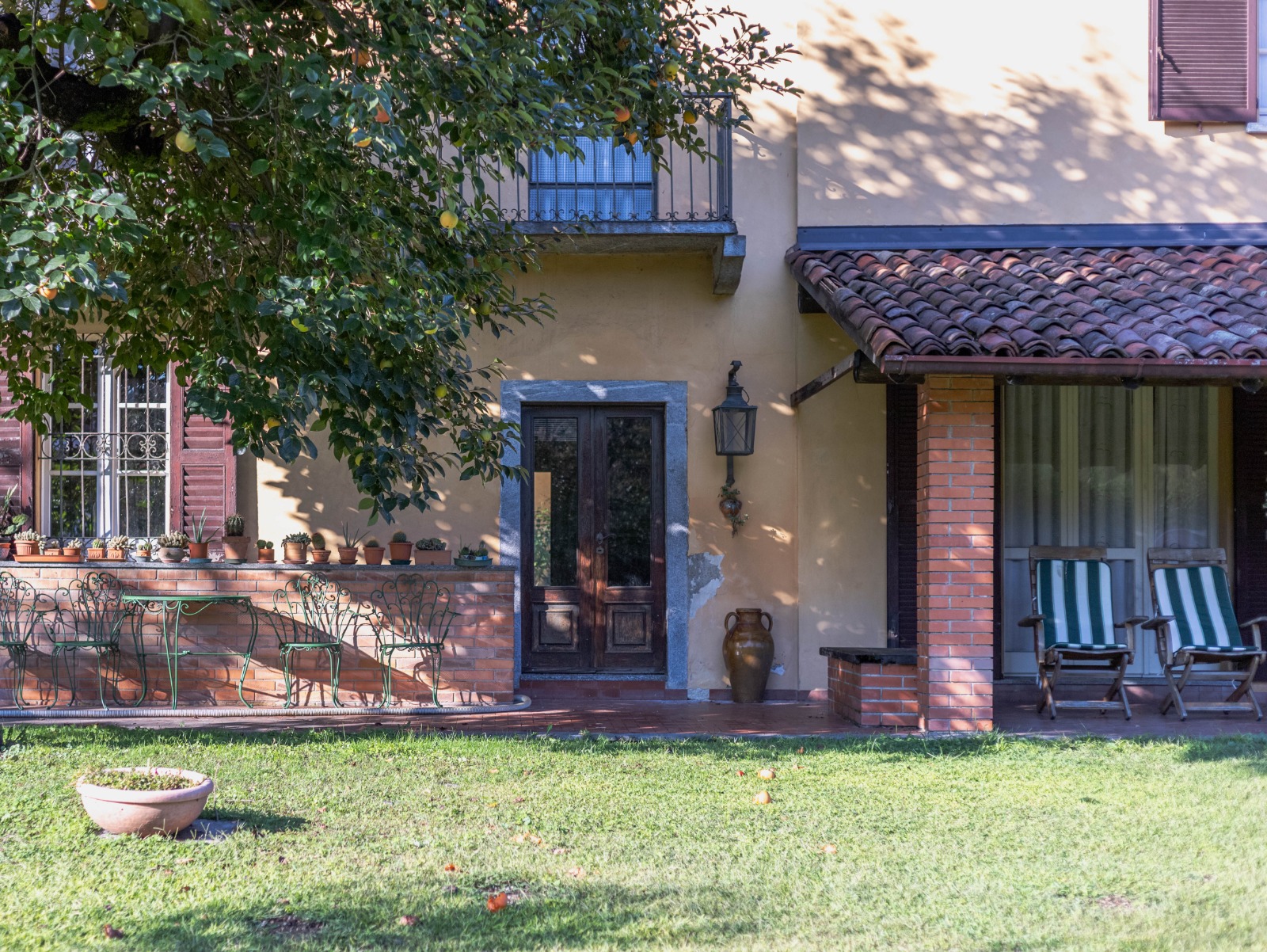 Dal cortile si accede poi ad uno spazioso giardino di circa 800 metri quadri completamente pianeggiante, sul quale si affaccia il portico dell’appartamento più grande.