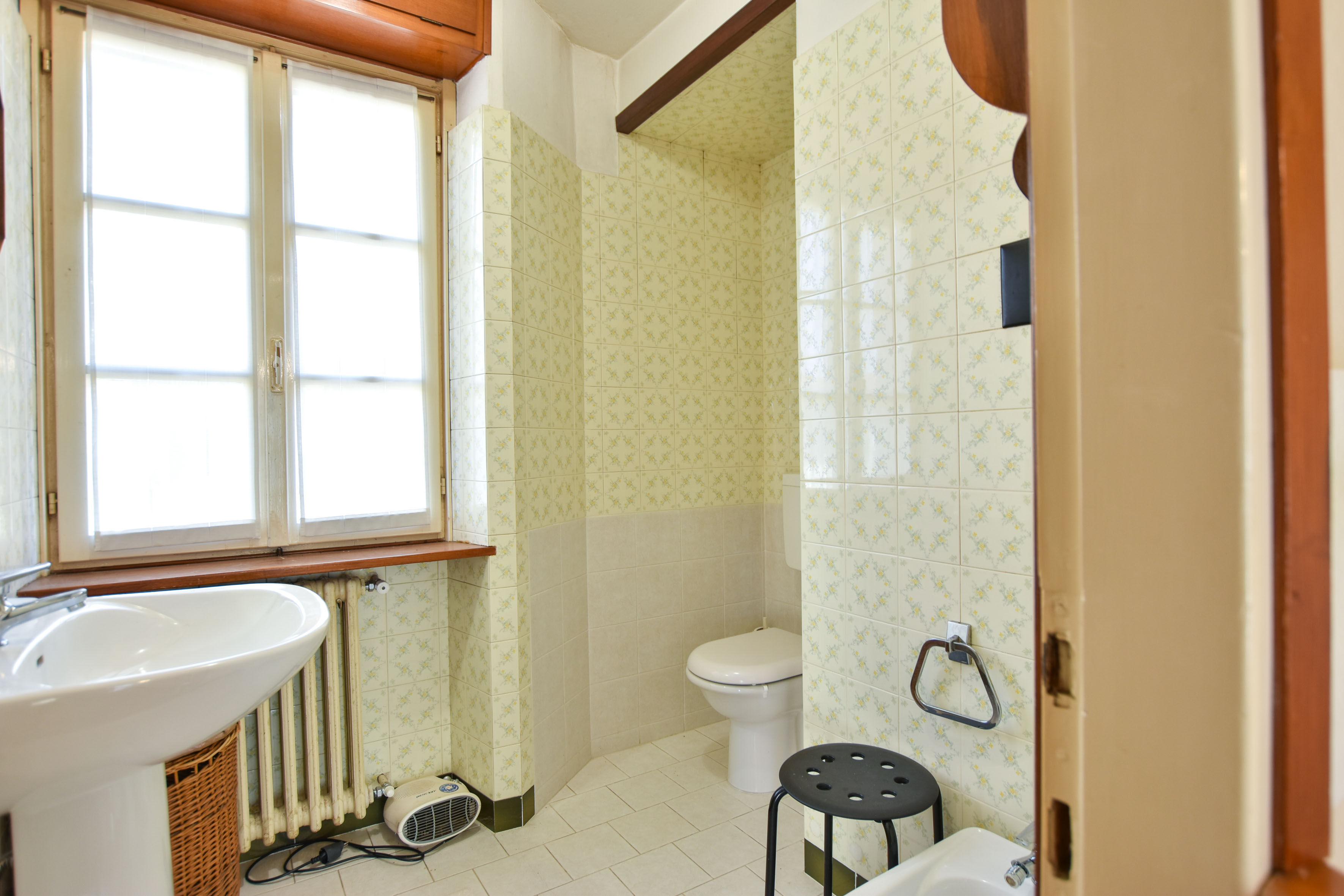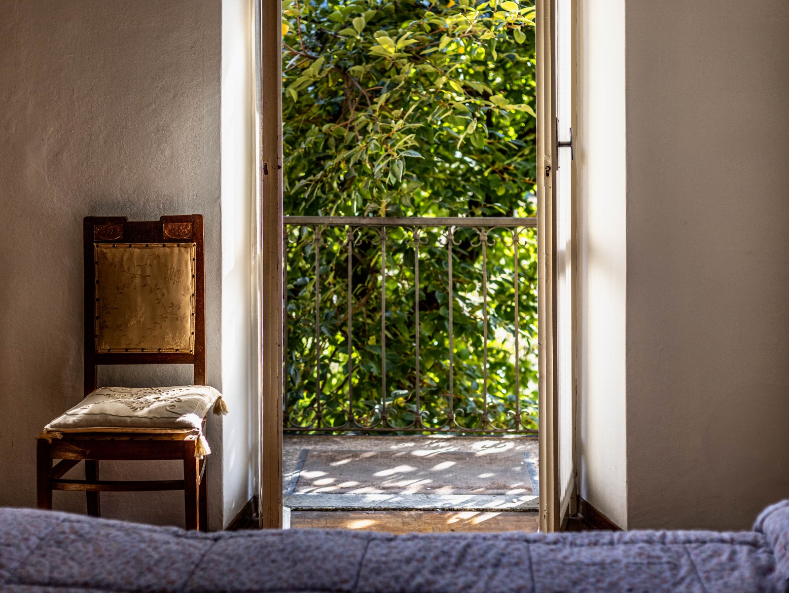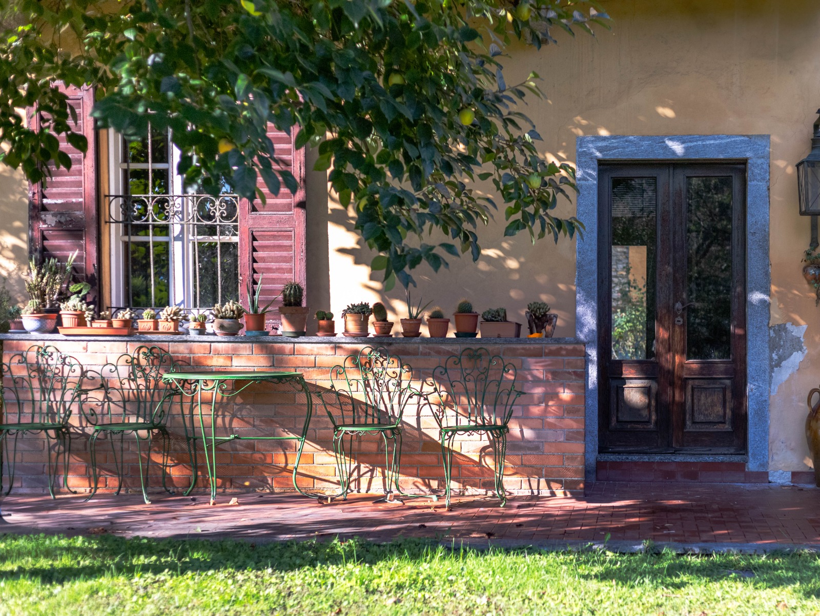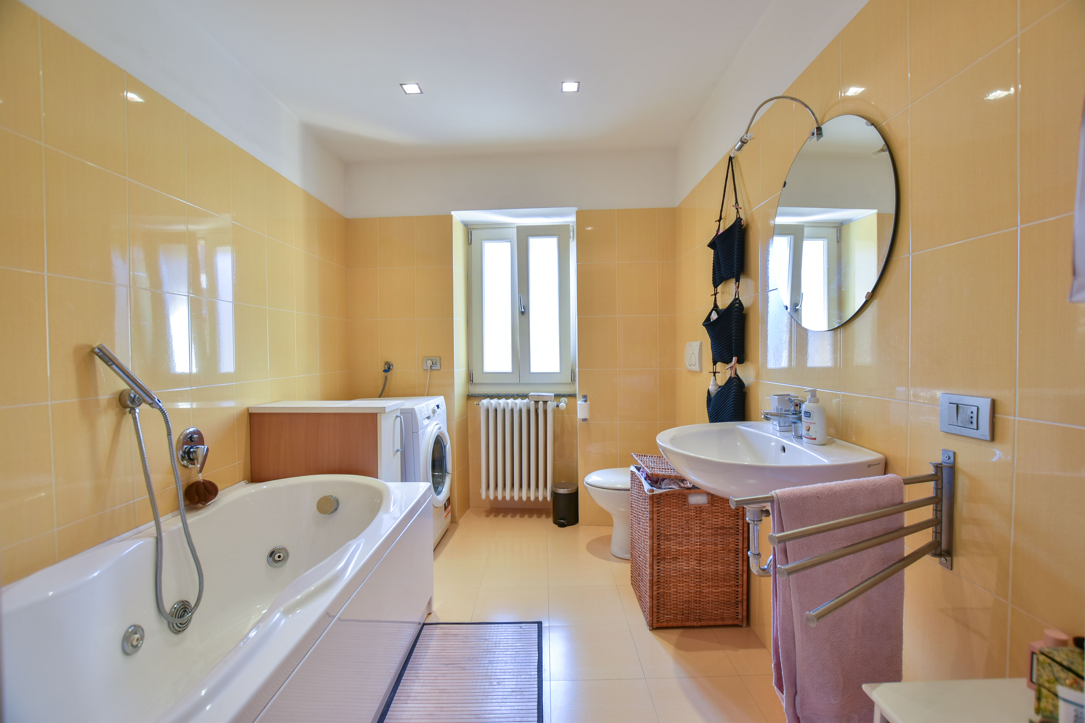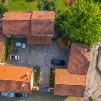 Dal cortile si accede poi ad uno spazioso giardino di circa 800 metri quadri completamente pianeggiante, sul quale si affaccia il portico dell’appartamento più grande.