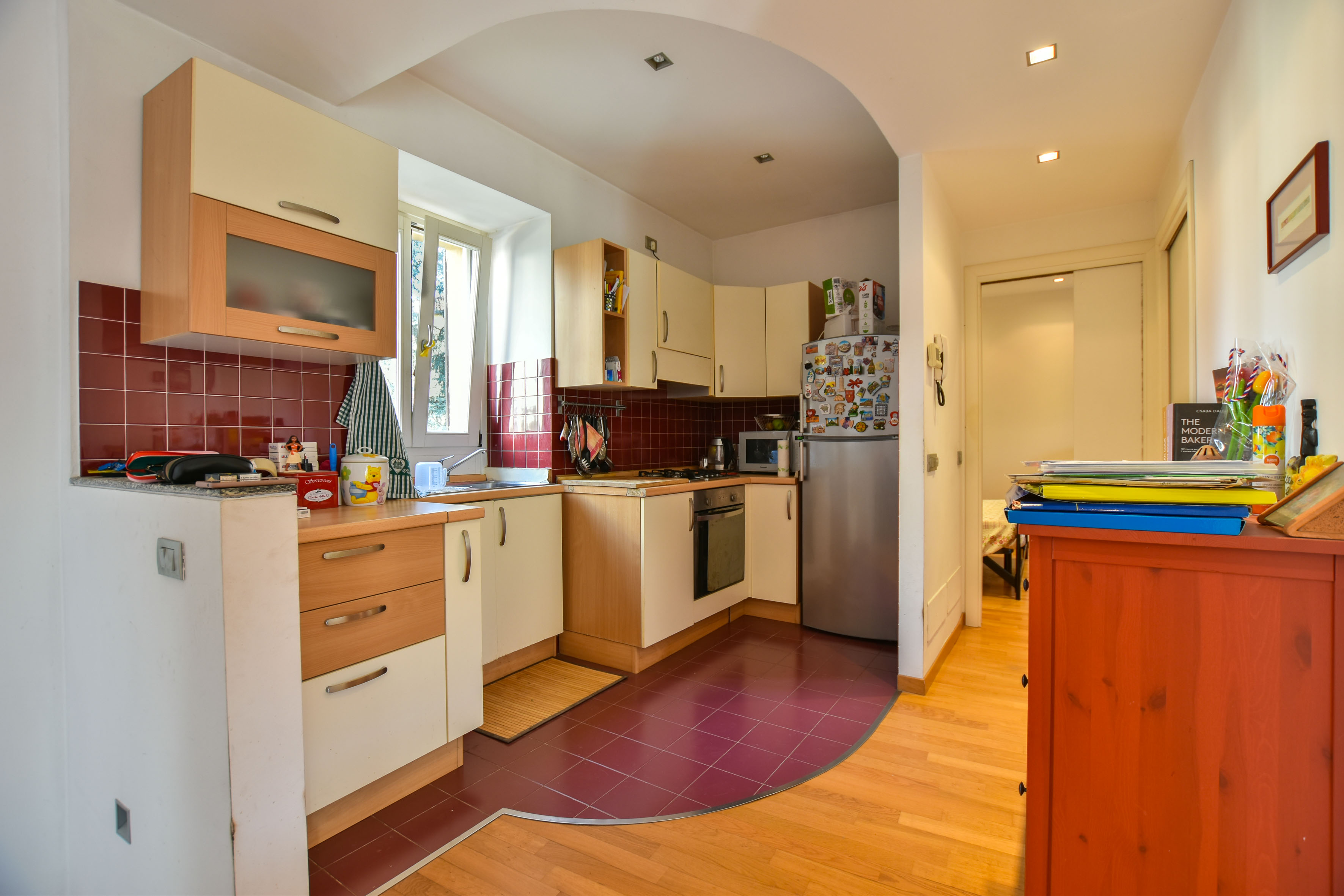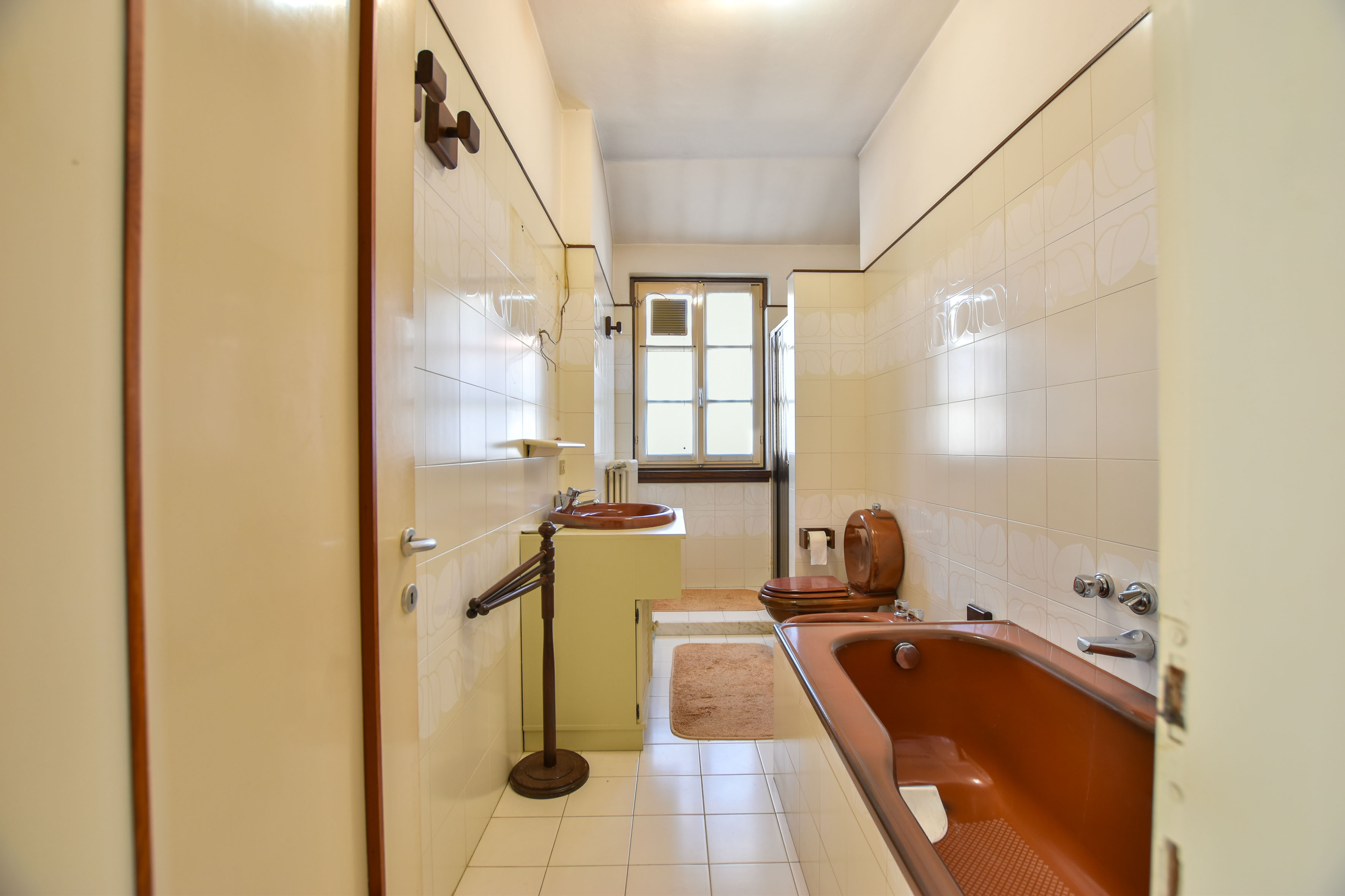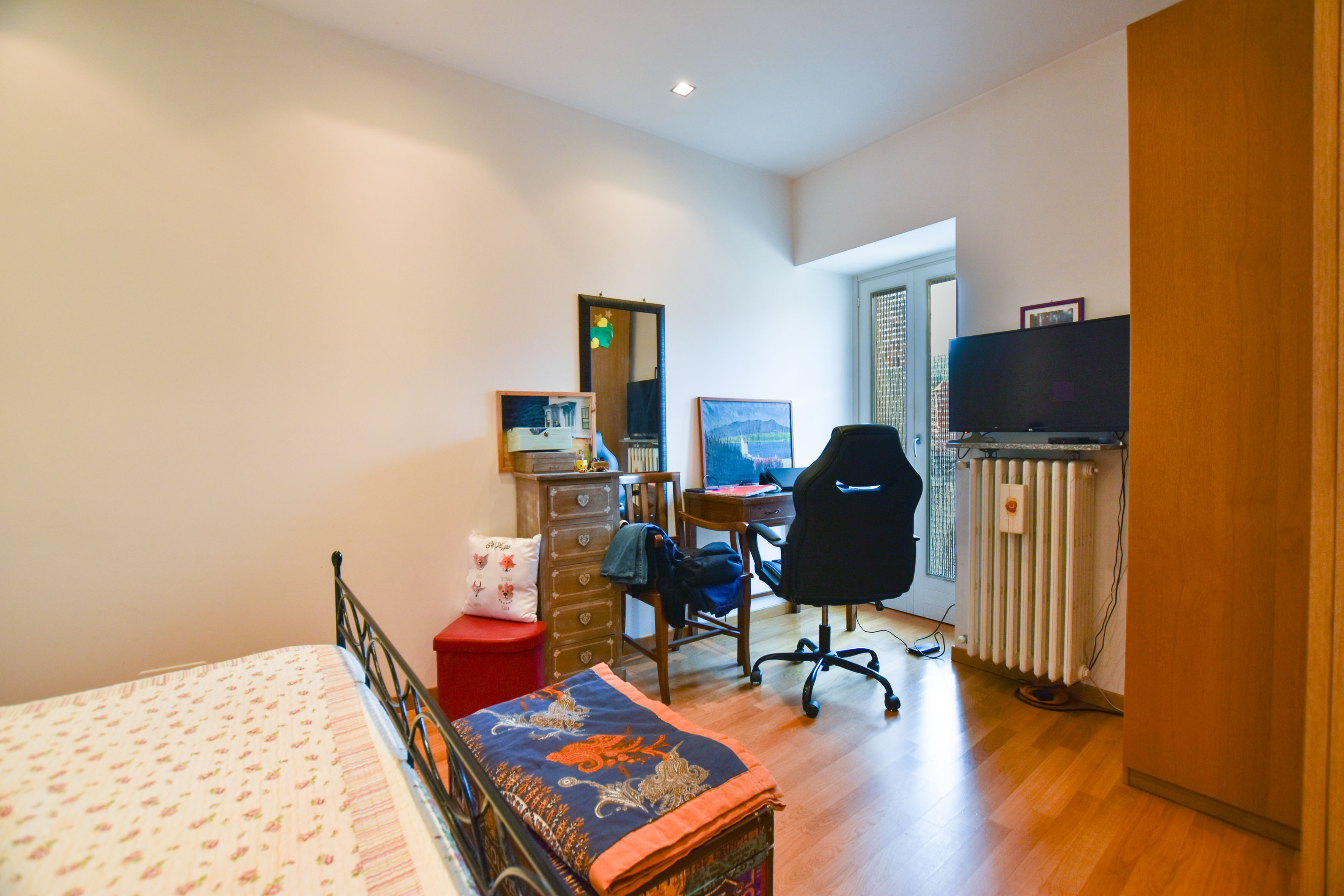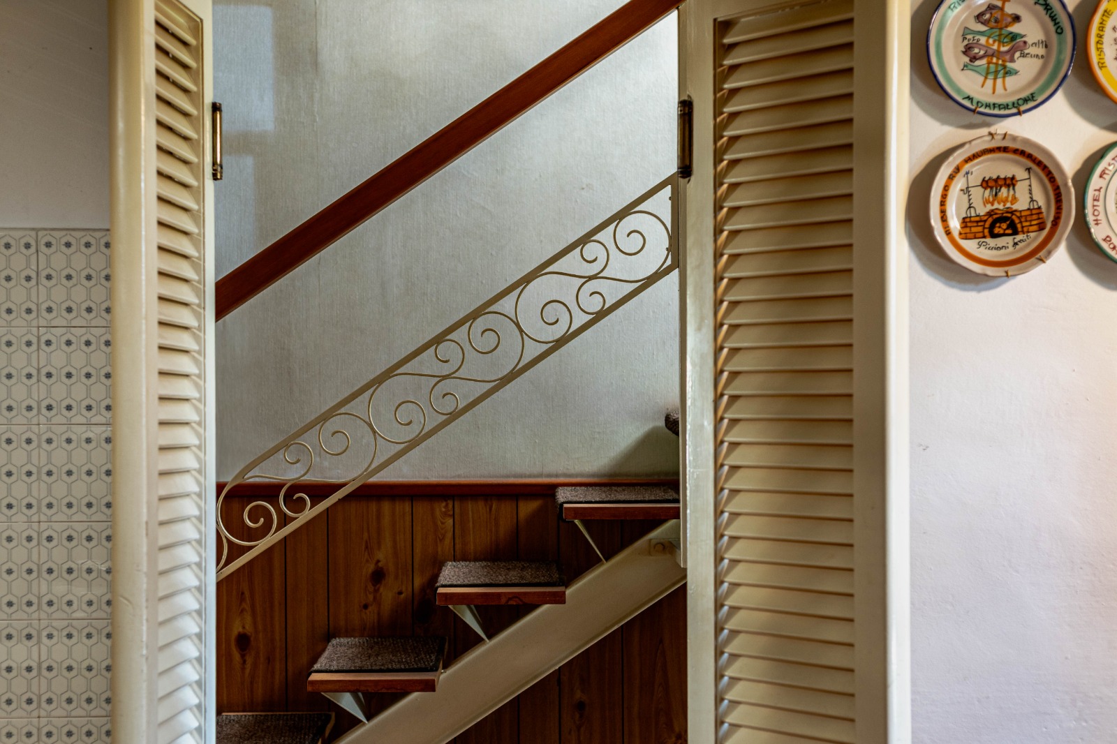 Al piano superiore si trovano un luminoso soggiorno con camino e zona pranzo, un angolo cottura e un secondo bagno con doccia, oltre a una camera matrimoniale con accesso al balcone. Gli infissi sono in legno con doppi vetri e il riscaldamento è autonomo a gas con radiatori.