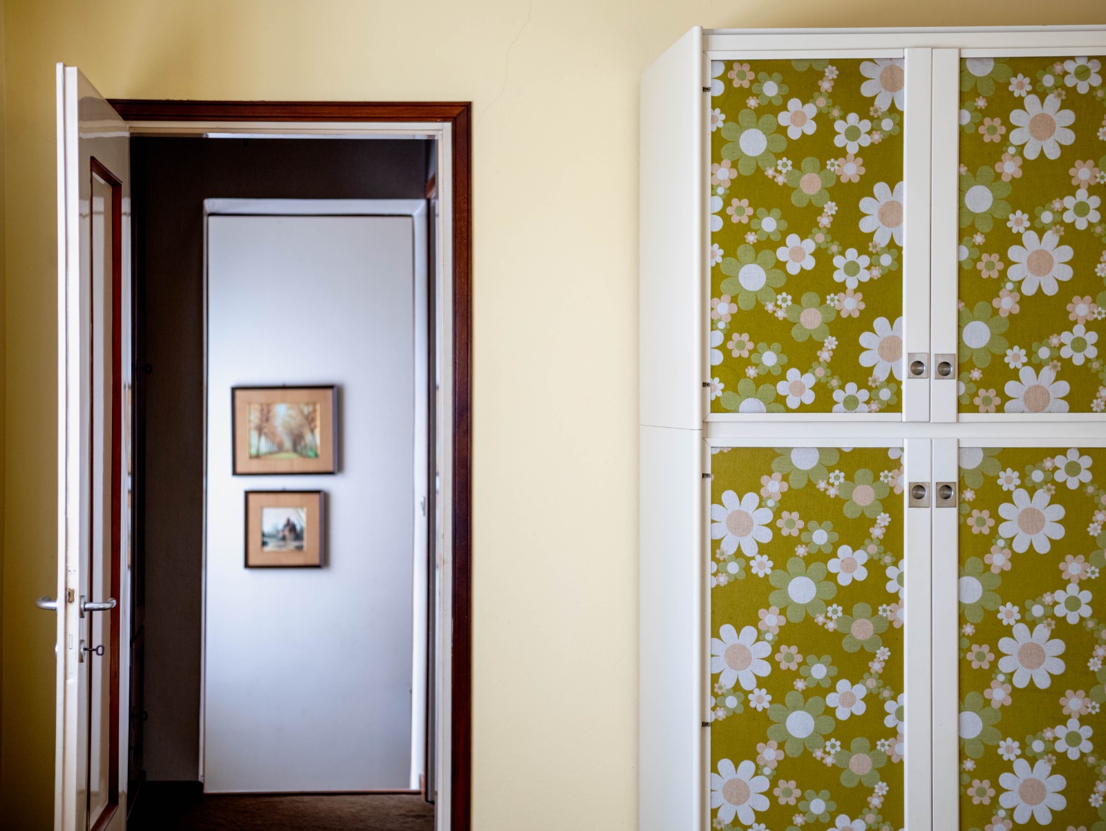 L’ingresso si apre su un disimpegno che conduce a un bagno con doccia e spazio lavanderia e a una camera da letto.