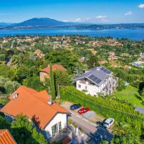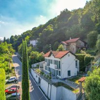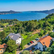 A pochi minuti dalle sponde del Lago Maggiore, immersa nel verde delle colline di Lesa, questa villa indipendente di inizio Novecento racconta un’eleganza d’altri tempi reinterpretata in chiave contemporanea. La sua posizione, soleggiata e silenziosa, regala un’atmosfera serena e riservata, con scorci incantevoli che si aprono sul blu del lago. L’abitazione si sviluppa su tre livelli, per una superficie complessiva di circa 200 mq. Al piano principale si accede a una luminosa zona giorno, dove ampie vetrate incorniciano il paesaggio naturale circostante e accompagnano l’accesso diretto a una terrazza con vista panoramica, perfetta per rilassarsi o accogliere ospiti all’aperto. La cucina abitabile, spaziosa e funzionale, si presta a una quotidianità autentica e accogliente. La zona notte è composta da tre camere ben distribuite, pensate per garantire tranquillità e comfort. Il piano inferiore offre una taverna con locali di servizio, ideale come spazio multifunzione o area hobby. Tutto attorno, un giardino privato di circa 1.000 mq, curato e ben integrato nel paesaggio, offre la possibilità di vivere gli spazi esterni in ogni stagione. L’intervento di ristrutturazione terminato nel 2013 ha restituito nuova vita all’immobile, preservandone l’anima storica ma dotandolo di tutti i comfort essenziali per l’abitare contemporaneo. Un elemento di assoluto valore è il progetto, già approvato, per la realizzazione di un’autorimessa direttamente collegata ai livelli interni della casa: una soluzione rara, che aggiunge ulteriore funzionalità senza intaccare l’armonia architettonica della villa. Ideale come elegante dimora per le vacanze o come residenza principale per chi desidera vivere a contatto con la natura, senza rinunciare al fascino e alla storia di un luogo autentico.