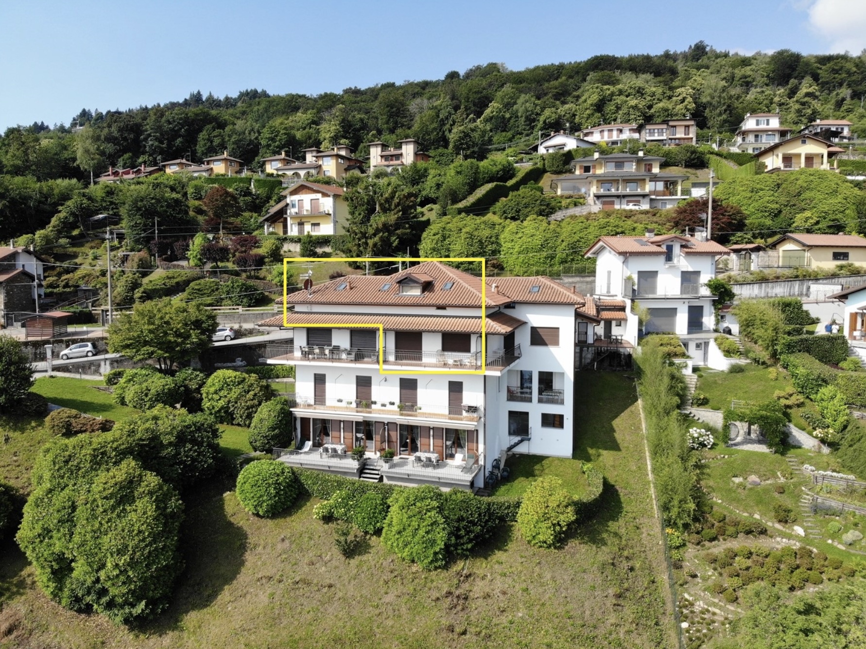 Sulle prime alture di Stresa, Perla del Lago Maggiore, nella frazione di Levo, è in vendita appartamento con bellissima vista lago.