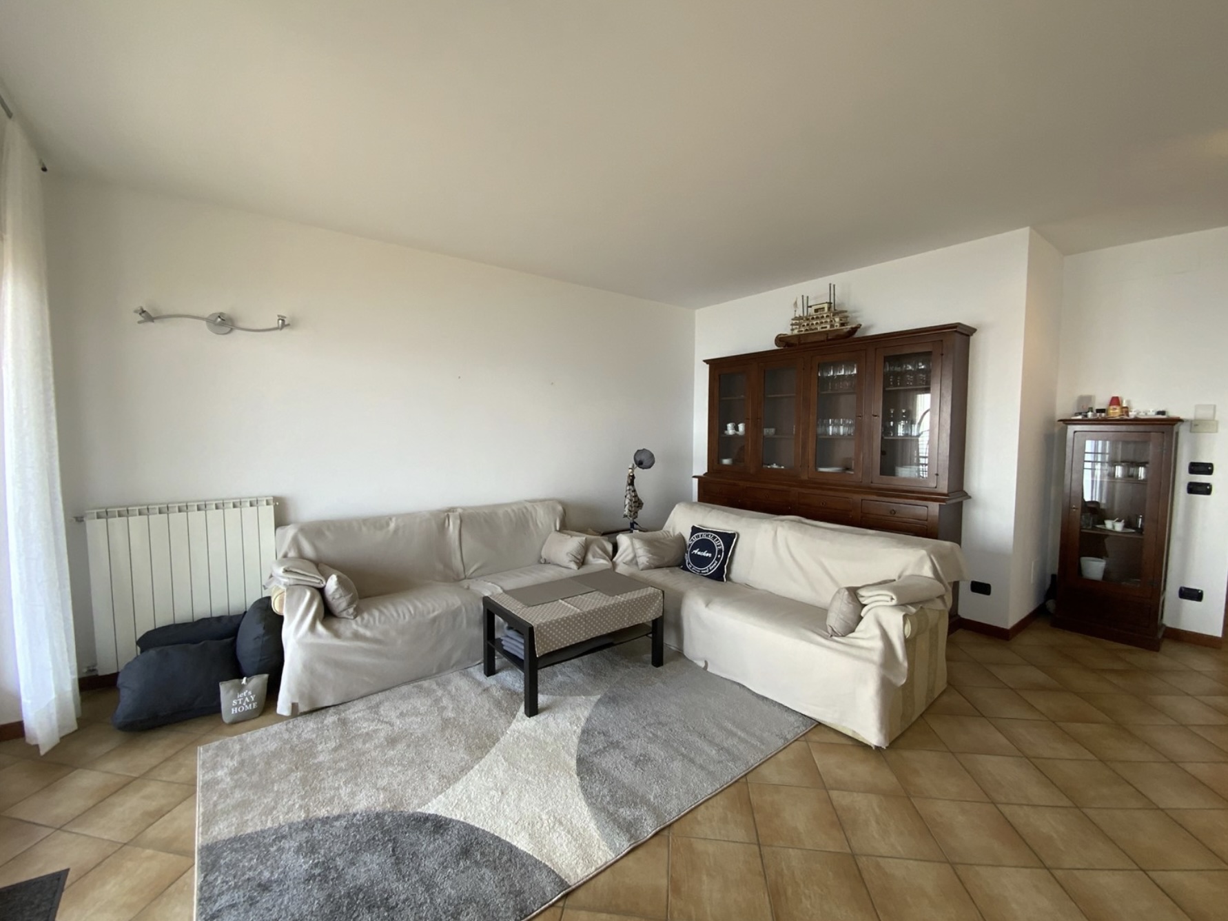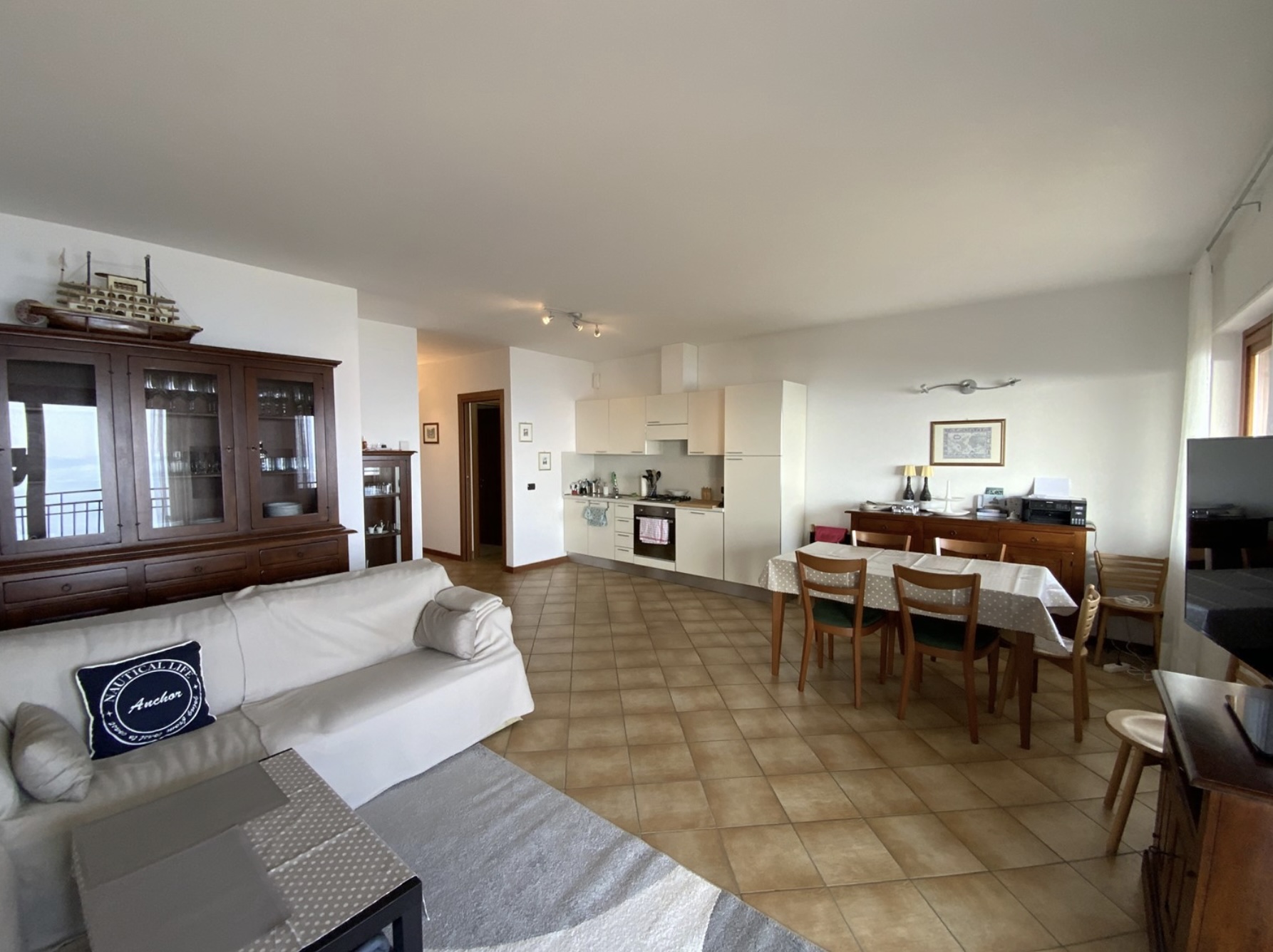 L’appartamento è così disposto: ingresso da un vialetto comune che porta ad una piccola corte, un bel portico coperto apre l’accesso all’ ampio soggiorno con cucina a vista e accesso ad una balconata dove si gode di una magnifica vista del lago Maggiore, il piano è servito da un comodo bagno; la scala interna porta al piano mansardato dove si trovano due grandi camere matrimoniali, un bagno con vasca e doccia, un locale sottotetto e una lavanderia. Completa la proprietà un posto auto all’esterno del complesso.