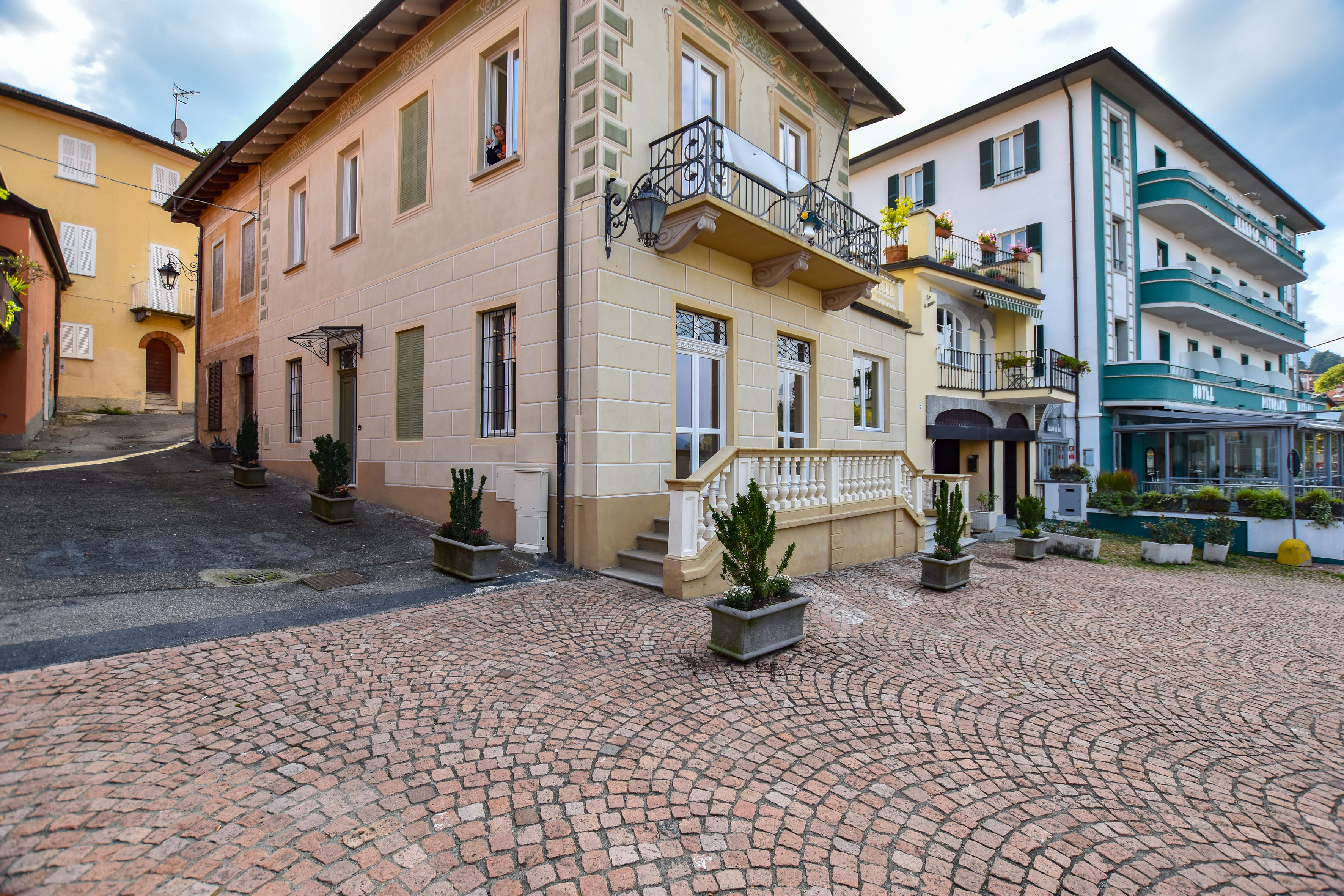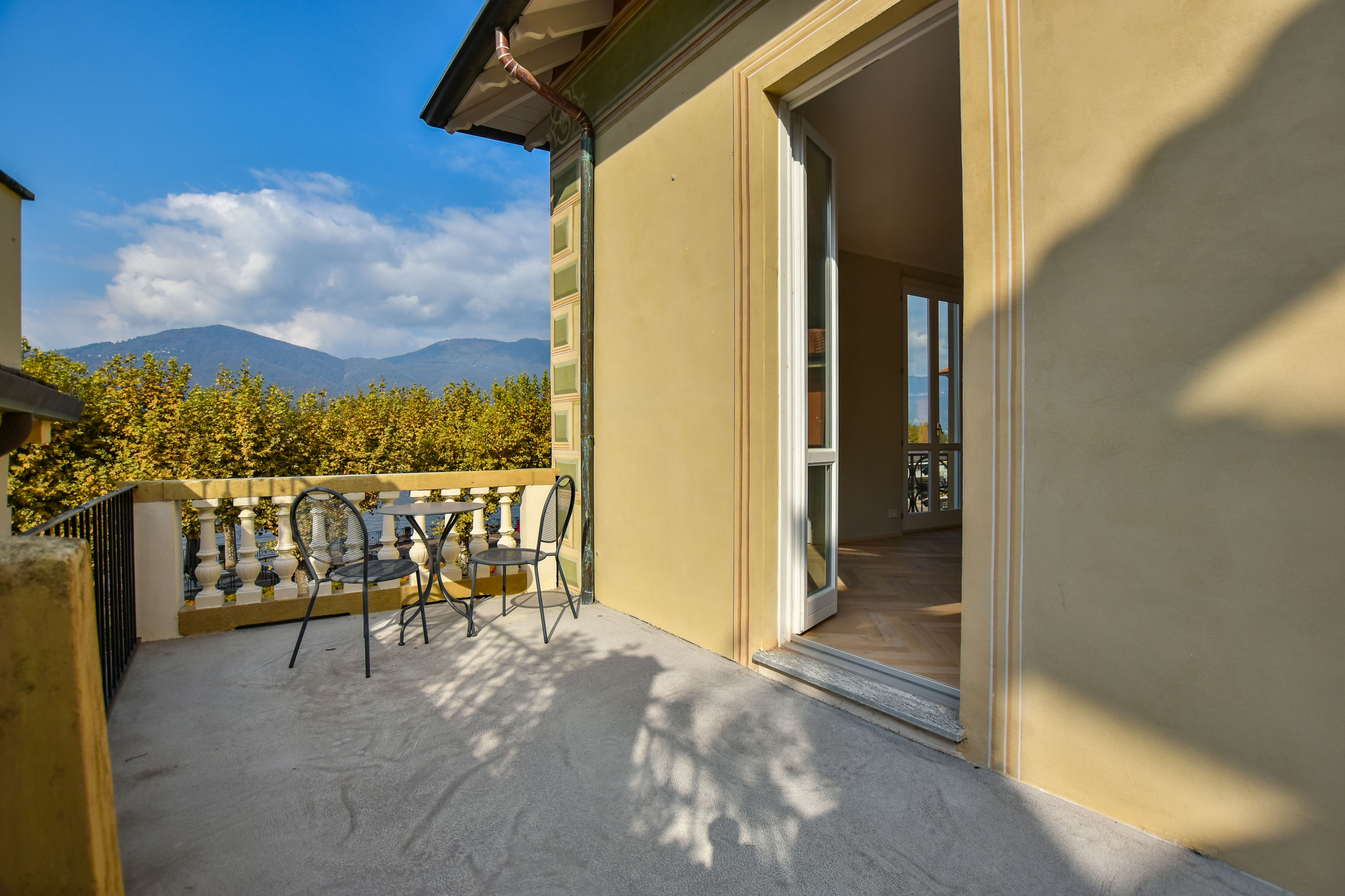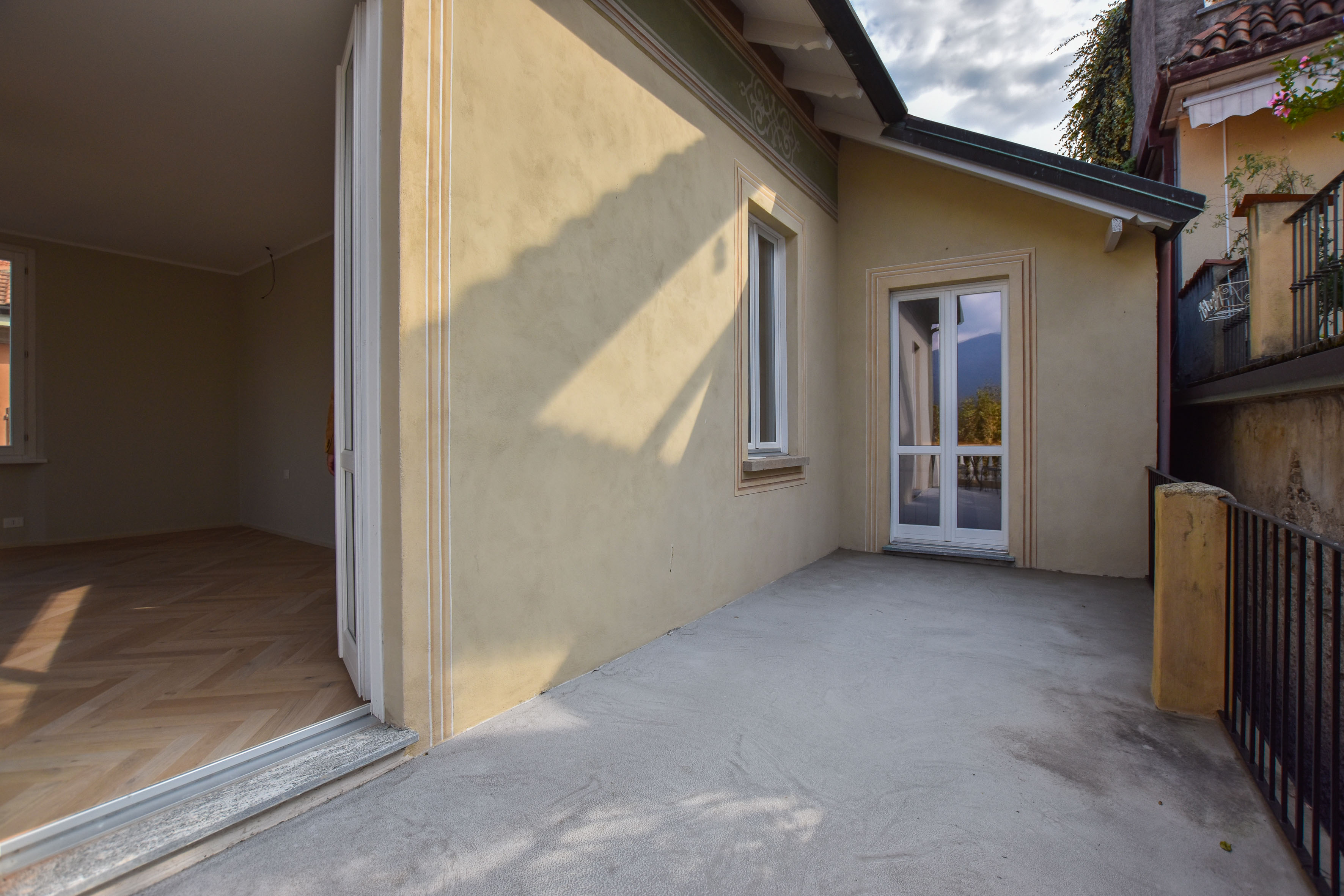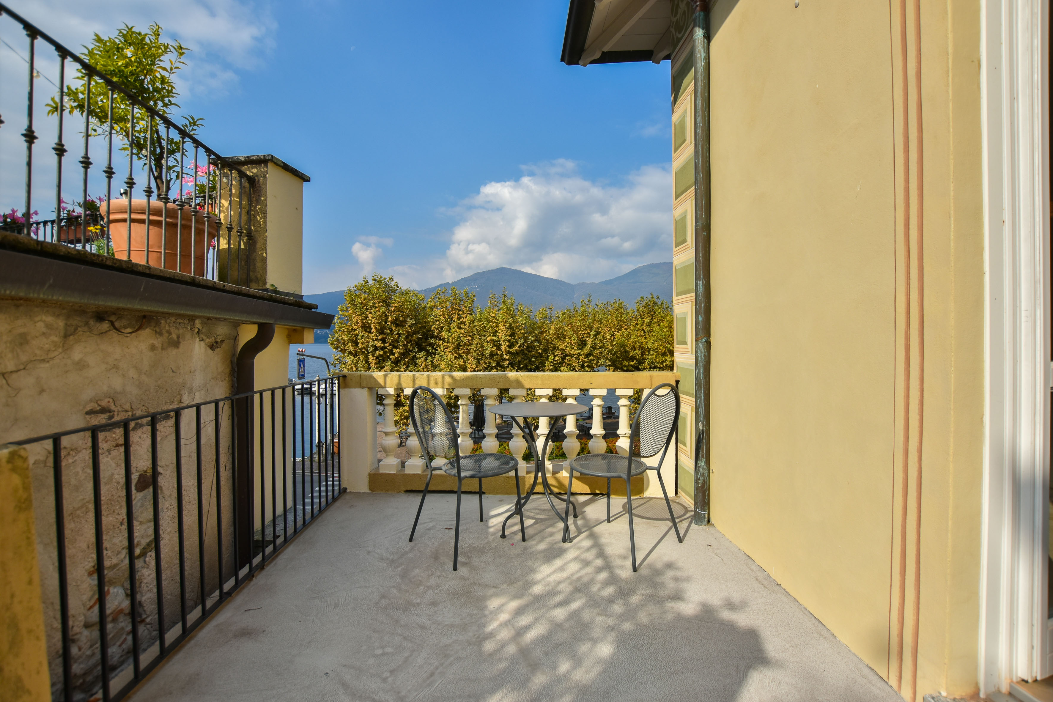 Dal primo piano si accede a una terrazza panoramica, ideale per momenti di relax e convivialità, da cui si può godere una vista aperta sul Lago Maggiore e sul borgo circostante.