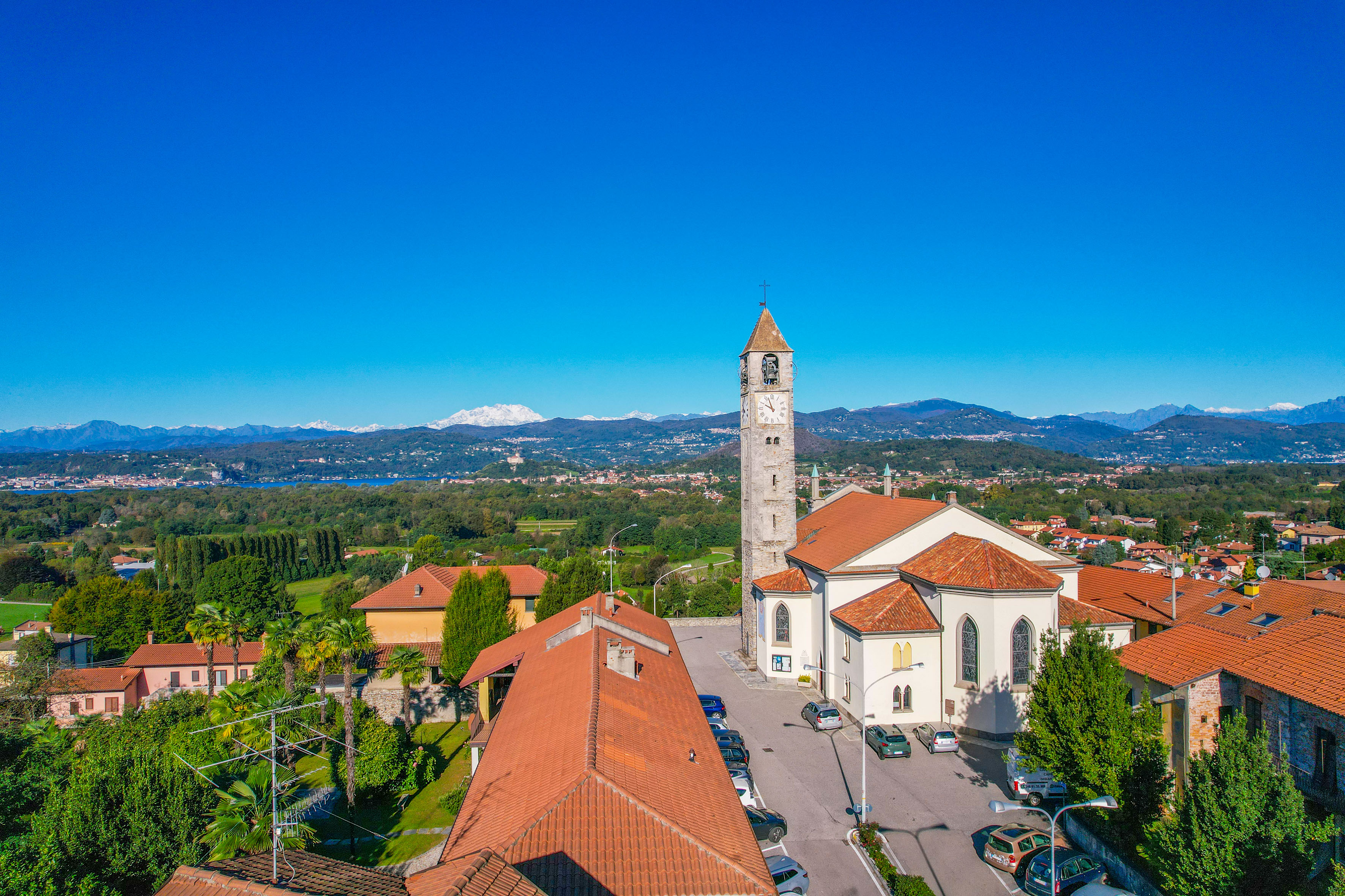 La collocazione centrale garantisce la comodità della vita di paese, con una vista aperta sulla chiesetta e sulla Rocca di Angera in lontananza, in un contesto tranquillo e ben curato.