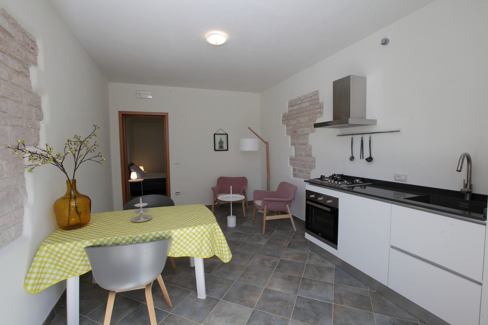 Al piano terra si trovano tre appartamenti, due con cucina abitabile, camera da letto e bagno e l'altro con cucina abitabile, 2 camere da letto e bagno. C'è una stanza aggiuntiva che può essere utilizzata come camera da letto, ufficio o magazzino.