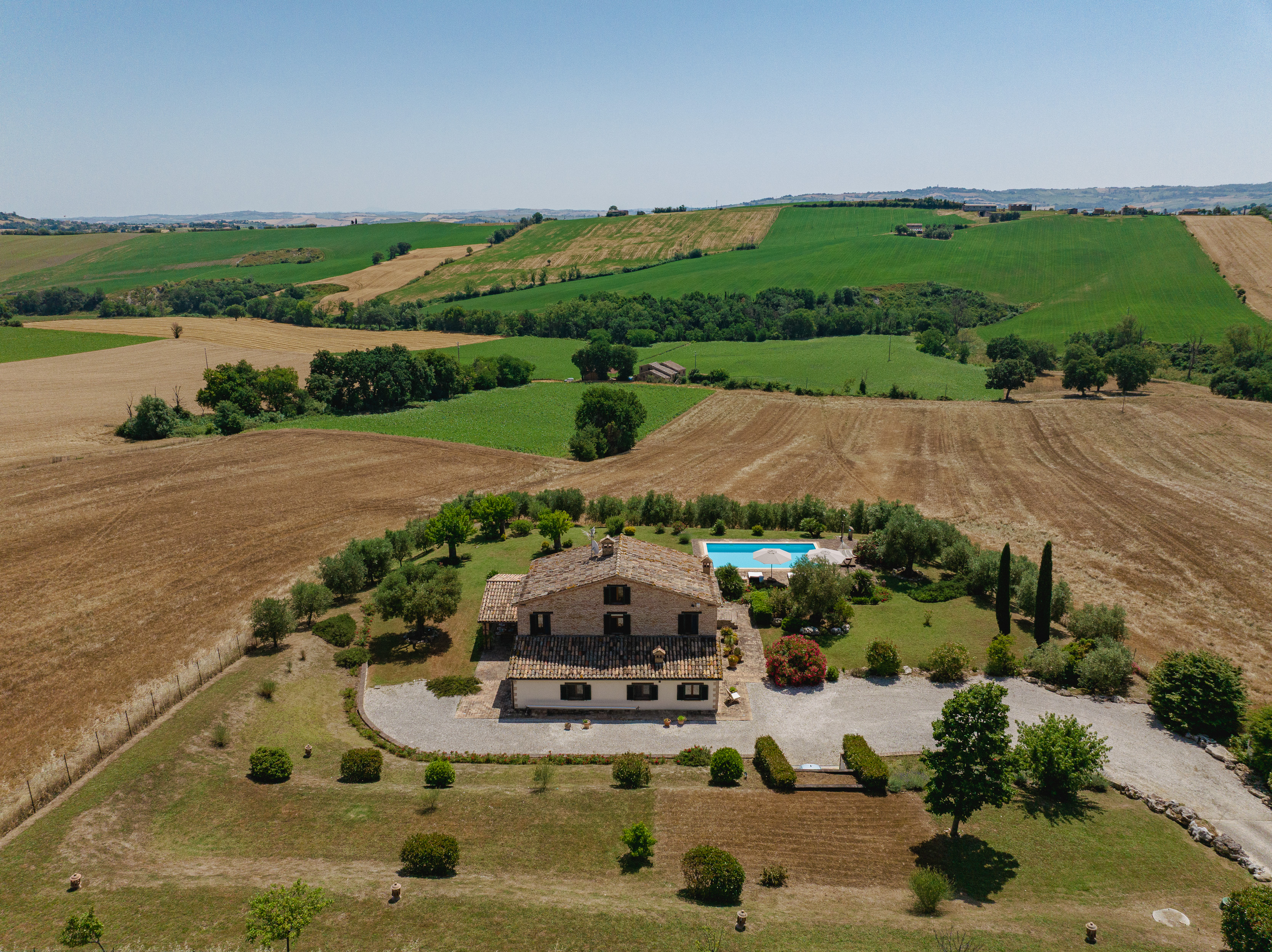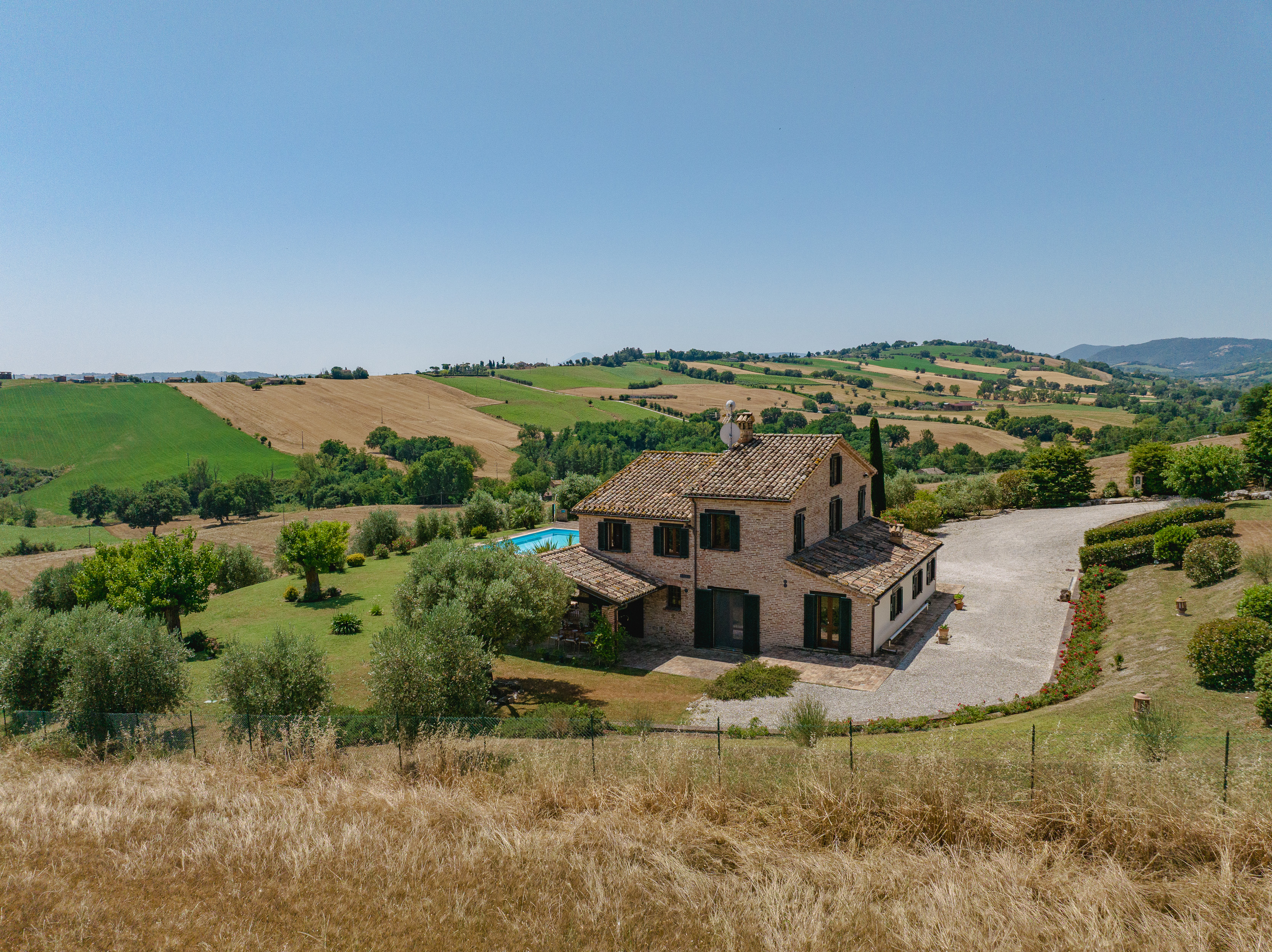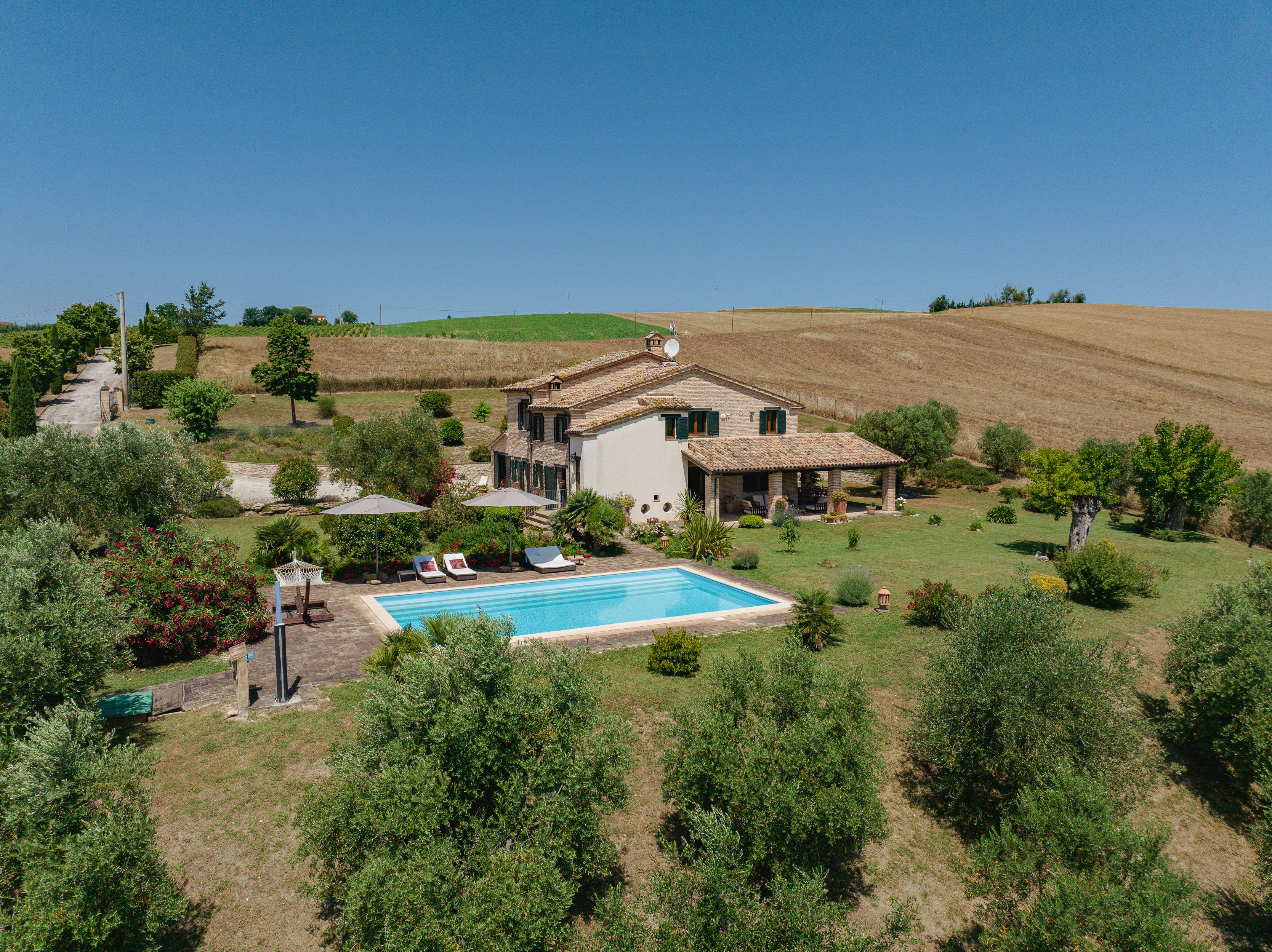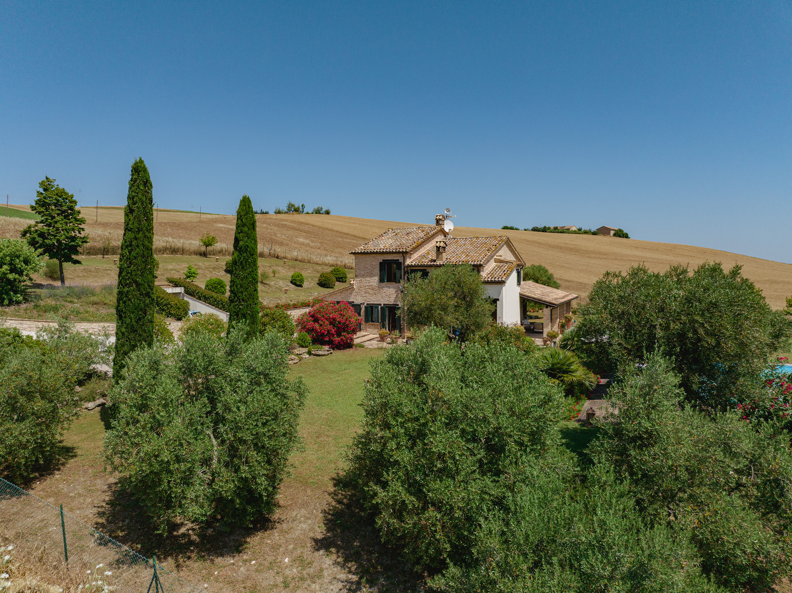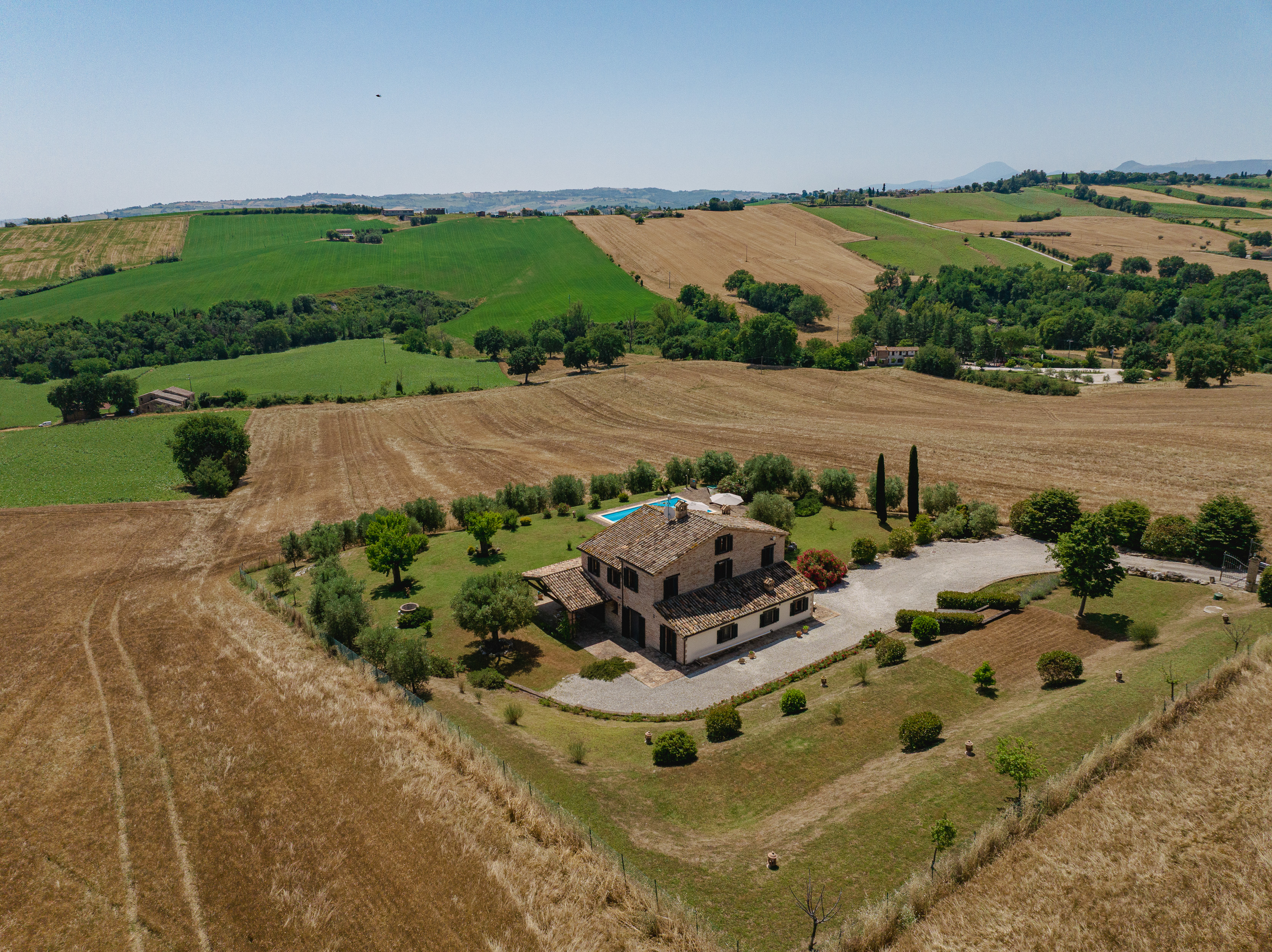 La villa, con una superficie di circa 320 mq, è stata arredata e ristrutturata sotto architettura utilizzando materiali di alta qualità, con comfort e lusso al centro. L'interno è caratterizzato da un moderno richiamo e rispetto per lo stile architettonico marchigiano. Ci sono 2 soggiorni, 5 camere da letto e 3 bagni. Il riscaldamento è centralizzato a gas, l'aria condizionata è presente su tutti i piani, la casa è allacciata alla rete elettrica e alla rete idrica.