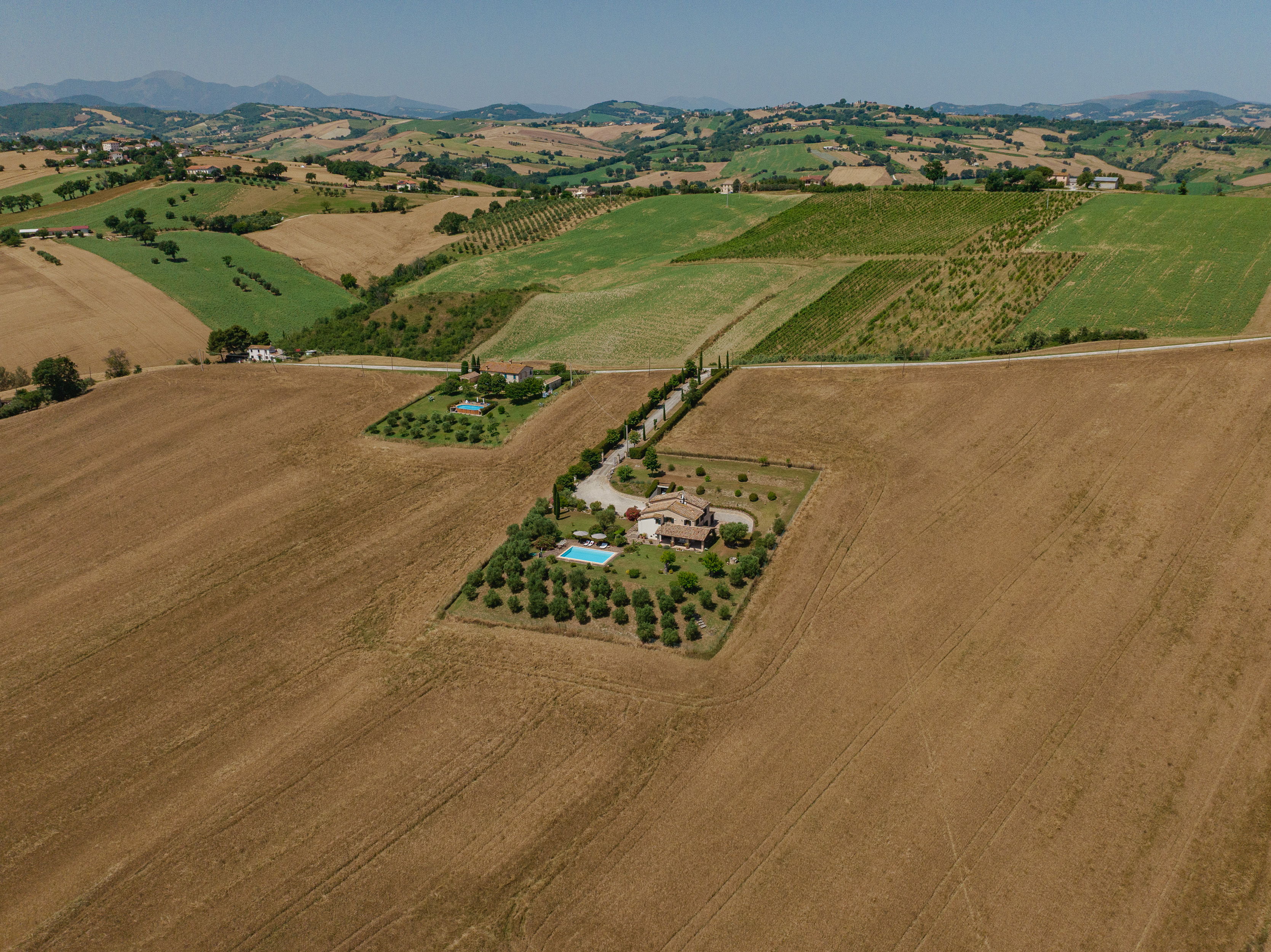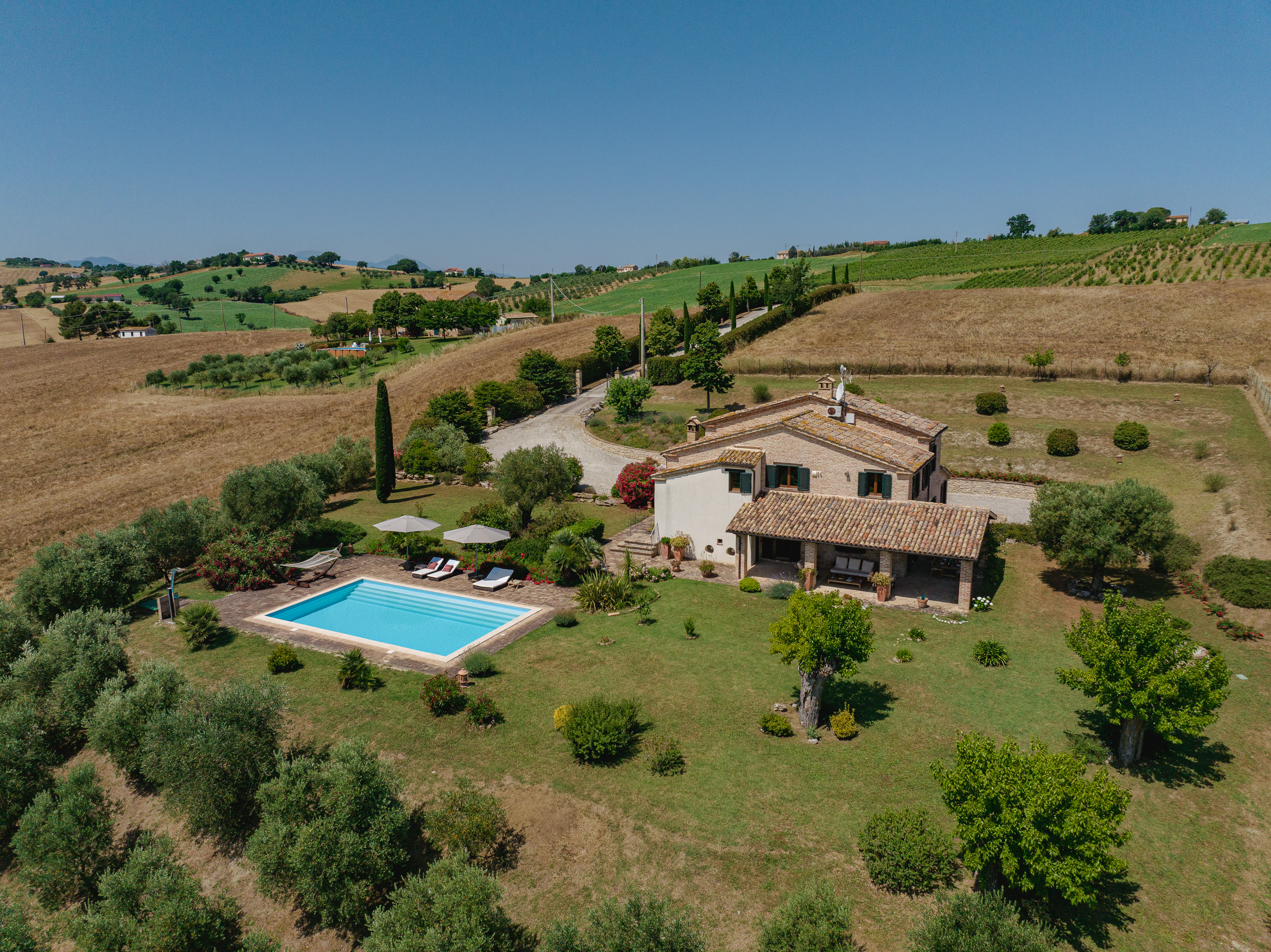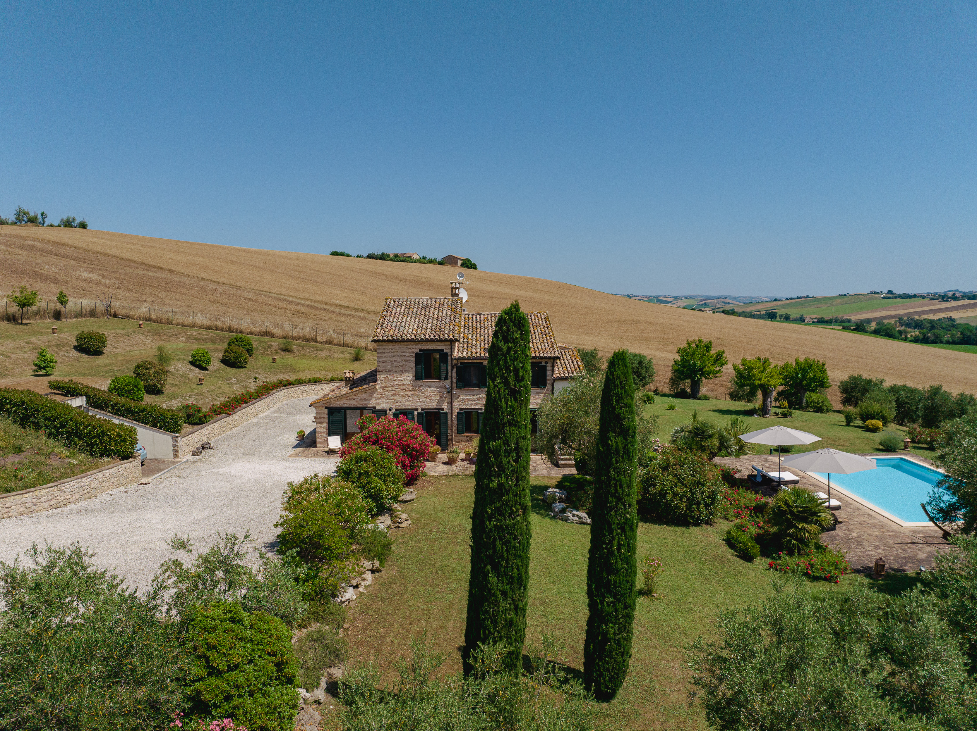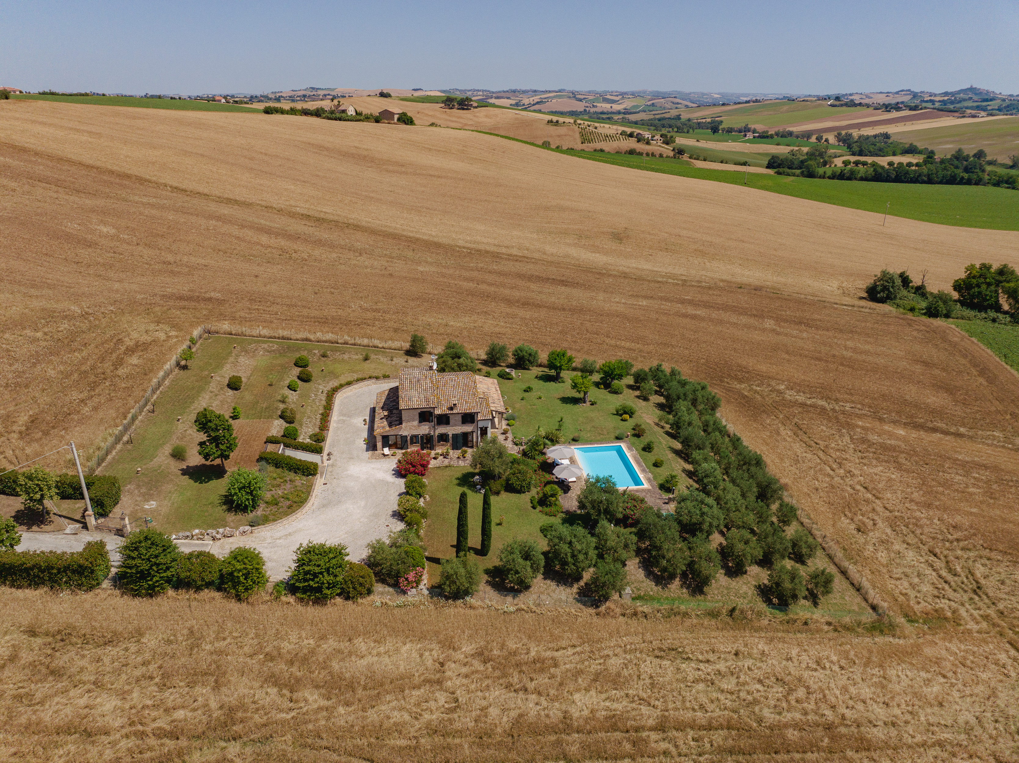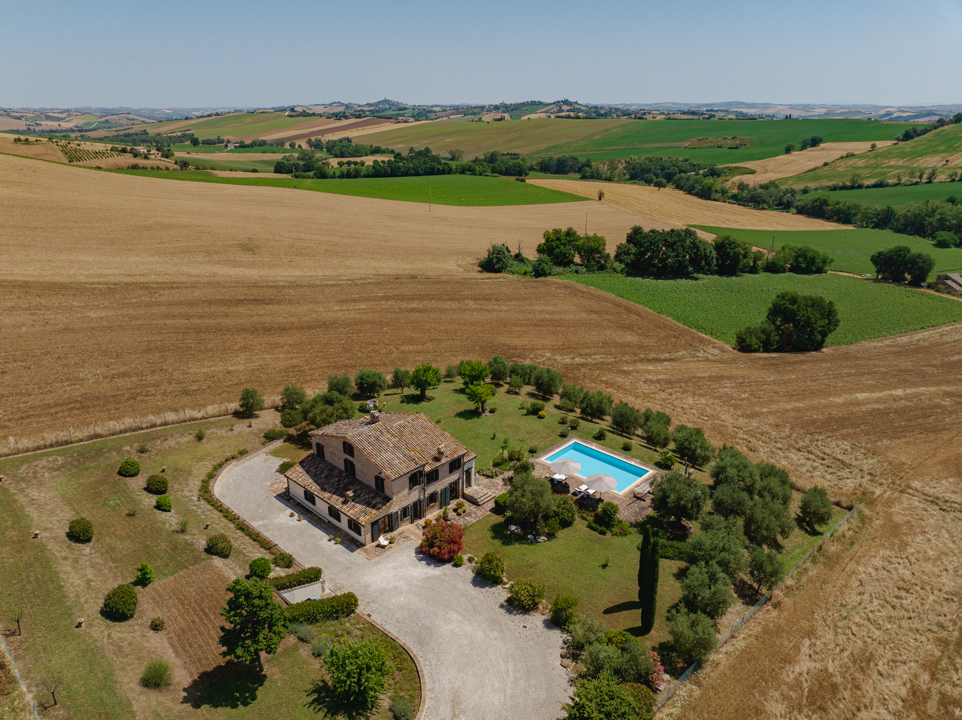 La villa, con una superficie di circa 320 mq, è stata arredata e ristrutturata sotto architettura utilizzando materiali di alta qualità, con comfort e lusso al centro. L'interno è caratterizzato da un moderno richiamo e rispetto per lo stile architettonico marchigiano. Ci sono 2 soggiorni, 5 camere da letto e 3 bagni. Il riscaldamento è centralizzato a gas, l'aria condizionata è presente su tutti i piani, la casa è allacciata alla rete elettrica e alla rete idrica.