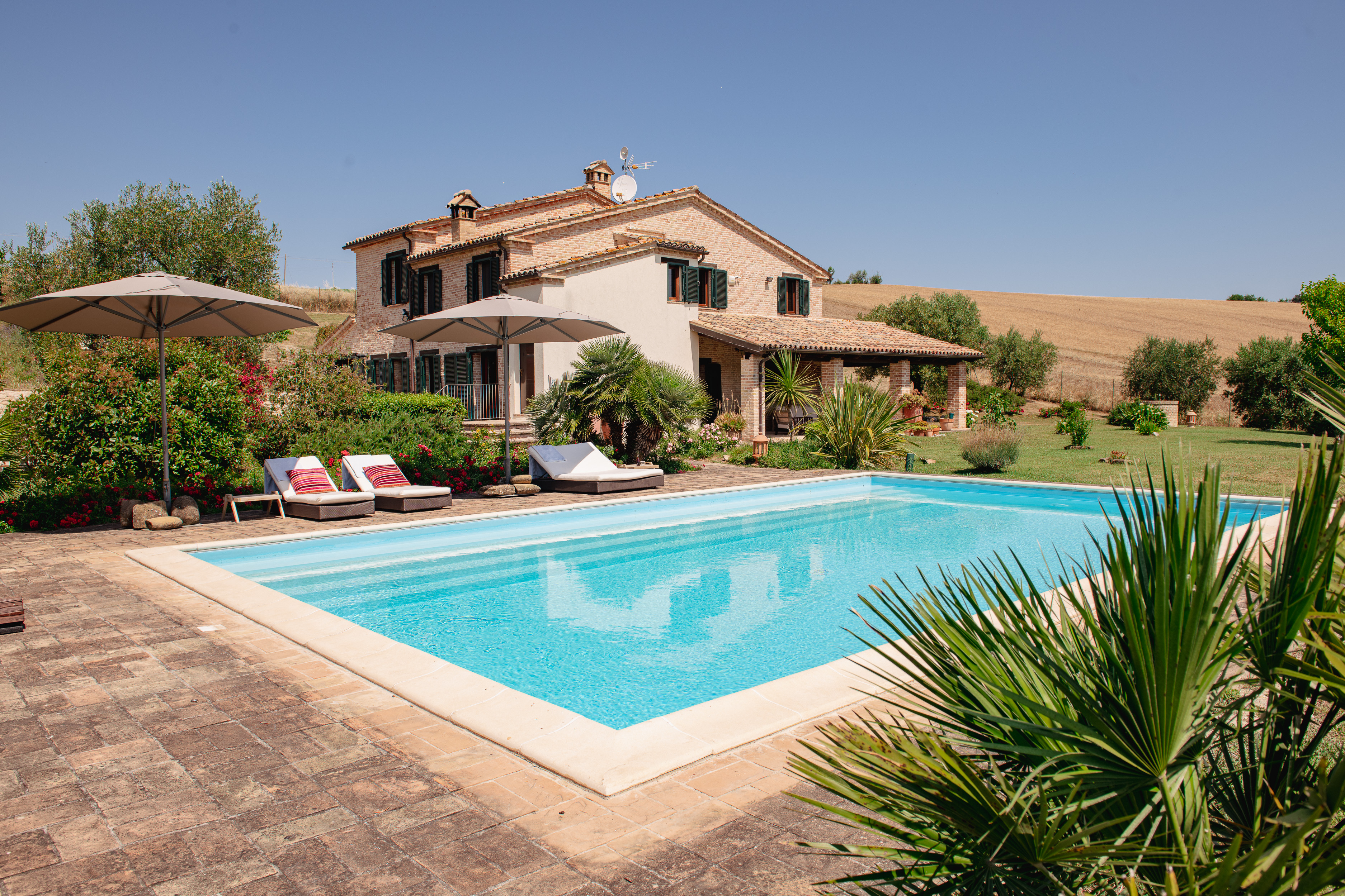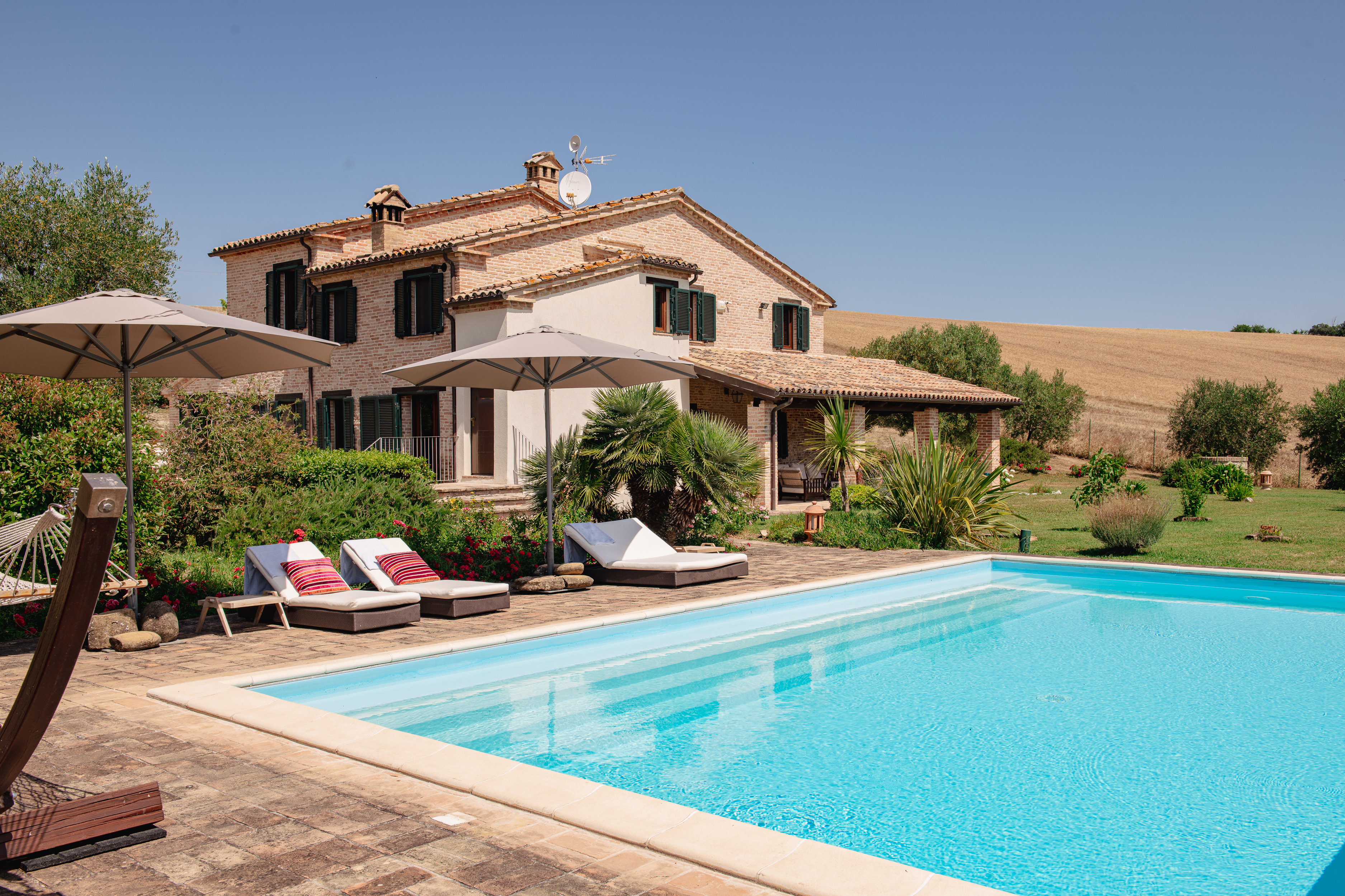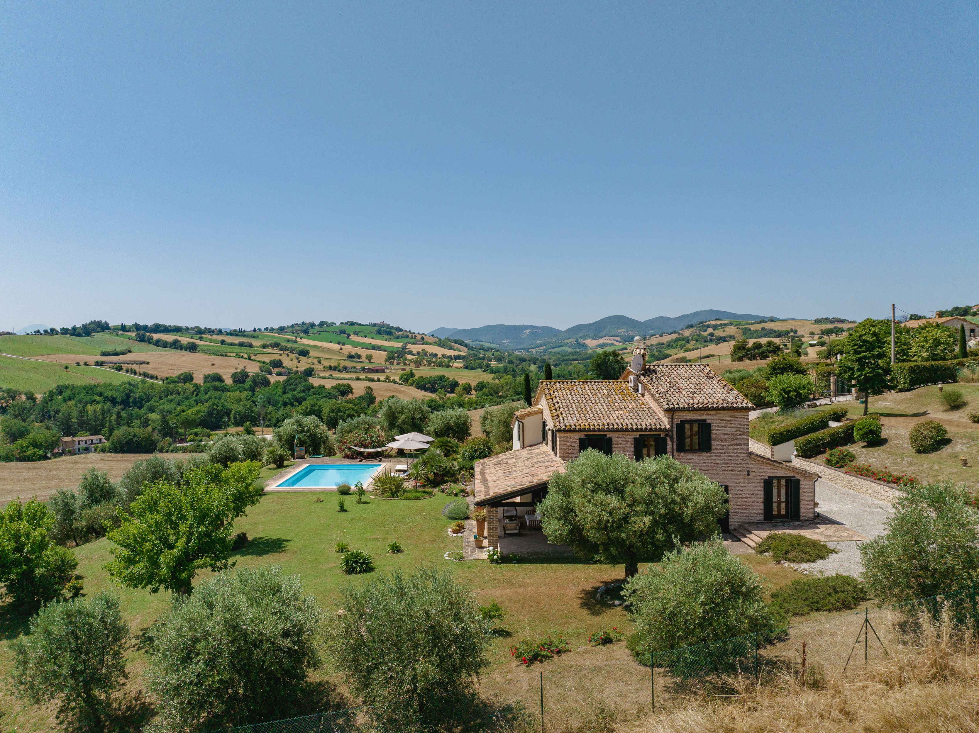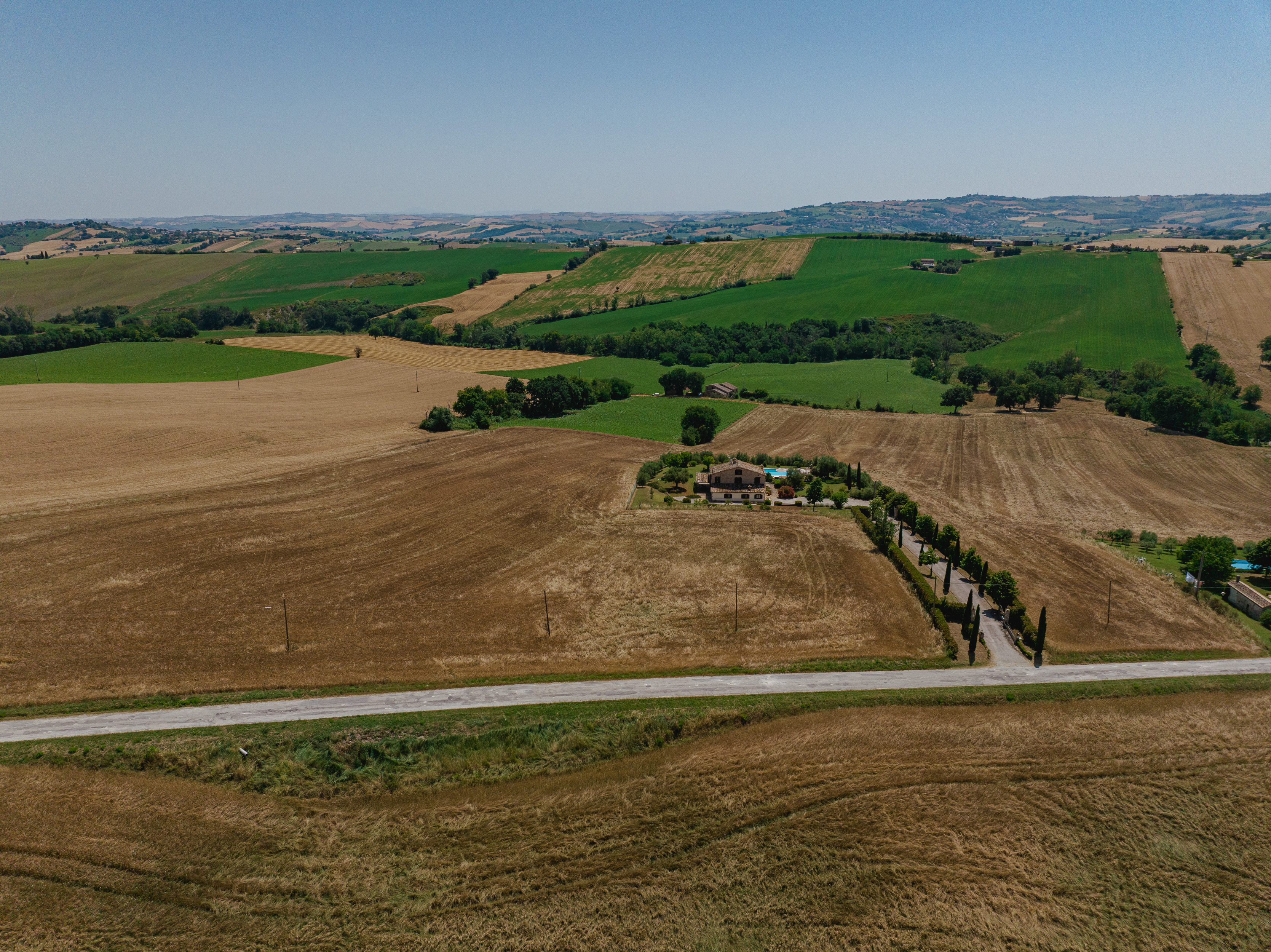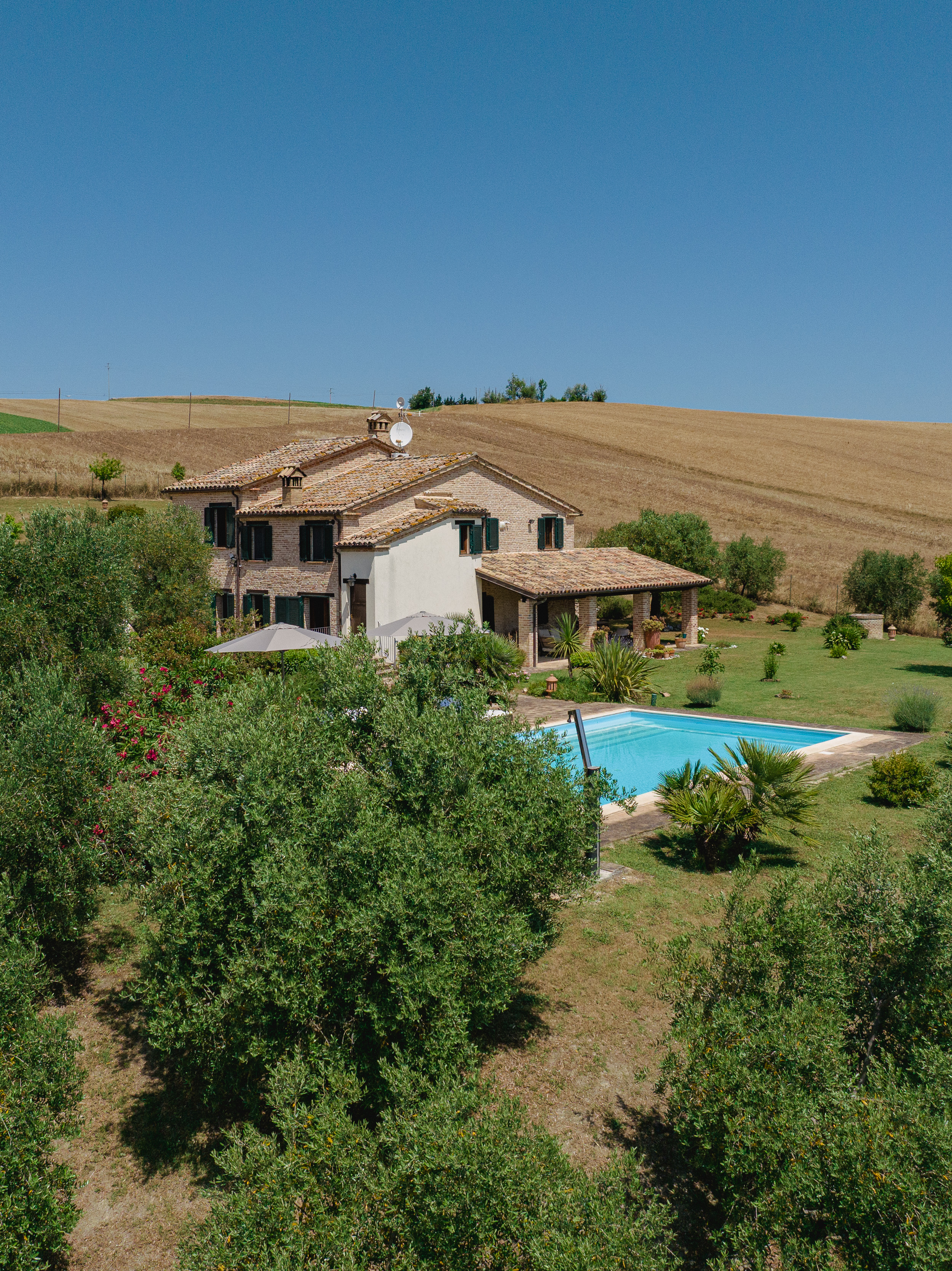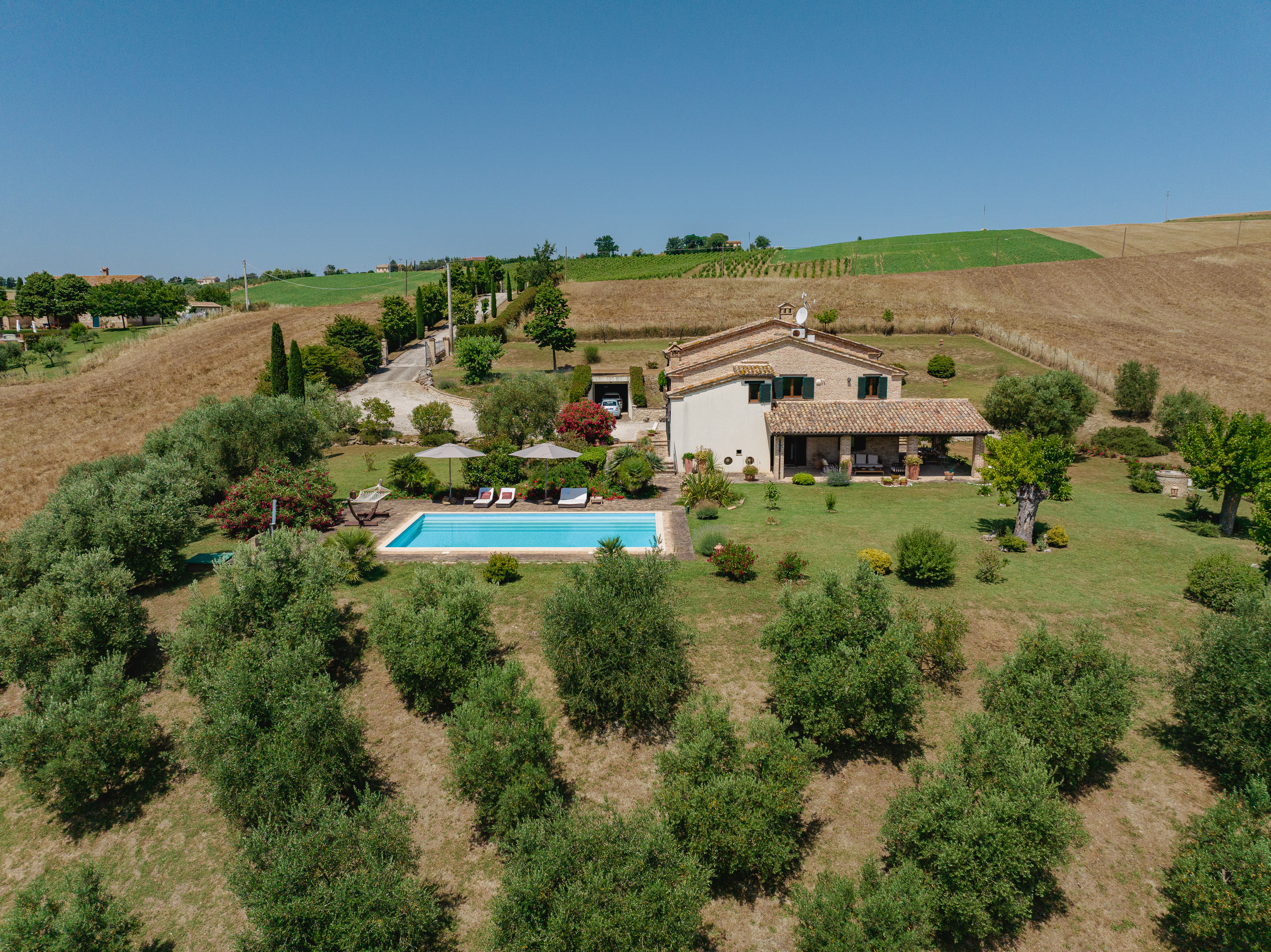 La villa, con una superficie di circa 320 mq, è stata arredata e ristrutturata sotto architettura utilizzando materiali di alta qualità, con comfort e lusso al centro. L'interno è caratterizzato da un moderno richiamo e rispetto per lo stile architettonico marchigiano. Ci sono 2 soggiorni, 5 camere da letto e 3 bagni. Il riscaldamento è centralizzato a gas, l'aria condizionata è presente su tutti i piani, la casa è allacciata alla rete elettrica e alla rete idrica.