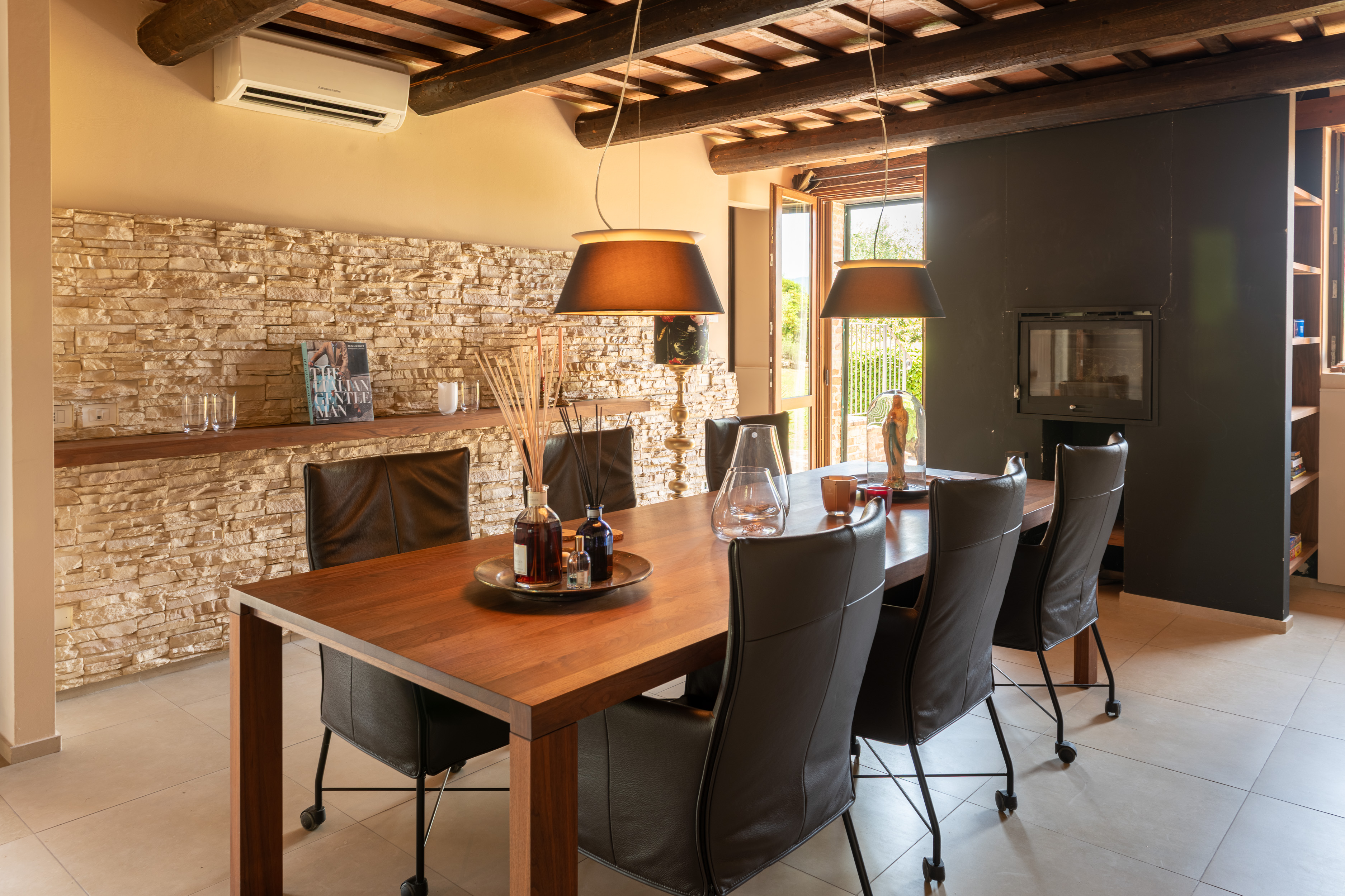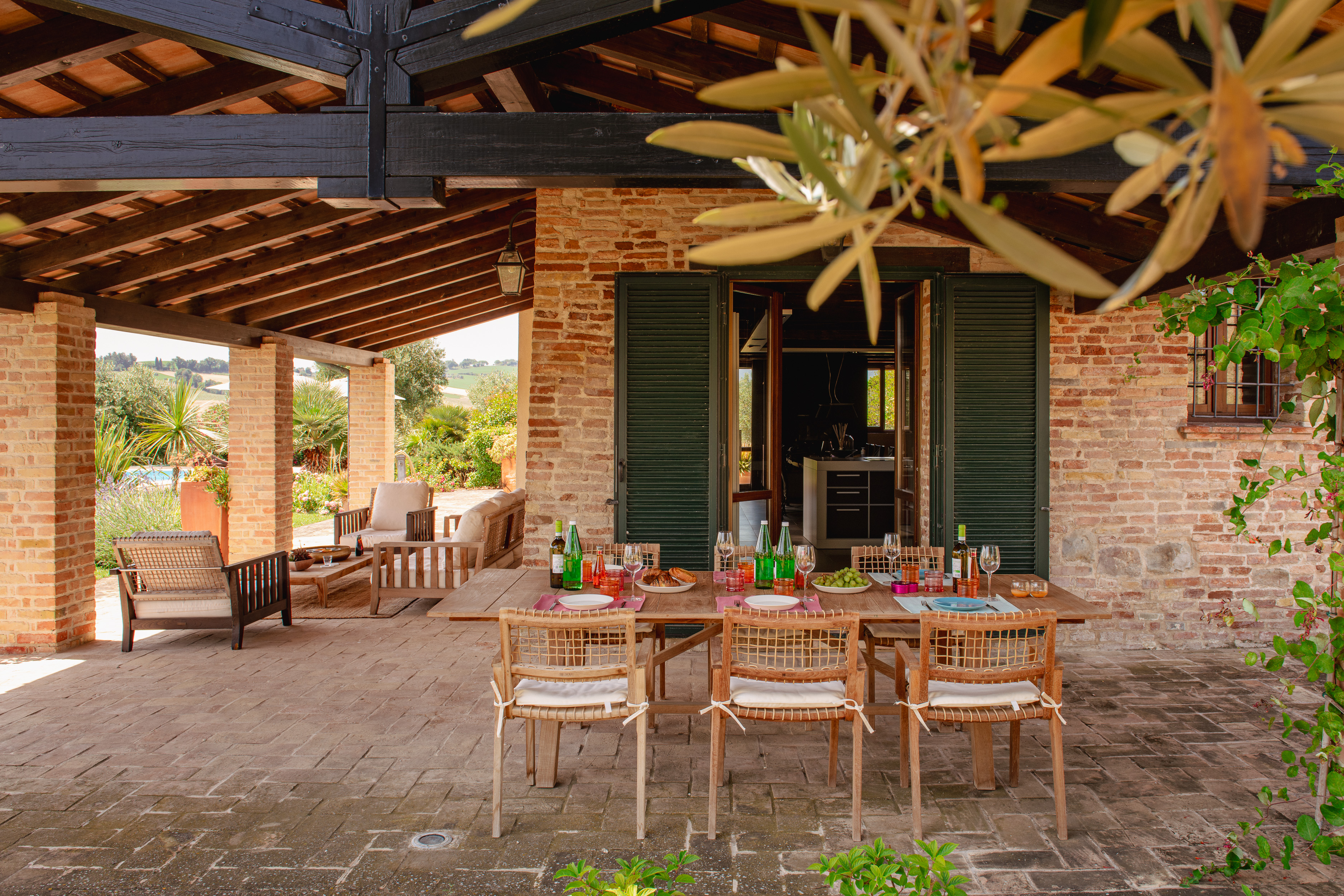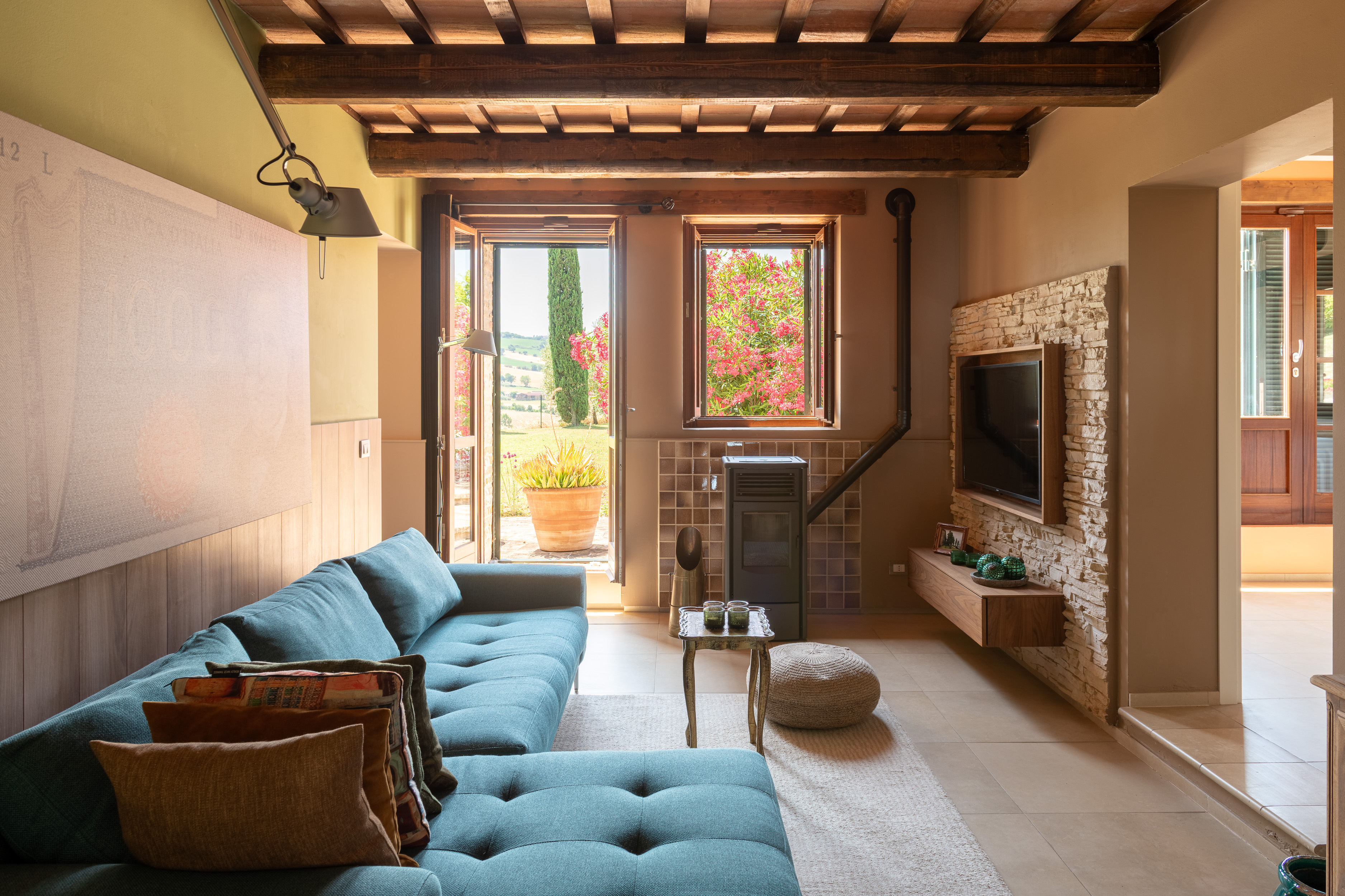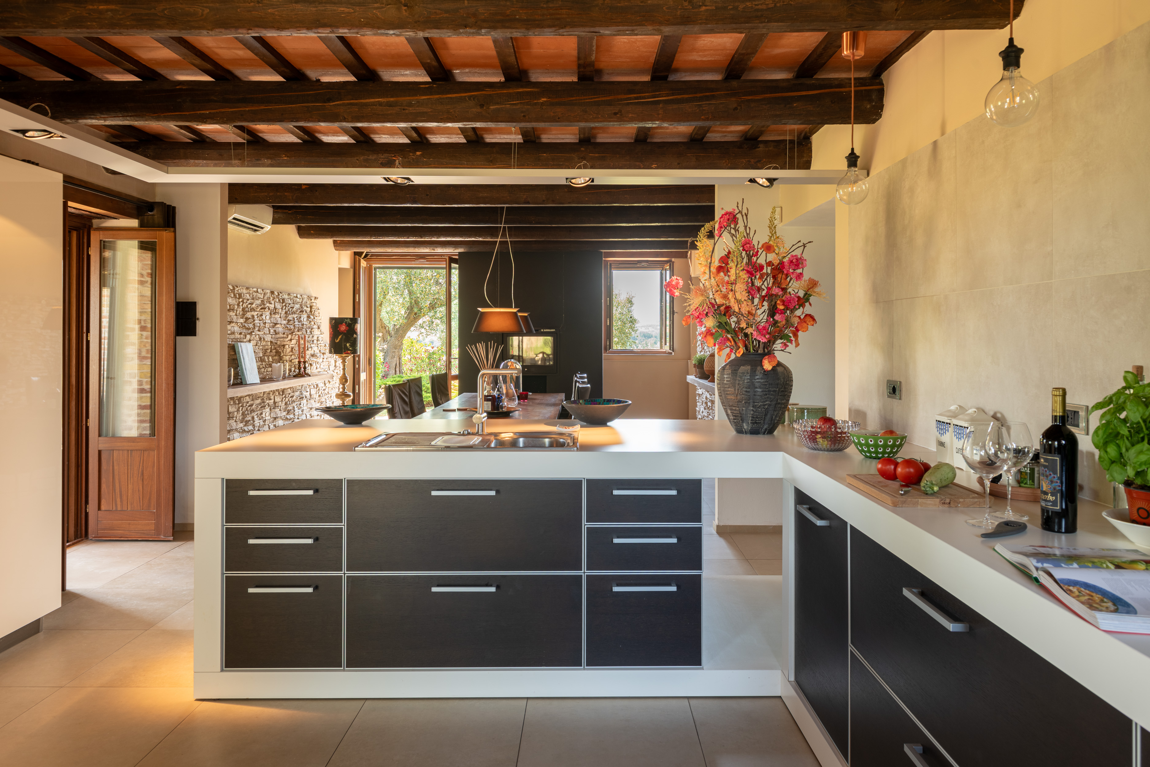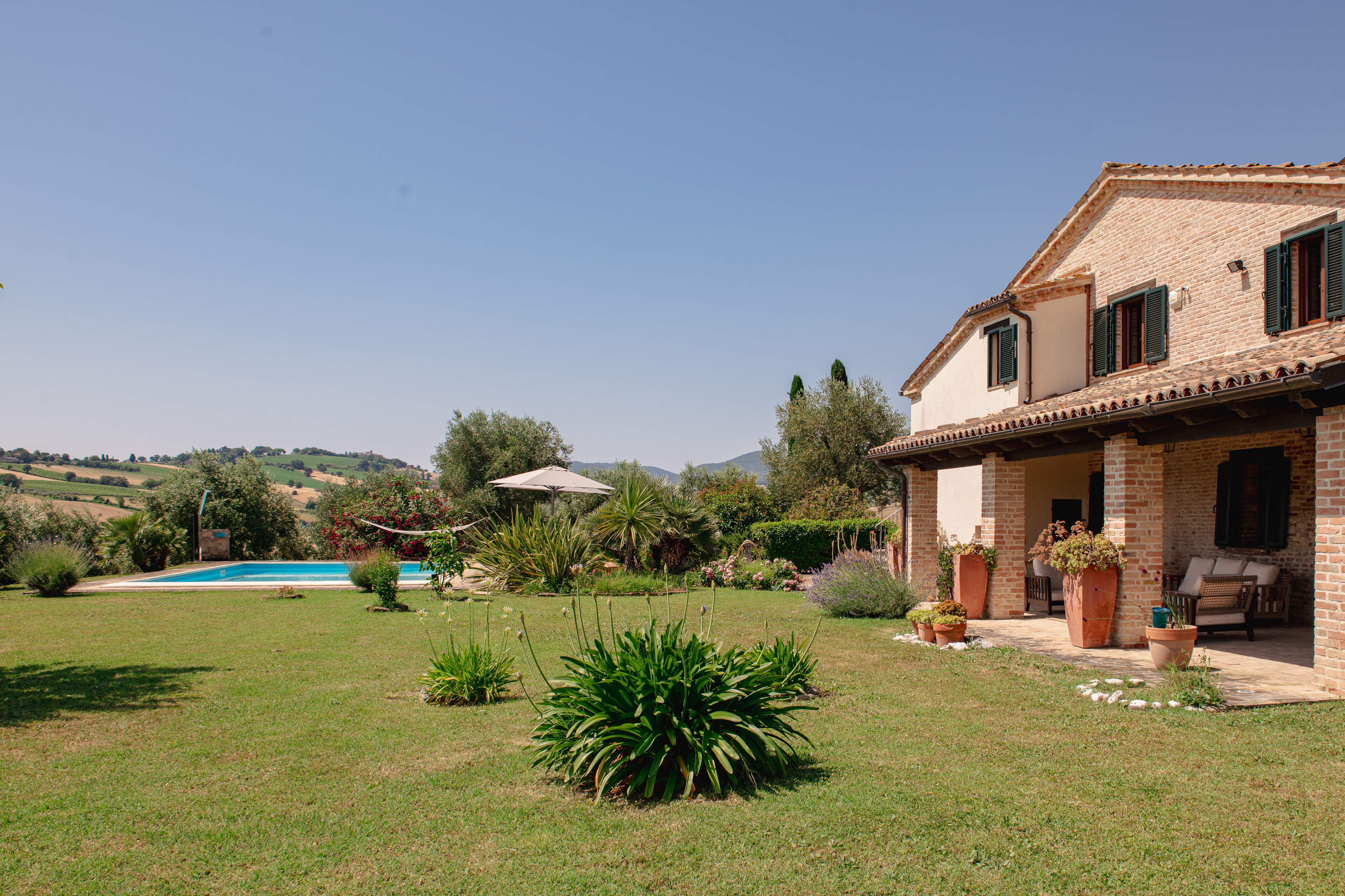 La villa, con una superficie di circa 320 mq, è stata arredata e ristrutturata sotto architettura utilizzando materiali di alta qualità, con comfort e lusso al centro. L'interno è caratterizzato da un moderno richiamo e rispetto per lo stile architettonico marchigiano. Ci sono 2 soggiorni, 5 camere da letto e 3 bagni. Il riscaldamento è centralizzato a gas, l'aria condizionata è presente su tutti i piani, la casa è allacciata alla rete elettrica e alla rete idrica.