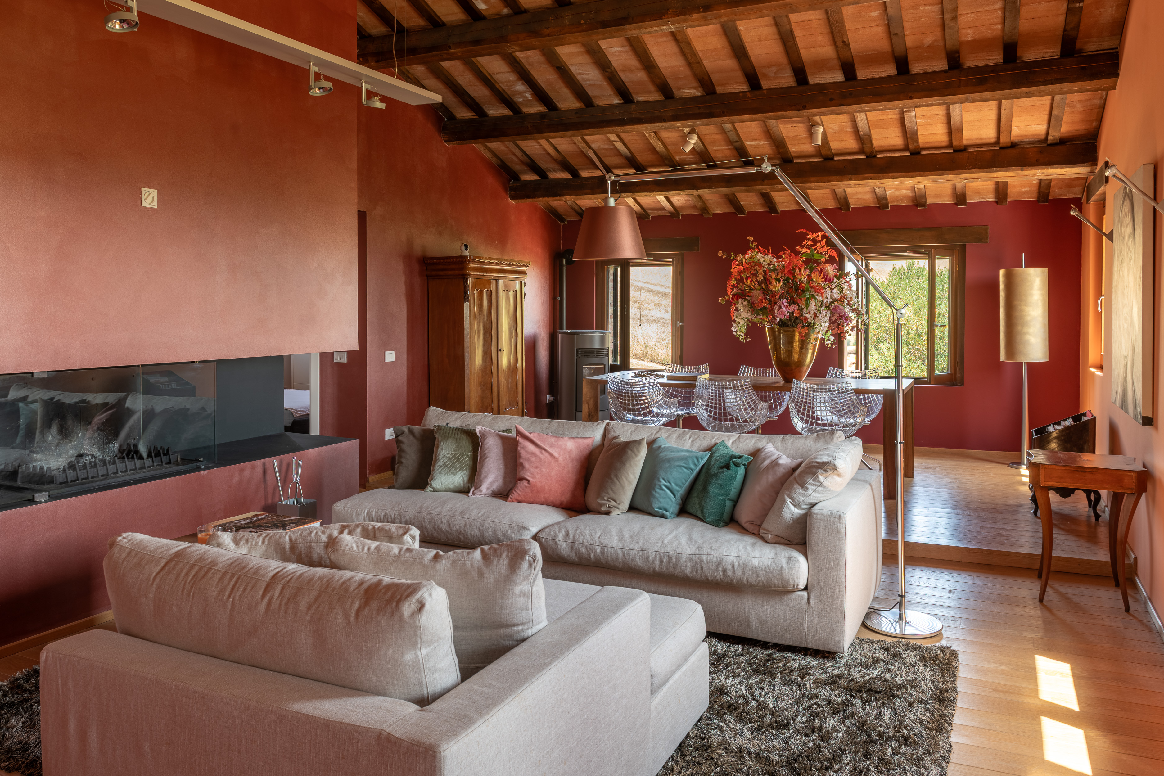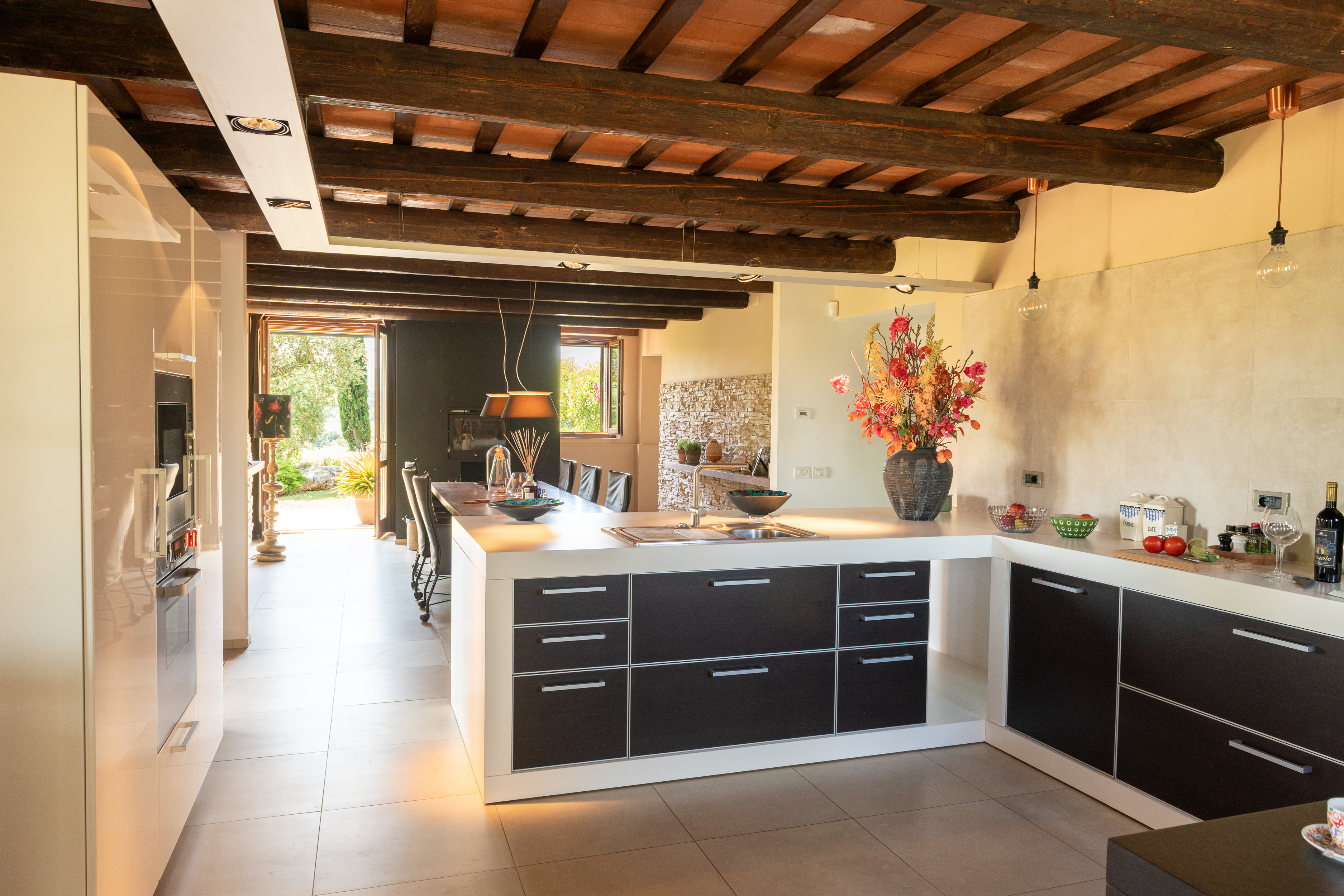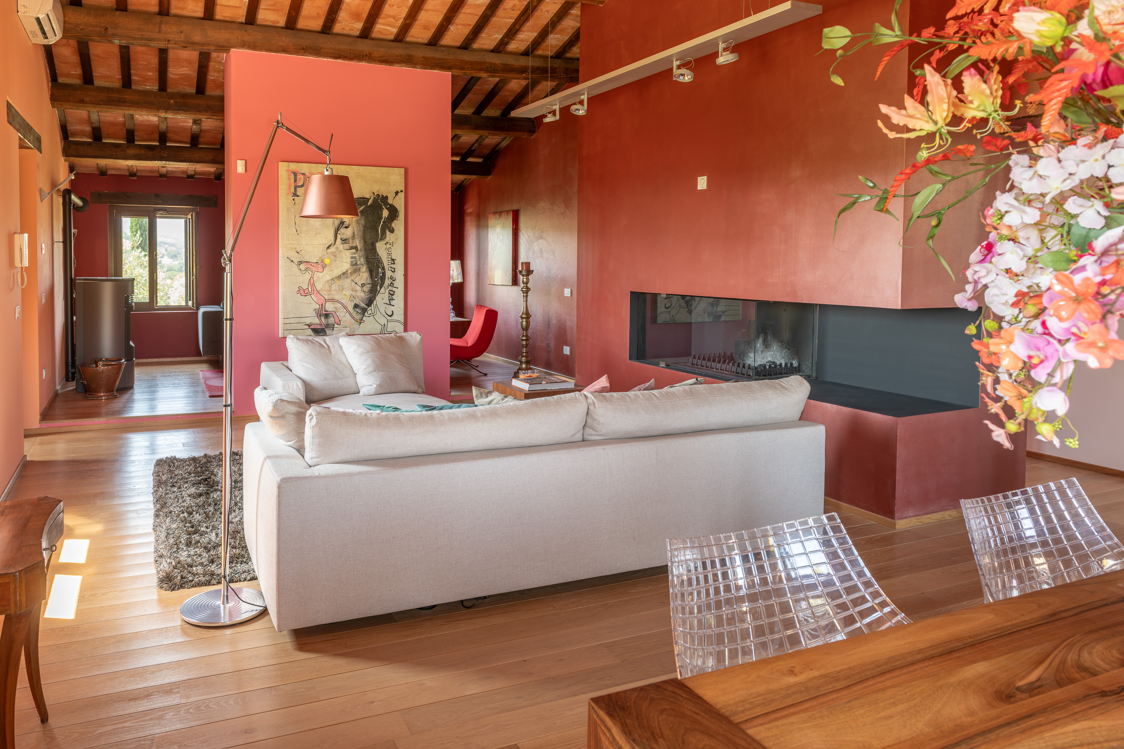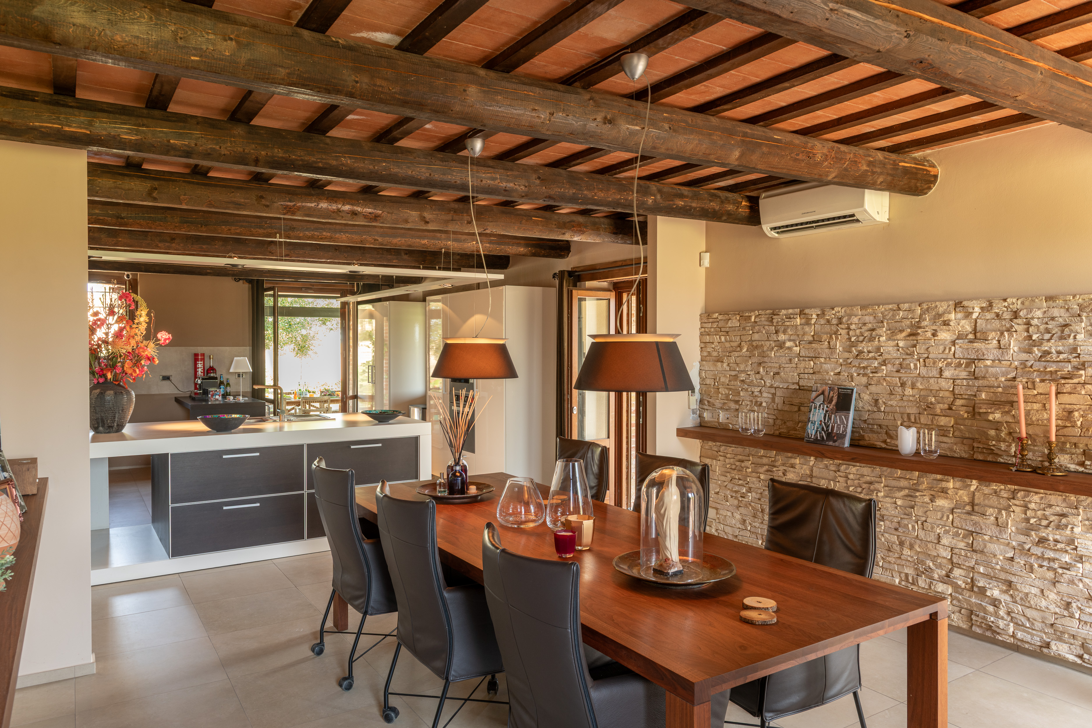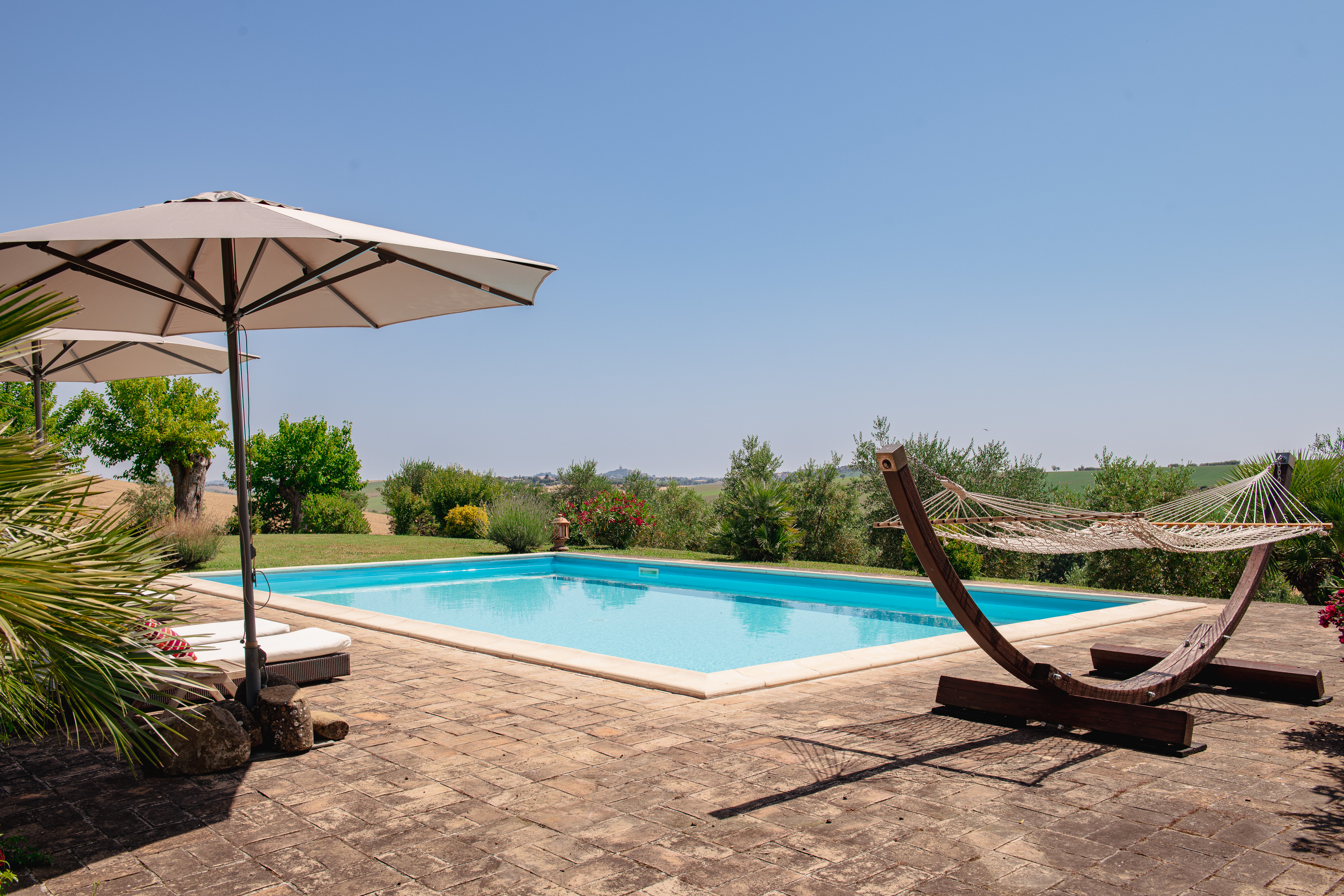 La villa, con una superficie di circa 320 mq, è stata arredata e ristrutturata sotto architettura utilizzando materiali di alta qualità, con comfort e lusso al centro. L'interno è caratterizzato da un moderno richiamo e rispetto per lo stile architettonico marchigiano. Ci sono 2 soggiorni, 5 camere da letto e 3 bagni. Il riscaldamento è centralizzato a gas, l'aria condizionata è presente su tutti i piani, la casa è allacciata alla rete elettrica e alla rete idrica.