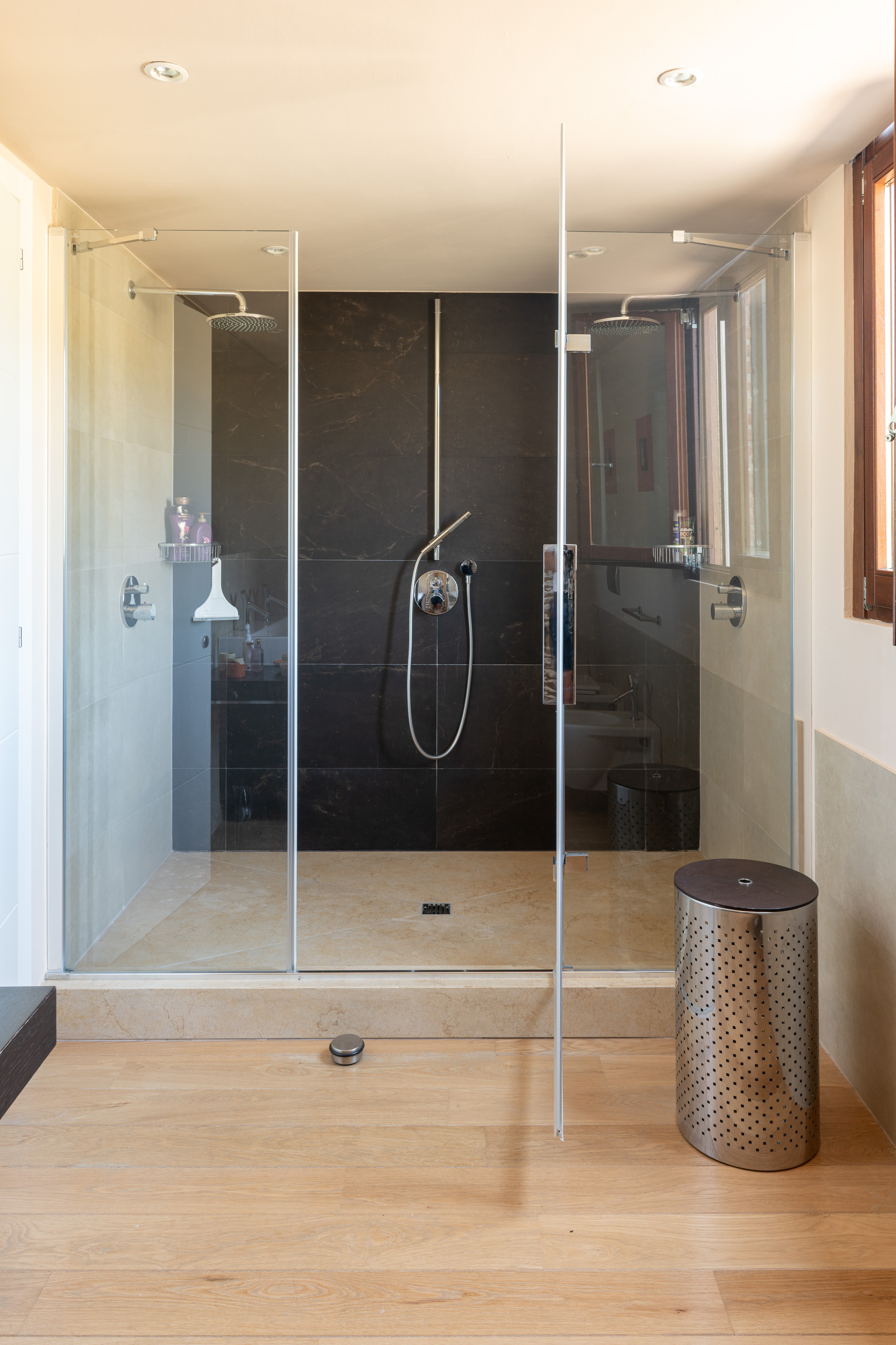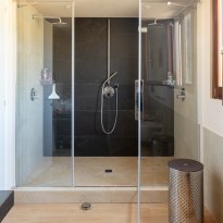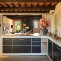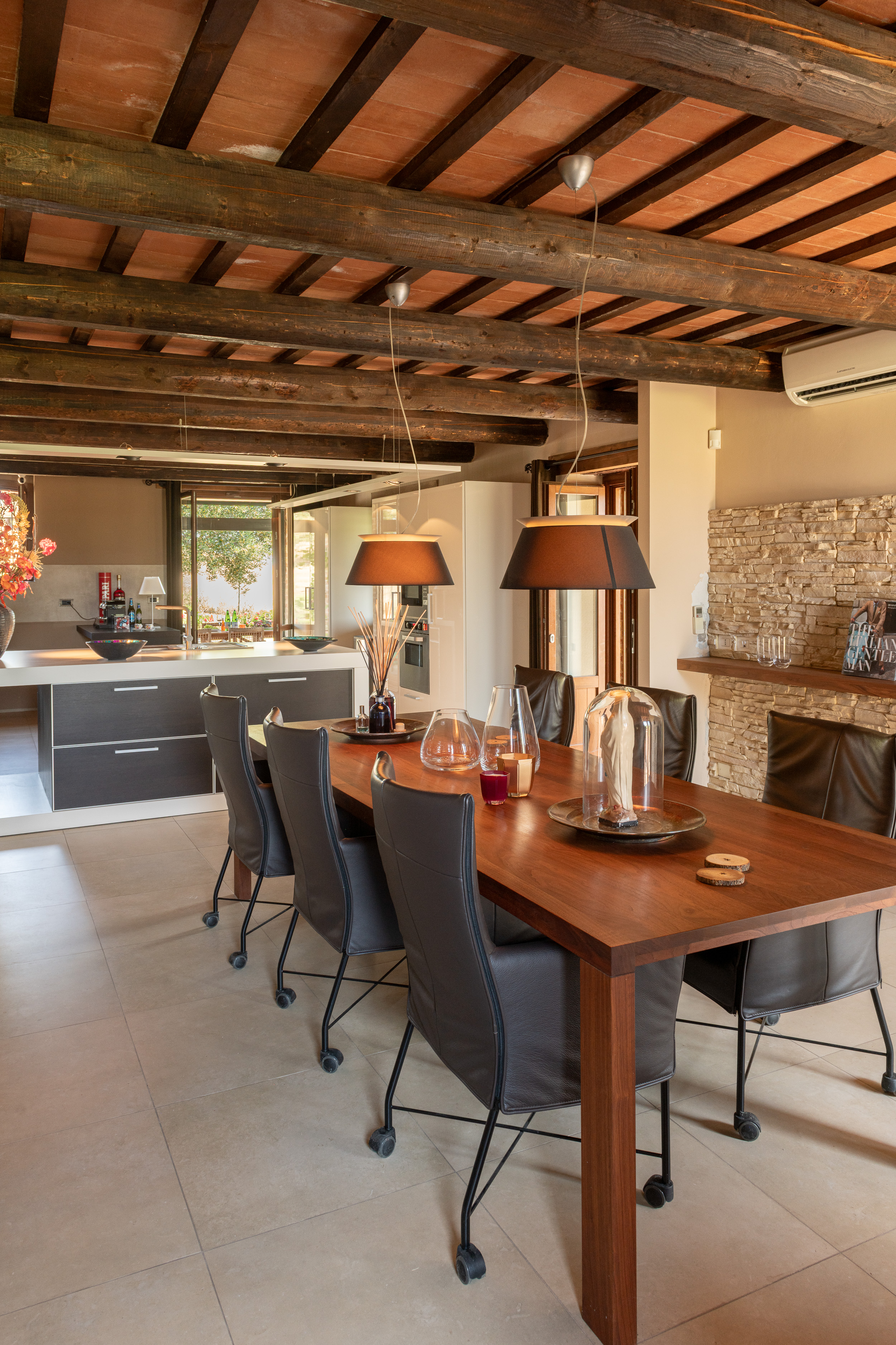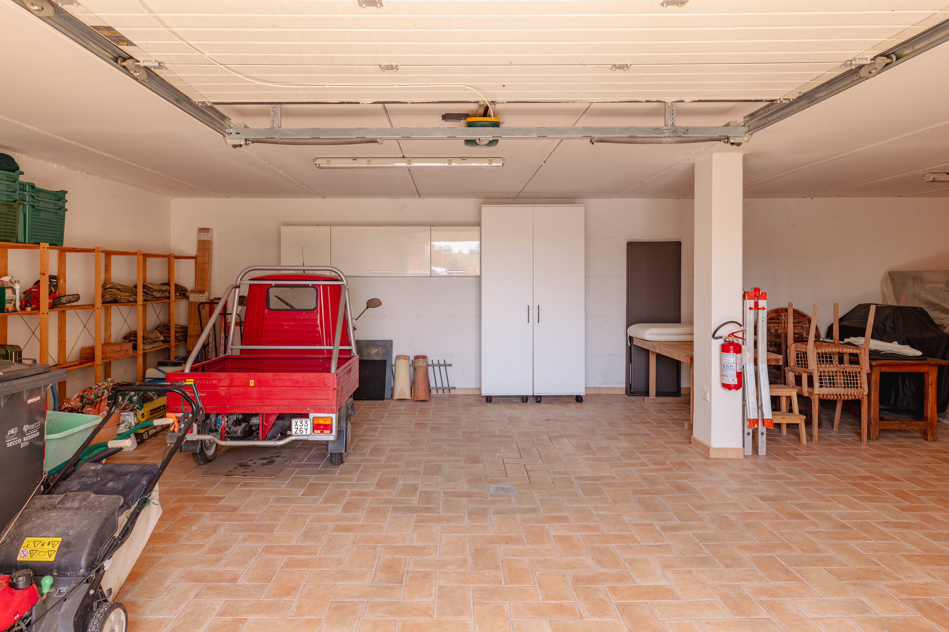 L'intera casa è dotata di mobili su misura, quadri e illuminazione di design. La casa è pronta per essere abitata, arredata e completamente rivestita. La piscina panoramica con doccia esterna si trova a pochi metri dalla casa e dispone di un terrazzo circostante molto spazioso. A lato della casa si trova un garage coperto (96 mq), situato in collina.