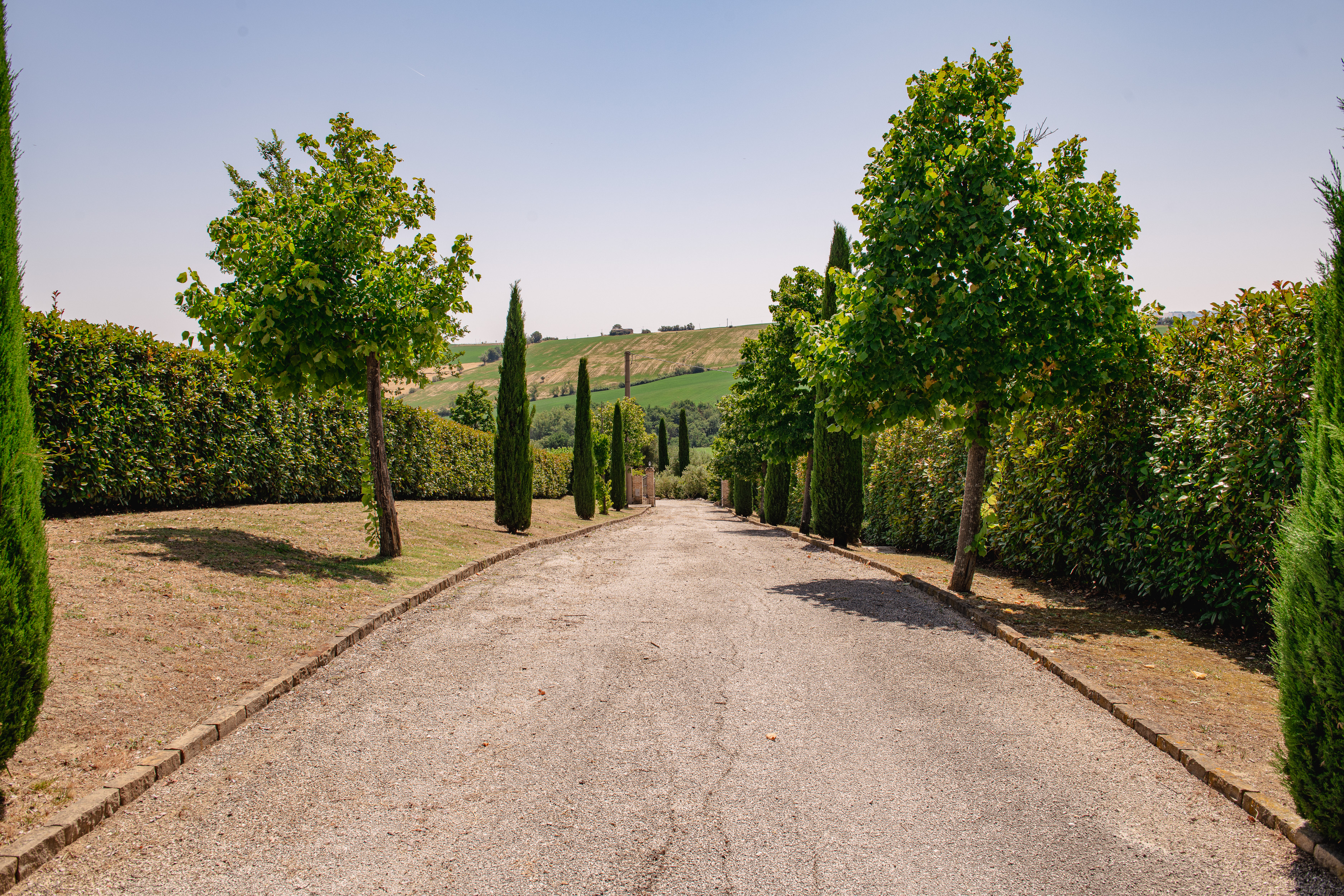 Il giardino (circa 5000 m²) allestito da un architetto paesaggista è costituito da diverse terrazze e da un pozzo. Il giardino ha una variegata piantagione tradizionale italiana. Alberi da frutto, arbusti ornamentali, fiori, un terrazzo di piante grasse e un uliveto privato di ulivi giovani e di circa 100 anni.