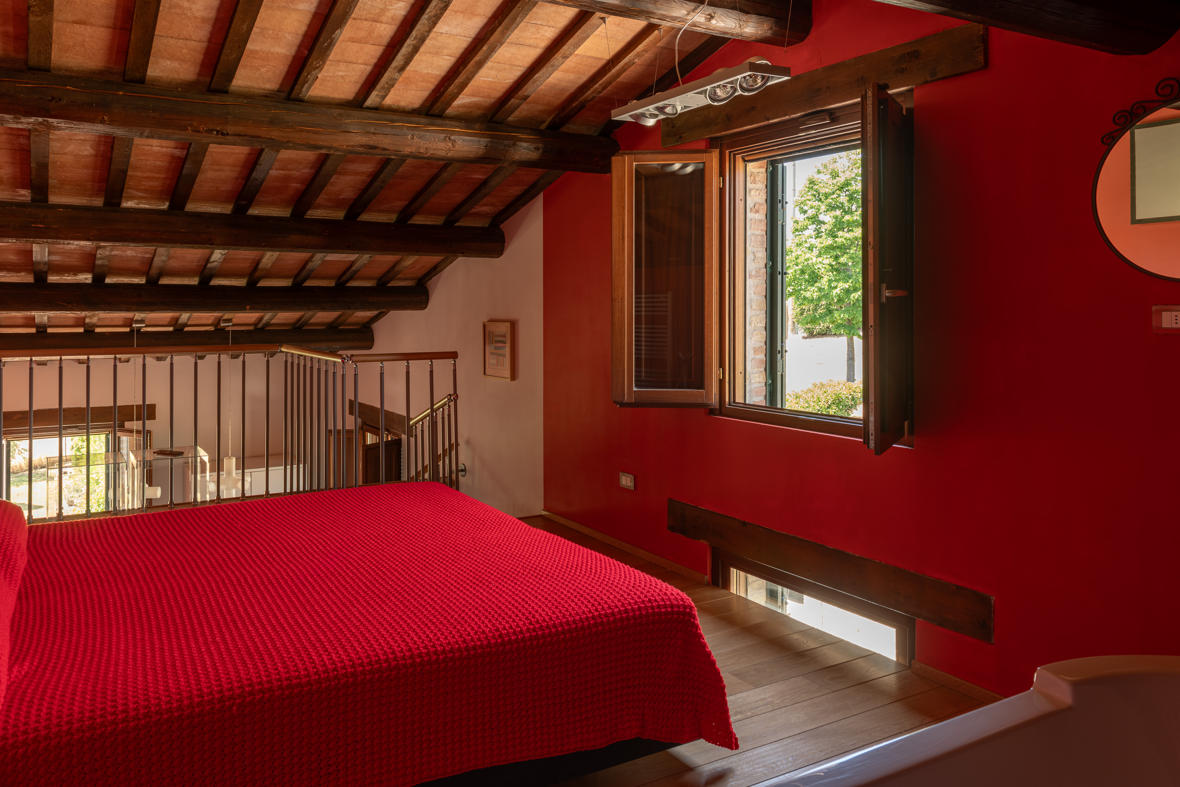 Bellissima proprietà a Cupramontana, di grande successo come attività turistica, composta da 3 edifici con un totale di 8 camere e 5 bagni, vasca idromassaggio e piscina