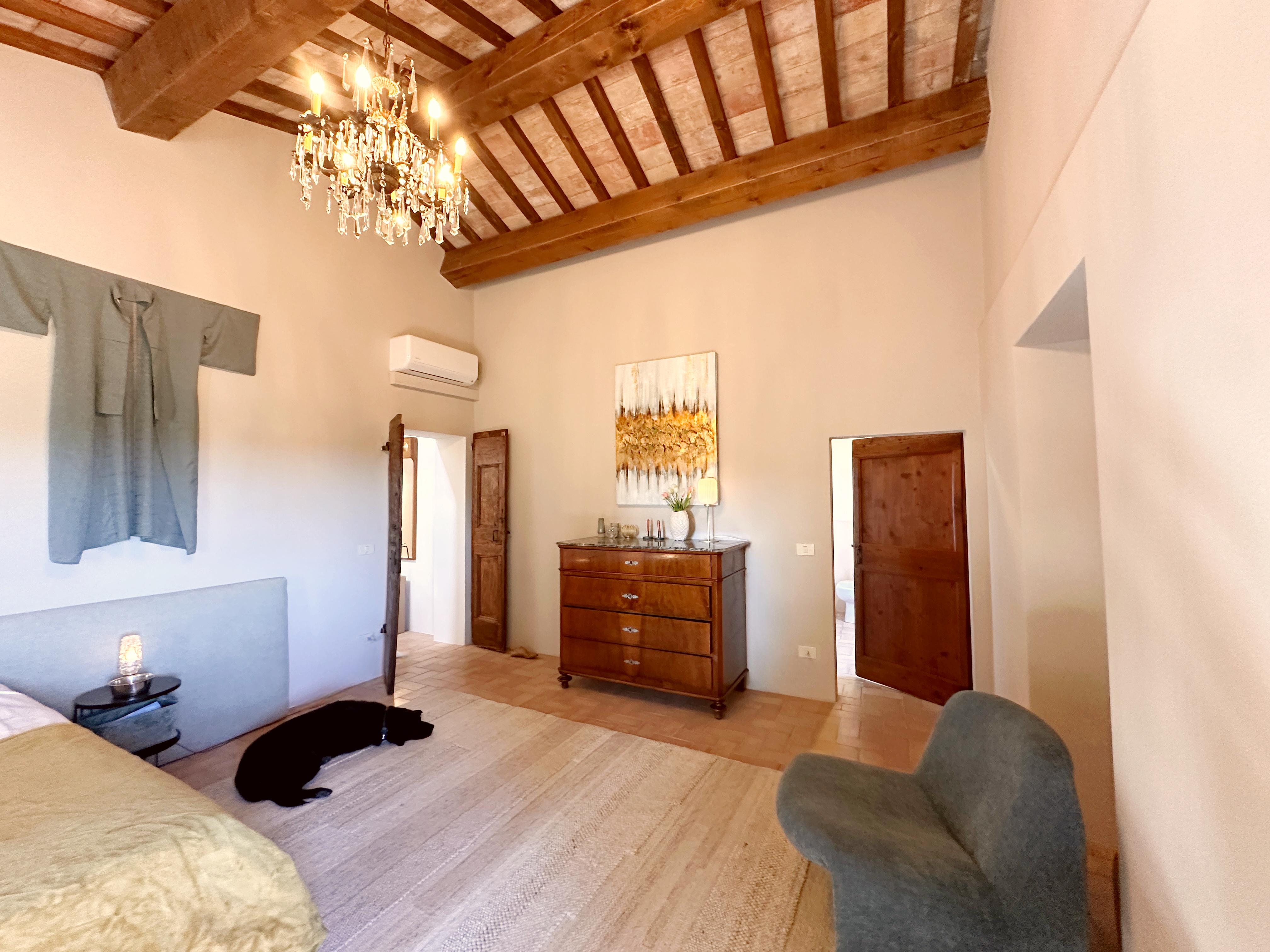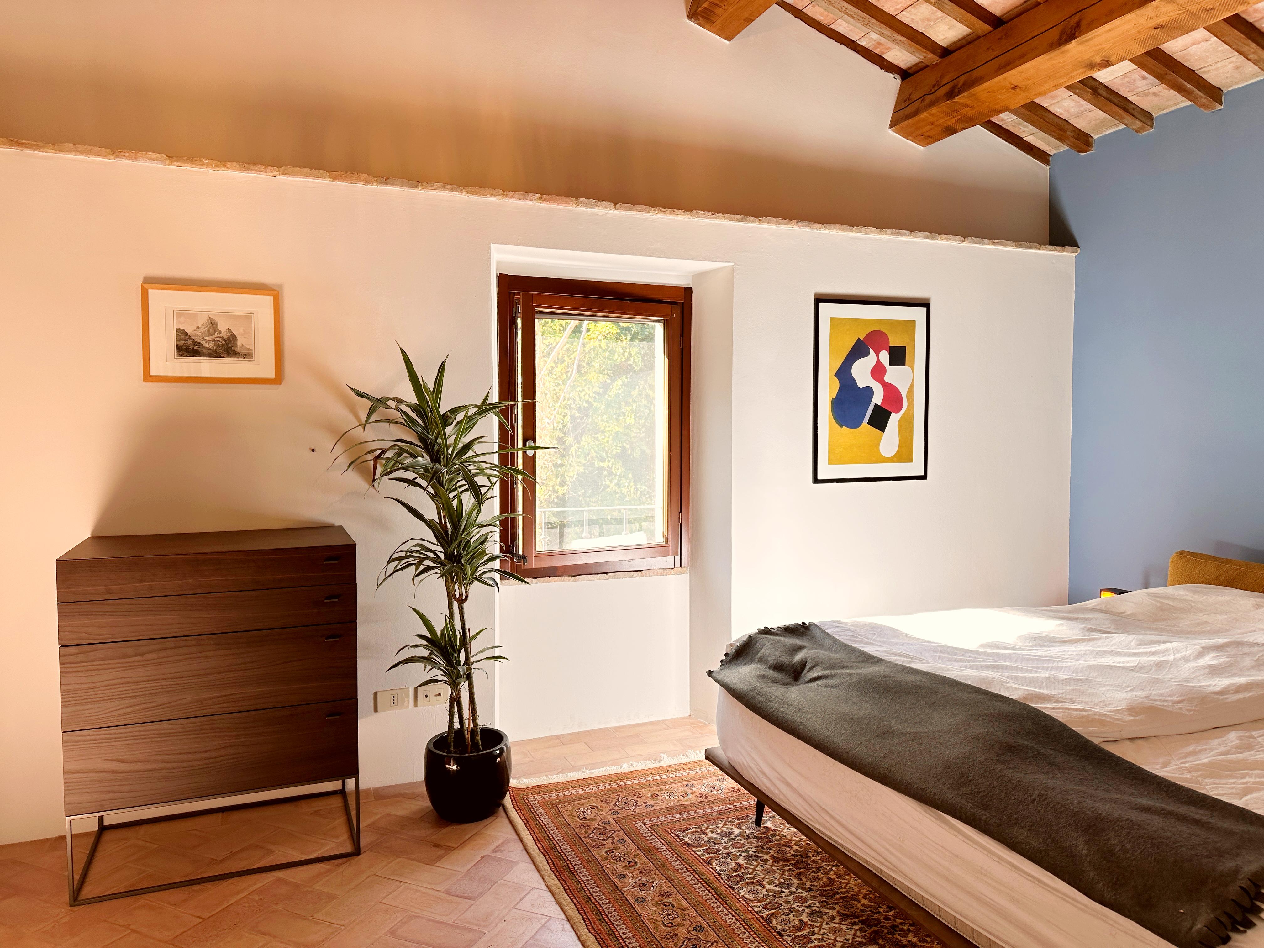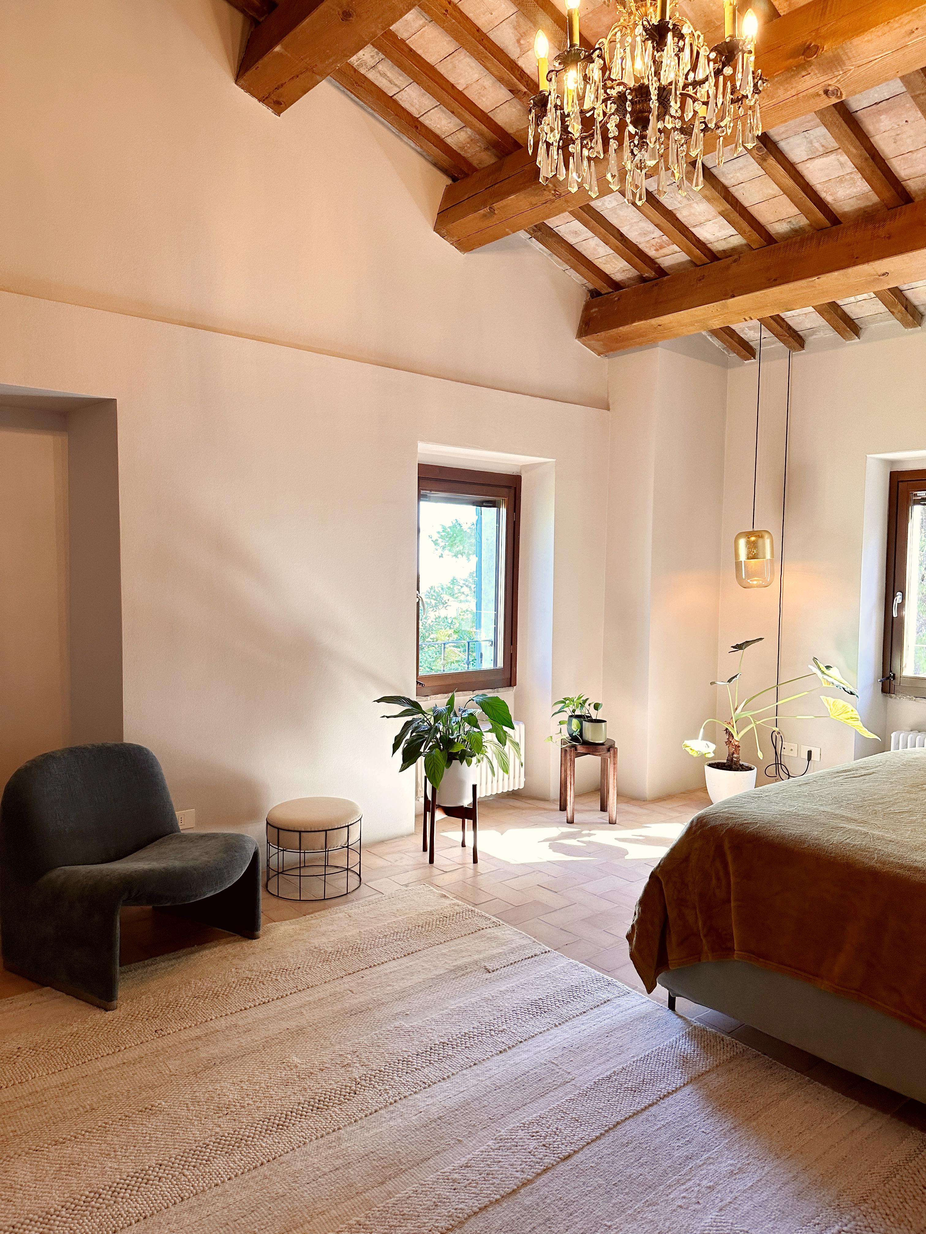 In posizione dominante, immersa tra le dolci colline marchigiane, Villa Il Poggio è un casale in pietra finemente ricostruito che unisce il fascino rustico della tradizione al comfort e alla raffinatezza della vita moderna. Grazie alla sua esposizione a sud, la proprietà gode di una luce eccezionale e di una vista spettacolare che si apre fino ai maestosi Monti Sibillini — un panorama che regala albe e tramonti indimenticabili.