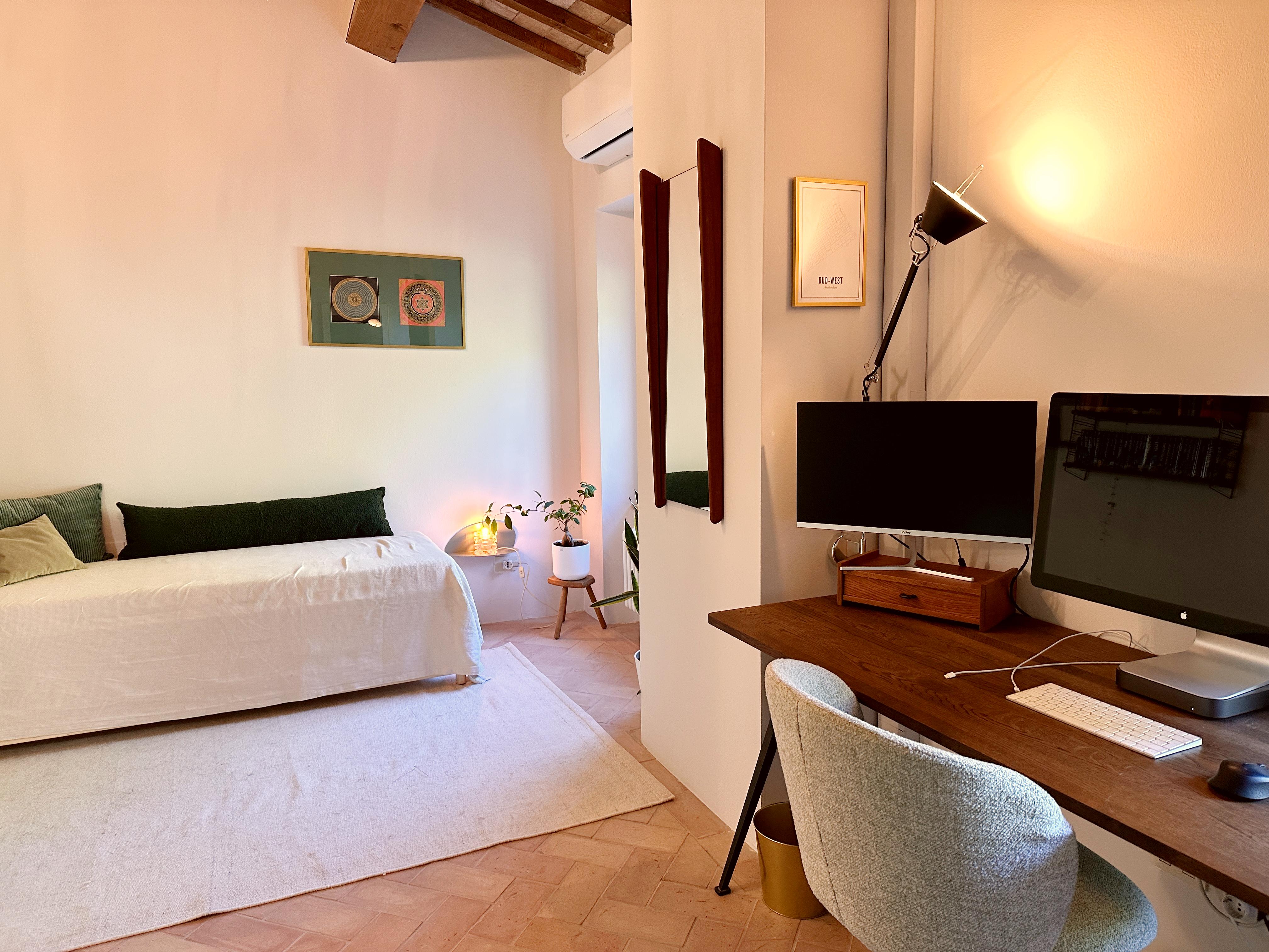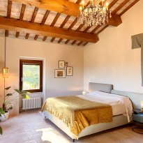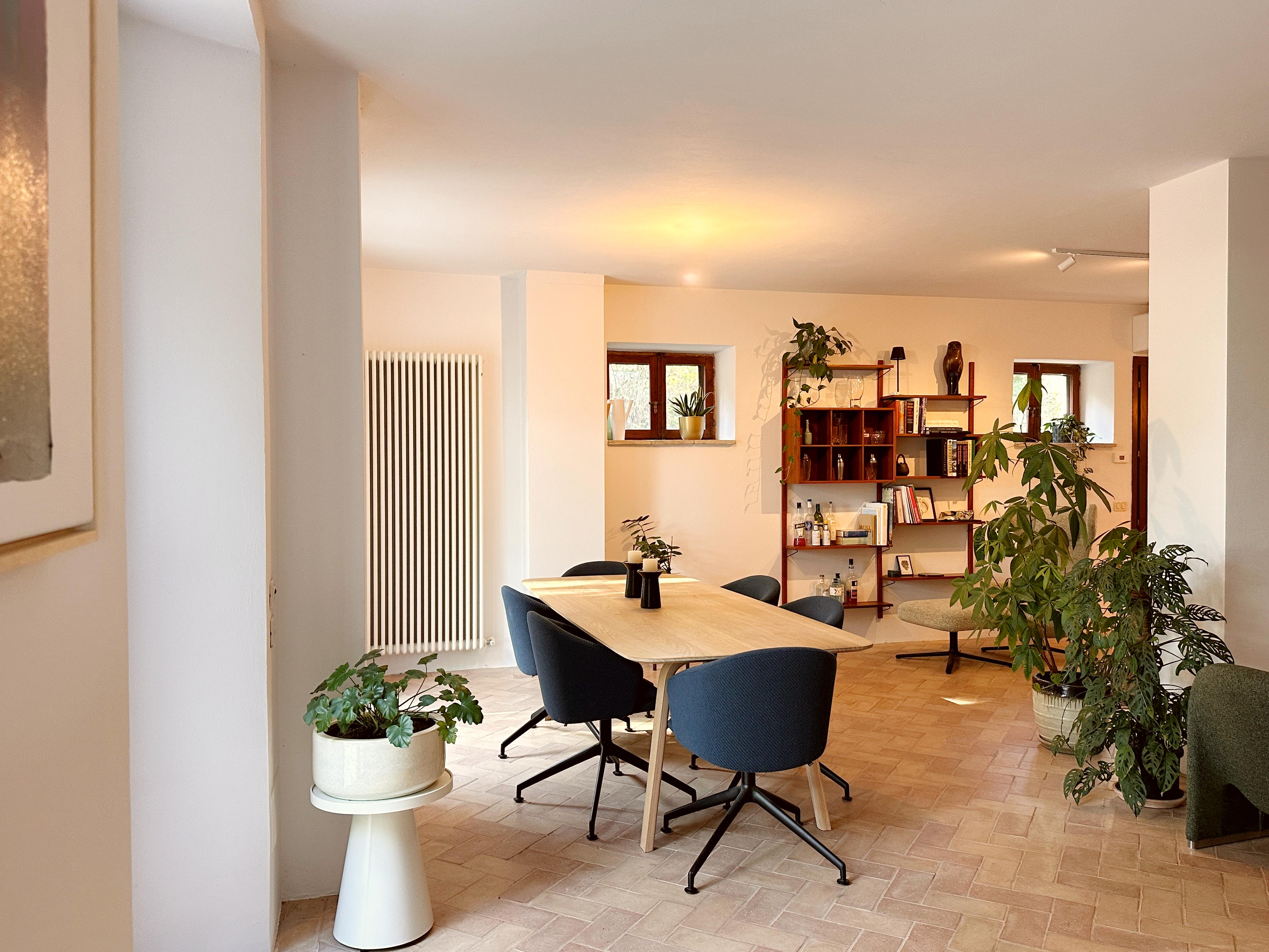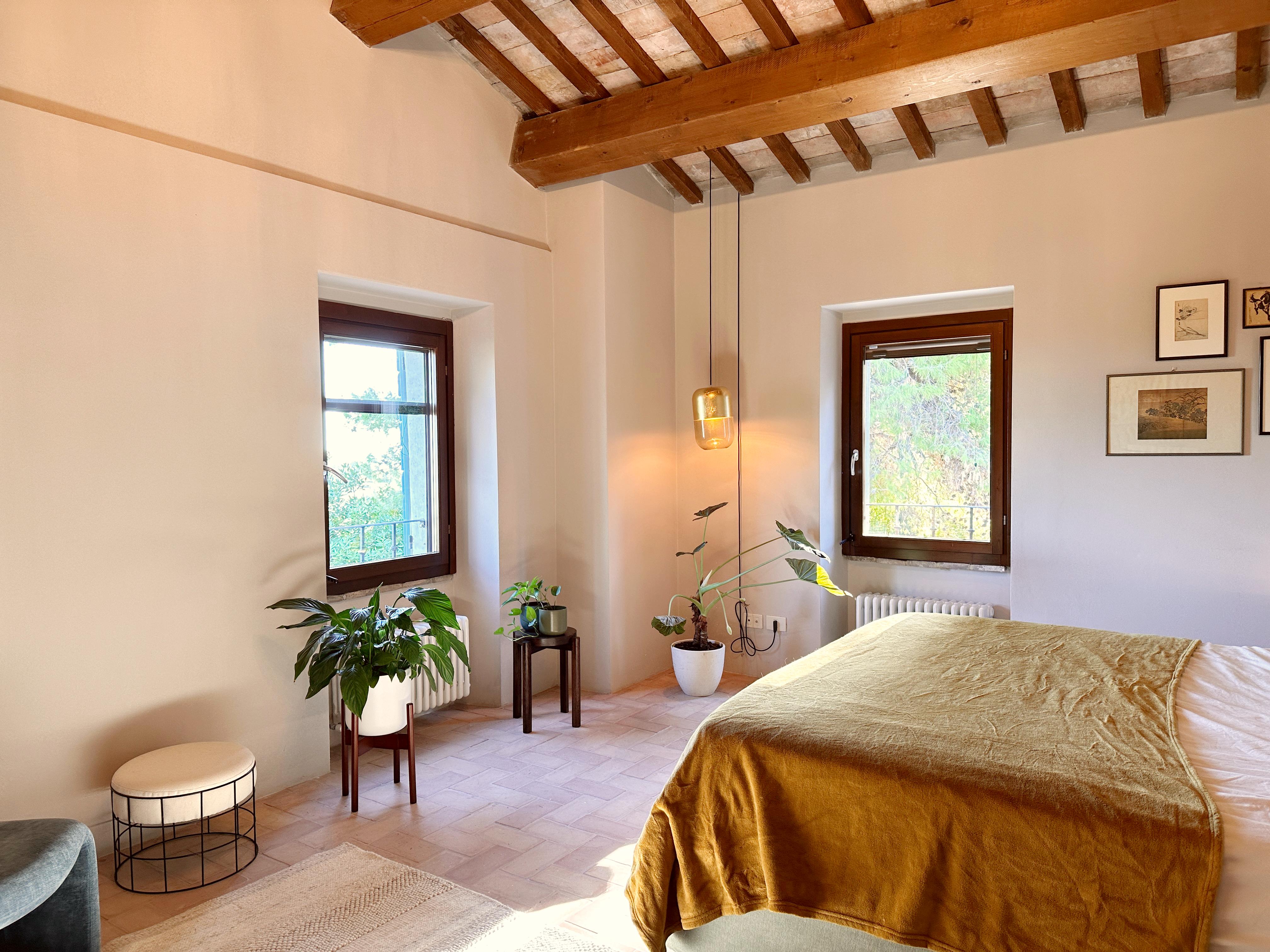 In posizione dominante, immersa tra le dolci colline marchigiane, Villa Il Poggio è un casale in pietra finemente ricostruito che unisce il fascino rustico della tradizione al comfort e alla raffinatezza della vita moderna. Grazie alla sua esposizione a sud, la proprietà gode di una luce eccezionale e di una vista spettacolare che si apre fino ai maestosi Monti Sibillini — un panorama che regala albe e tramonti indimenticabili.