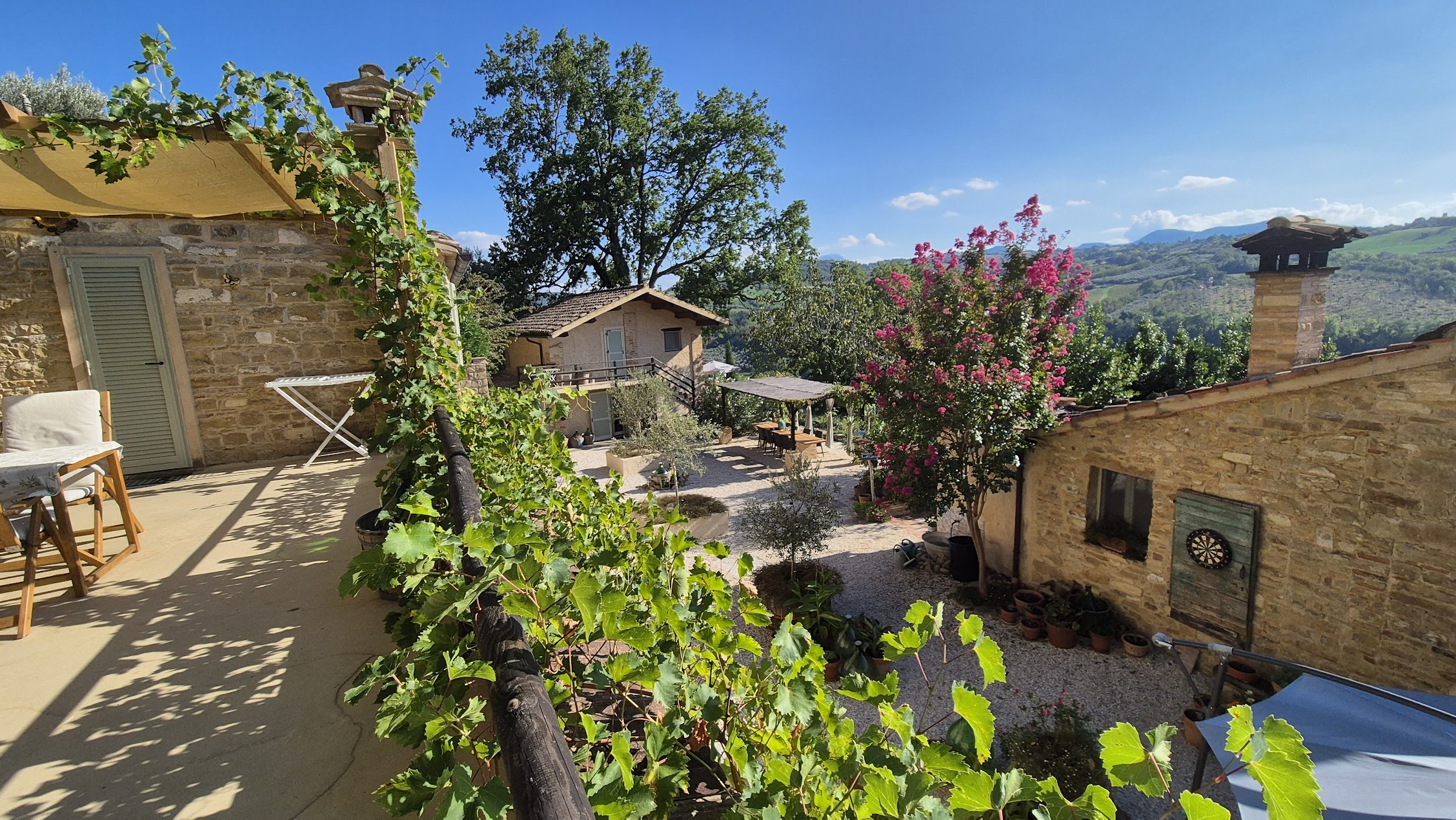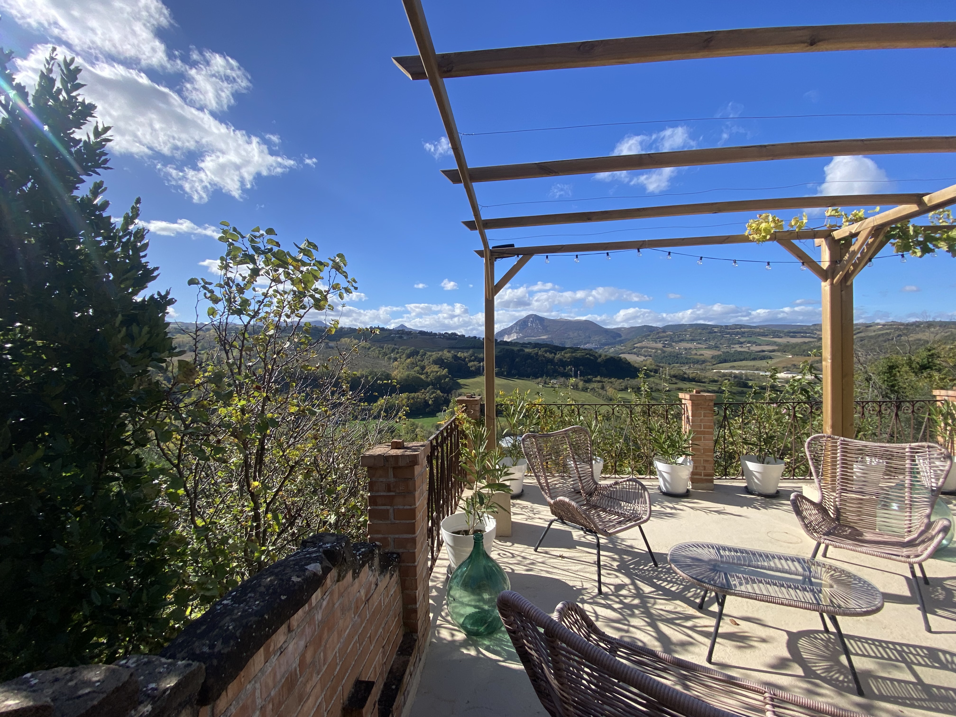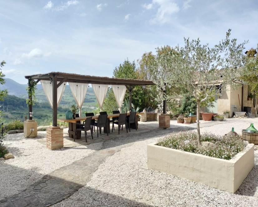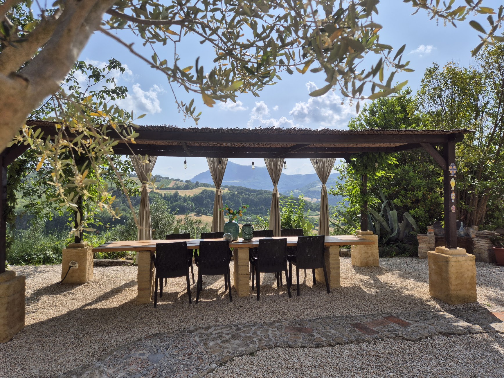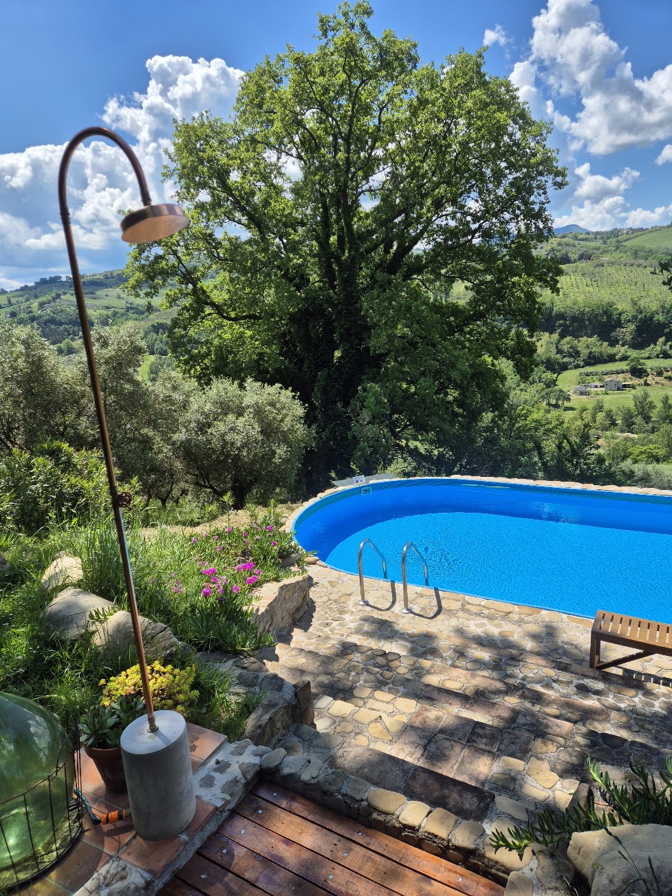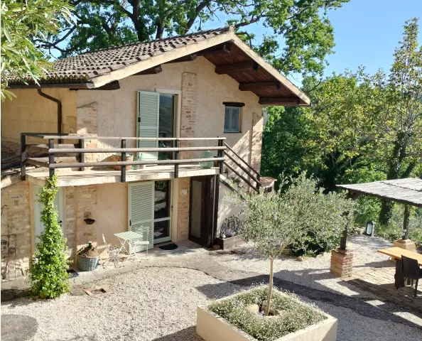 In posizione dominante, immersa tra le dolci colline marchigiane, Villa Il Poggio è un casale in pietra finemente ricostruito che unisce il fascino rustico della tradizione al comfort e alla raffinatezza della vita moderna. Grazie alla sua esposizione a sud, la proprietà gode di una luce eccezionale e di una vista spettacolare che si apre fino ai maestosi Monti Sibillini — un panorama che regala albe e tramonti indimenticabili.