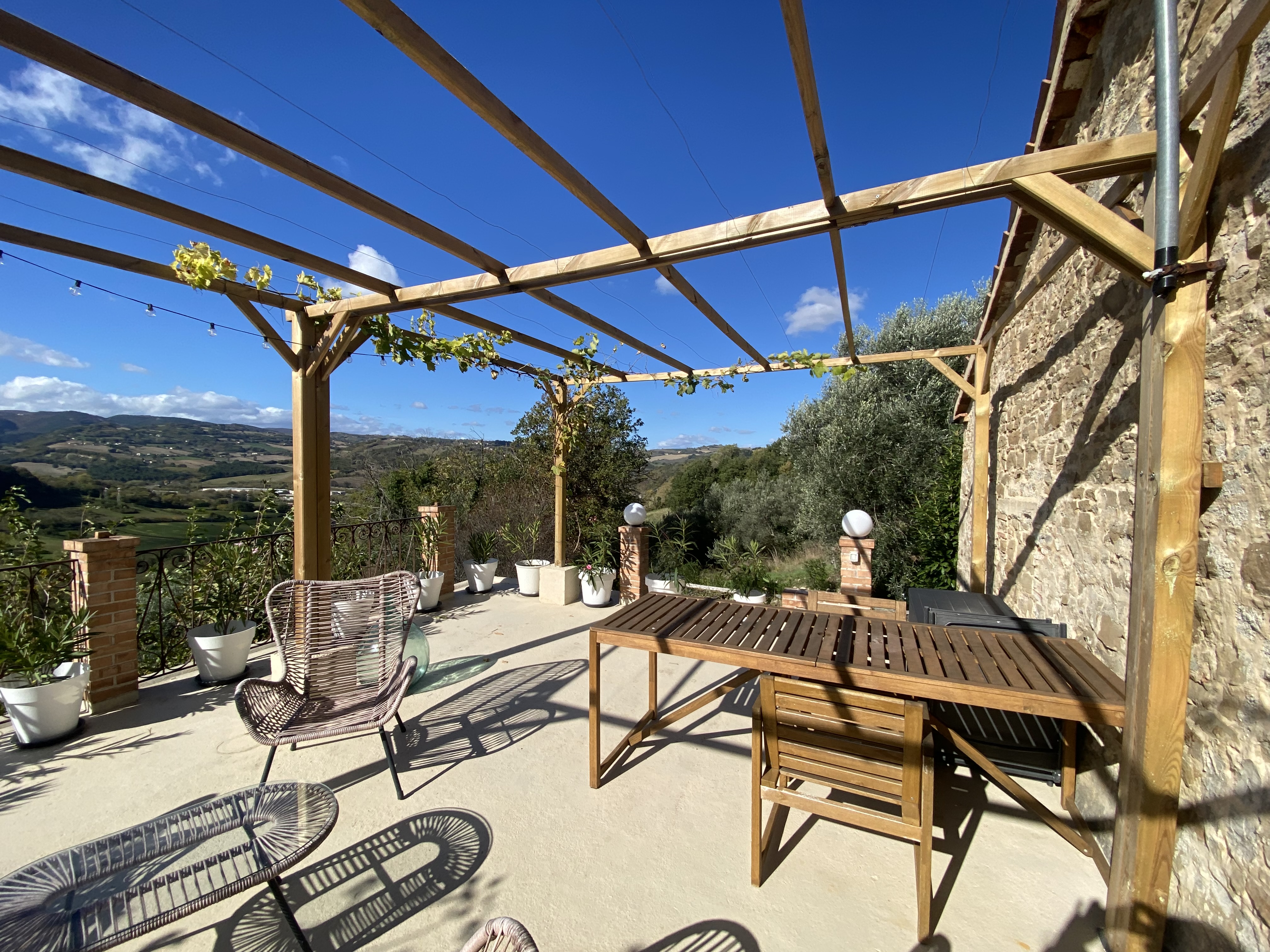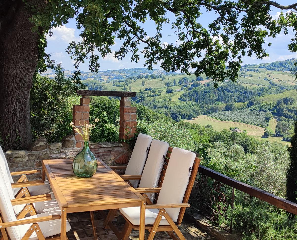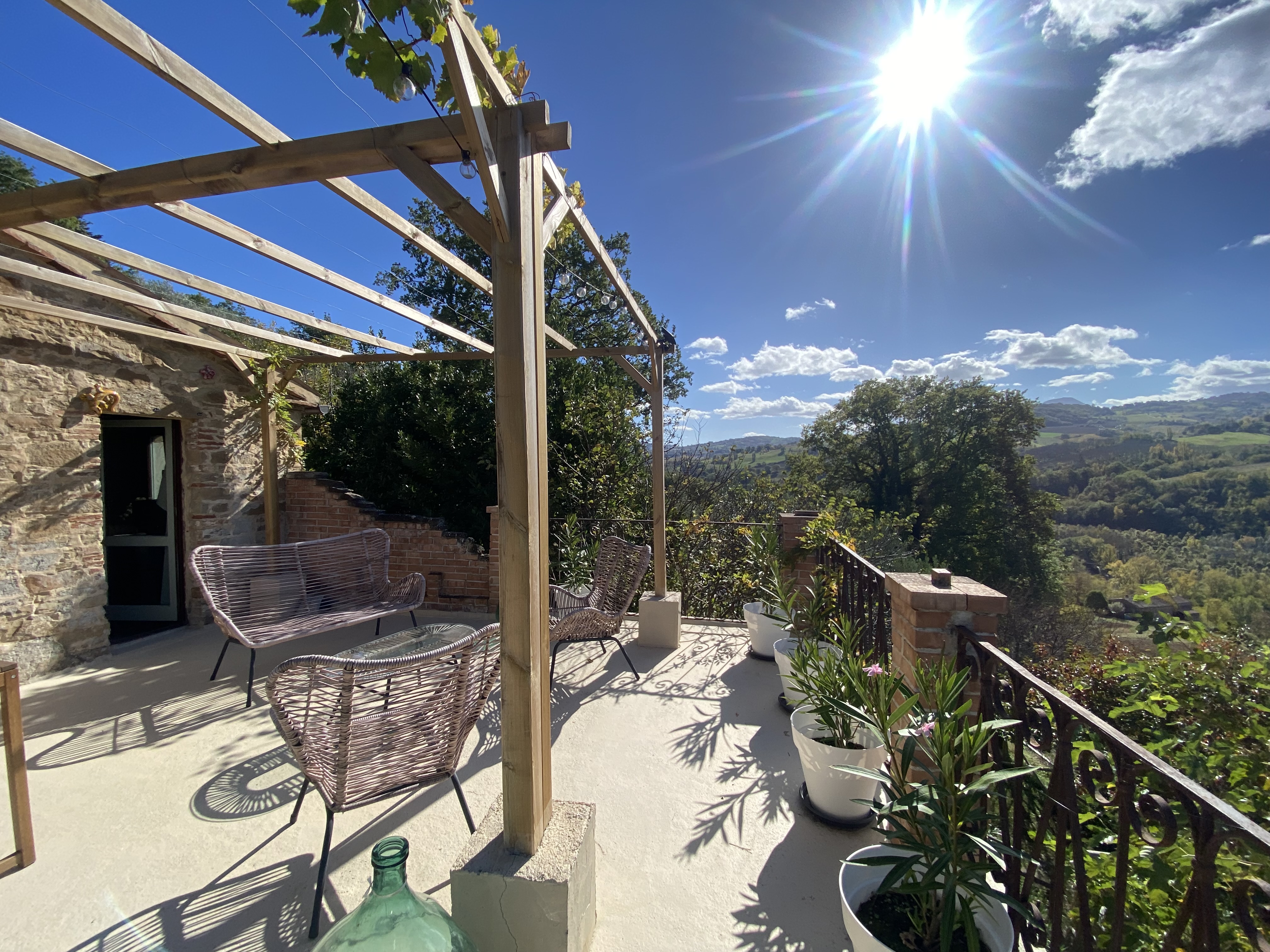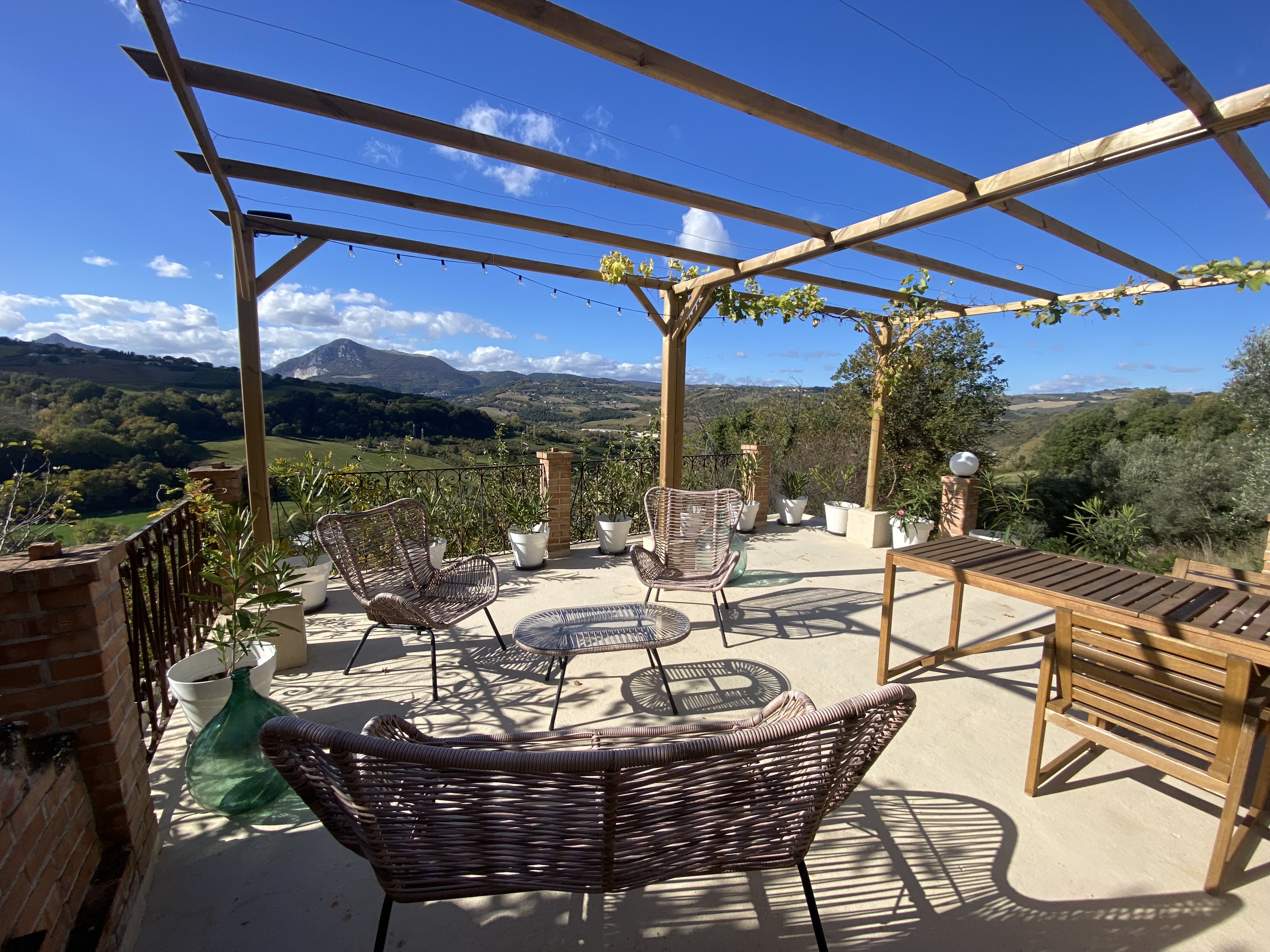 In posizione dominante, immersa tra le dolci colline marchigiane, Villa Il Poggio è un casale in pietra finemente ricostruito che unisce il fascino rustico della tradizione al comfort e alla raffinatezza della vita moderna. Grazie alla sua esposizione a sud, la proprietà gode di una luce eccezionale e di una vista spettacolare che si apre fino ai maestosi Monti Sibillini — un panorama che regala albe e tramonti indimenticabili.