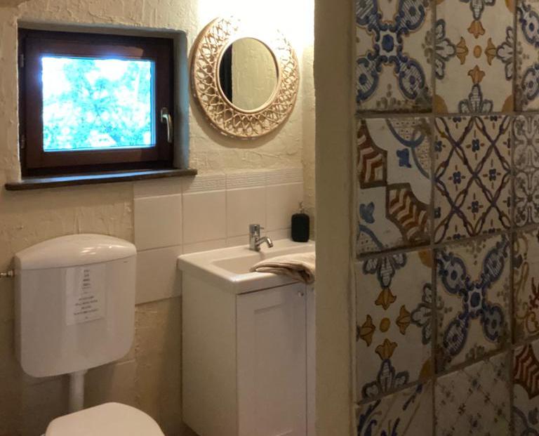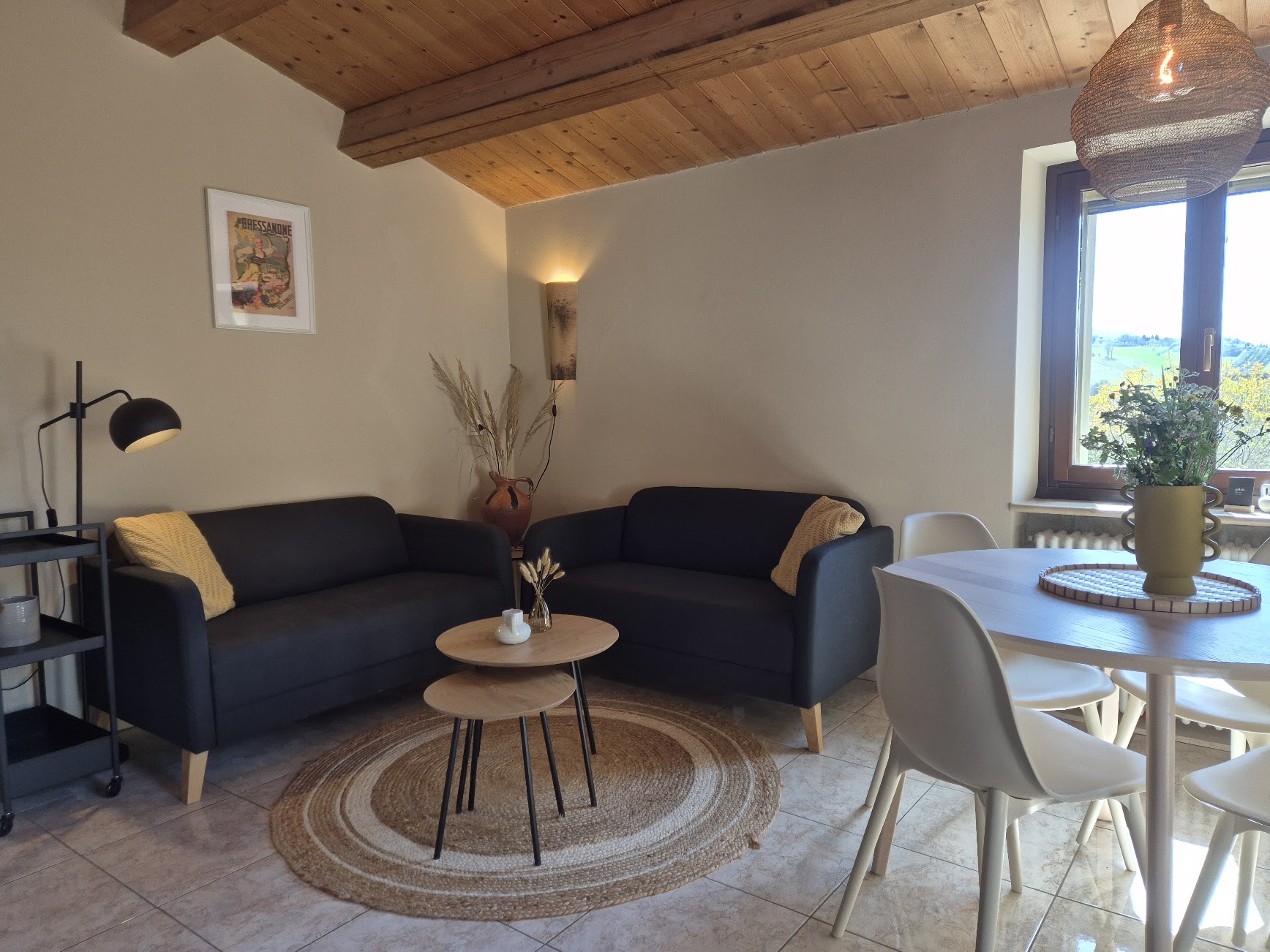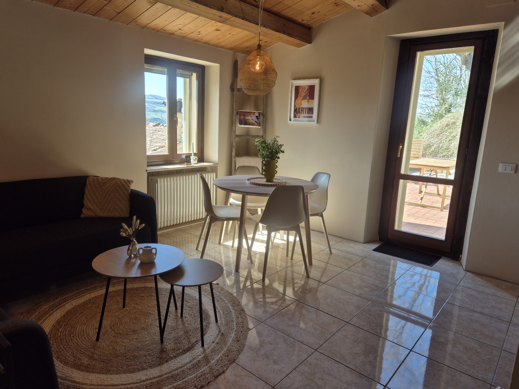 Appartamento 3:Questa ex stalla è stata trasformata in un confortevole appartamento (35 m²) per 2 persone con terrazza privata, cucina abitabile con zona salotto, camera da letto e bagno .