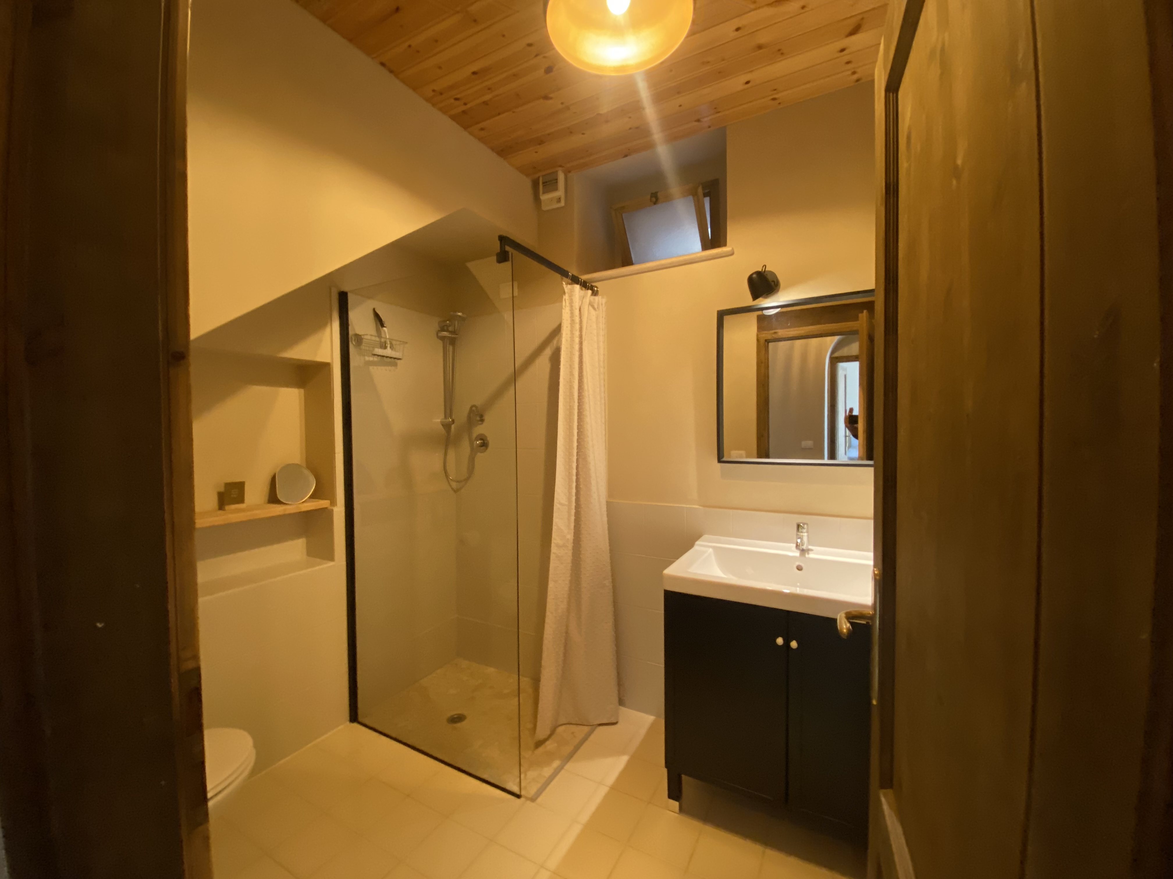 Appartamento 2:cottage indipendente per 4 persone di 54 m² suddiviso su 2 piani, con ampia terrazza panoramica privata adiacente, cucina con ampia zona soggiorno al primo piano (ingresso) e al piano terra 2 camere da letto e bagno. Tutte le stanze sono dotate di riscaldamento centralizzato.