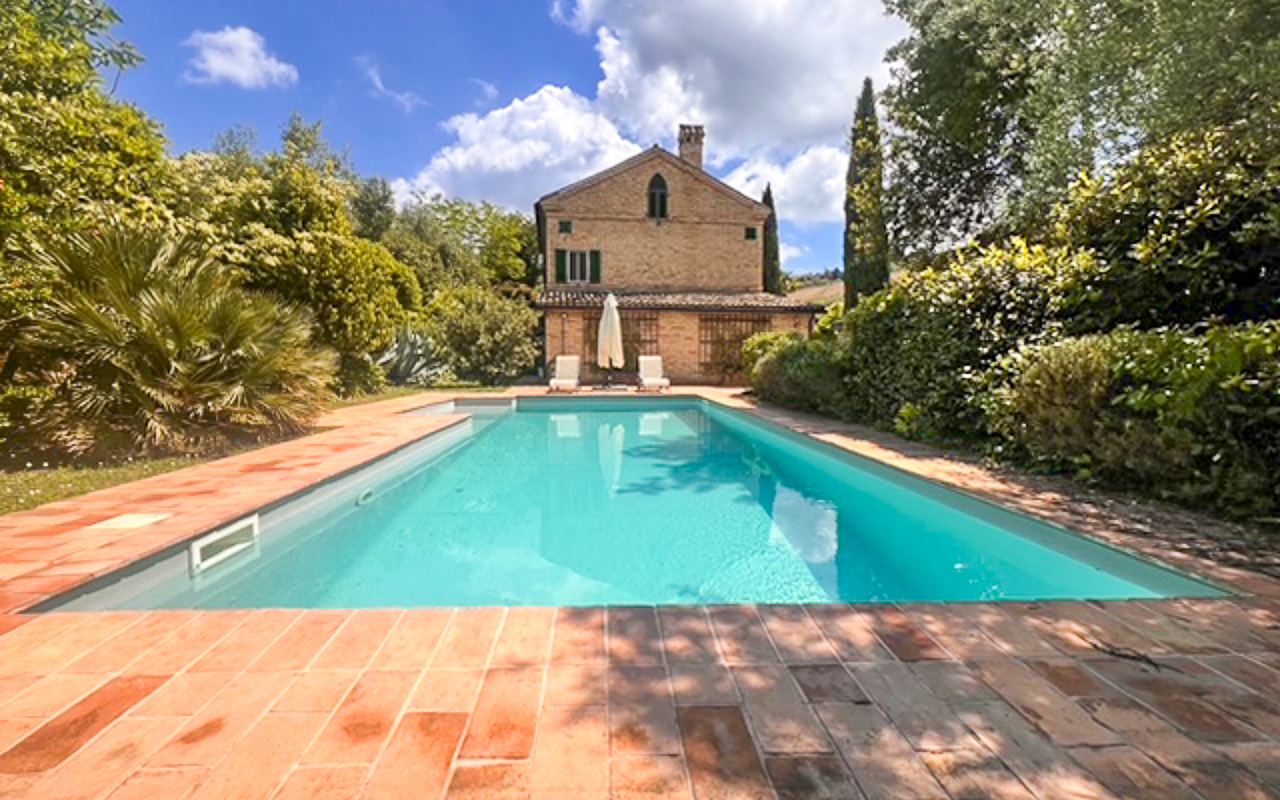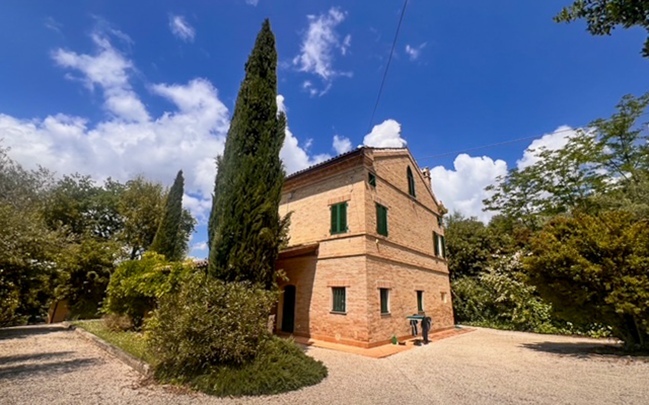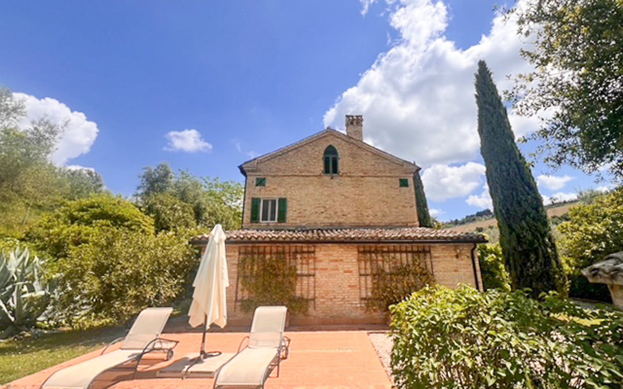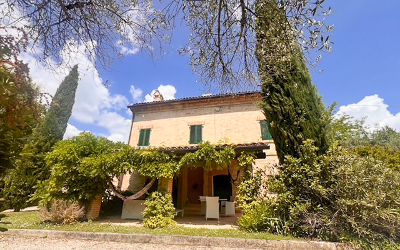Situata in posizione tranquilla e rialzata, a pochi minuti dal centro di Monte Giberto, Villa Serenità è un casale in pietra finemente restaurato che offre circa 300 mq di superficie abitabile, oltre a una dependance indipendente, un giardino curato di 2.270 mq e una piscina, il tutto con splendide viste aperte sulle dolci colline della regione Marche.