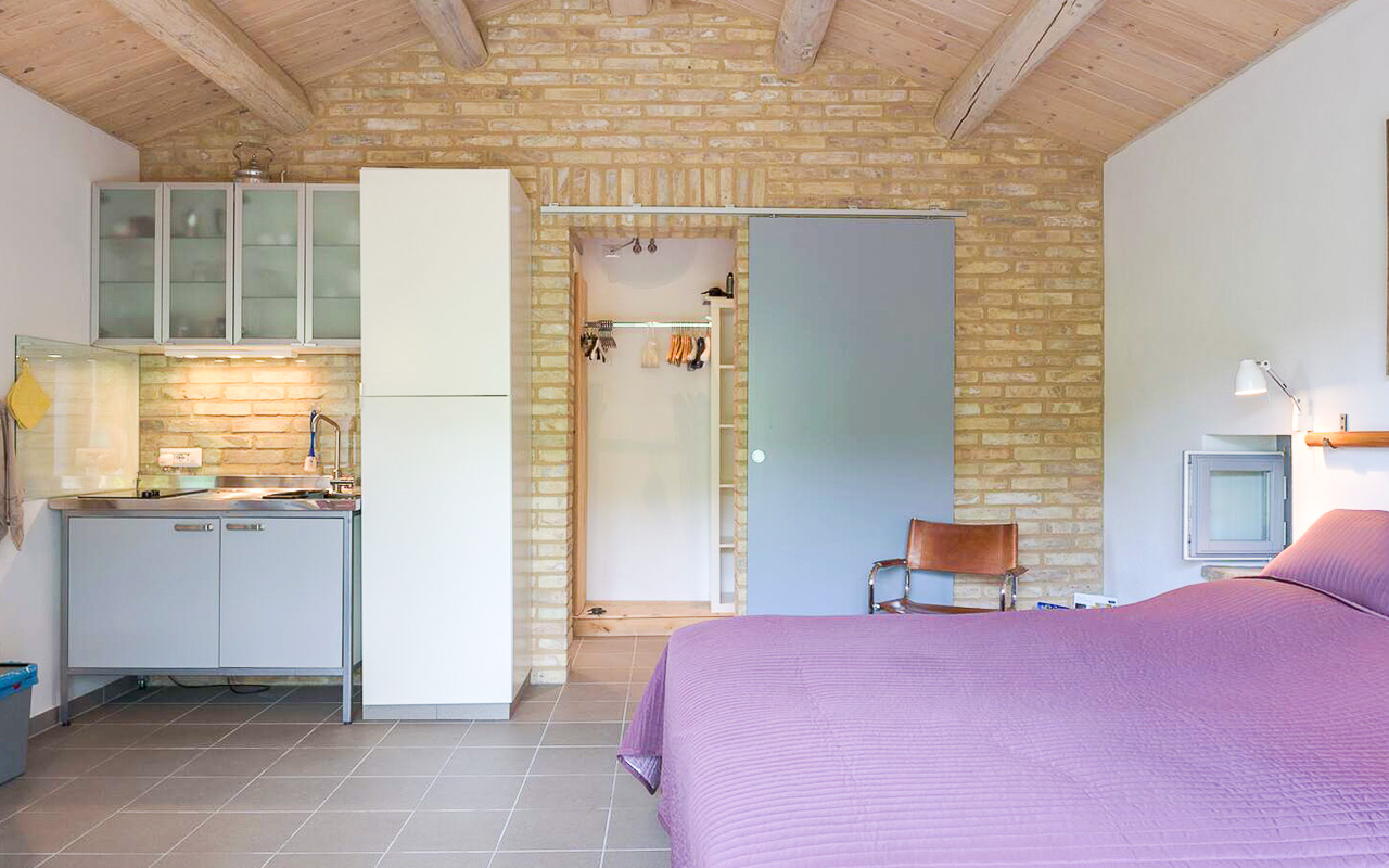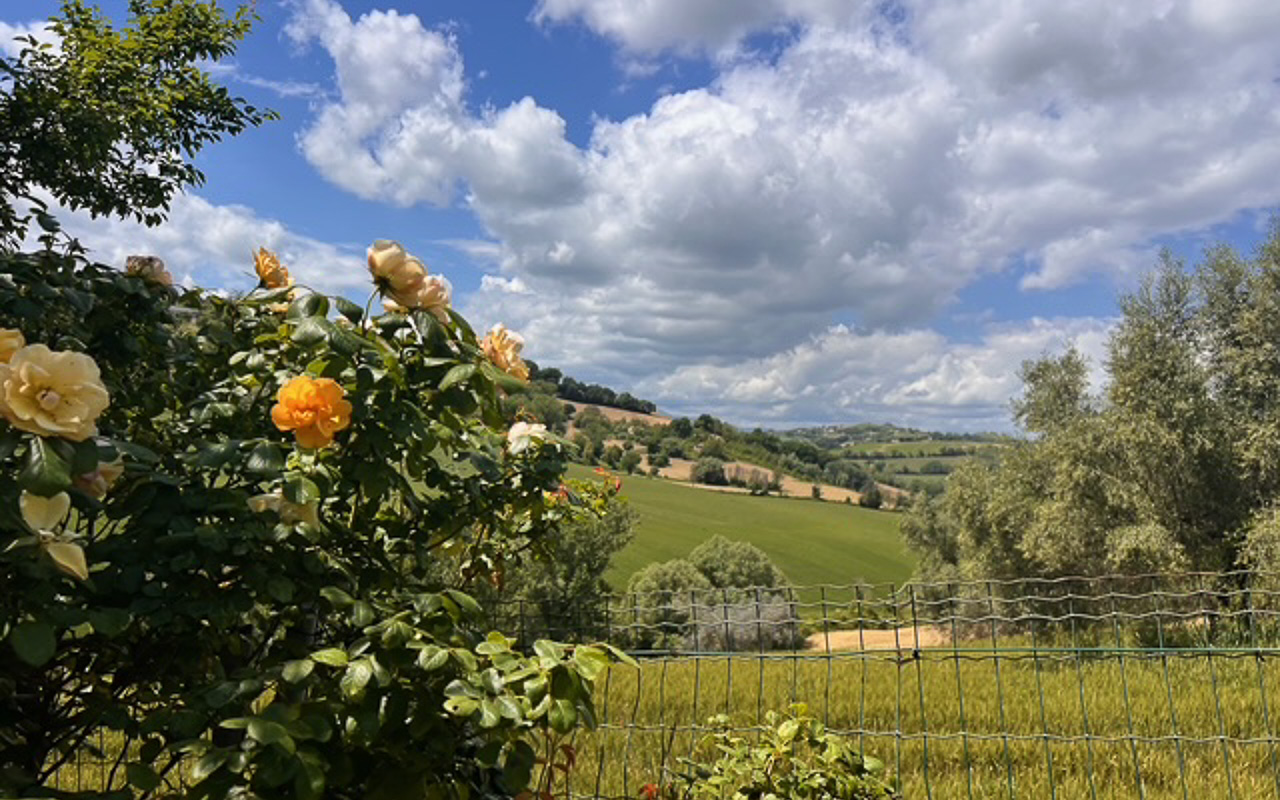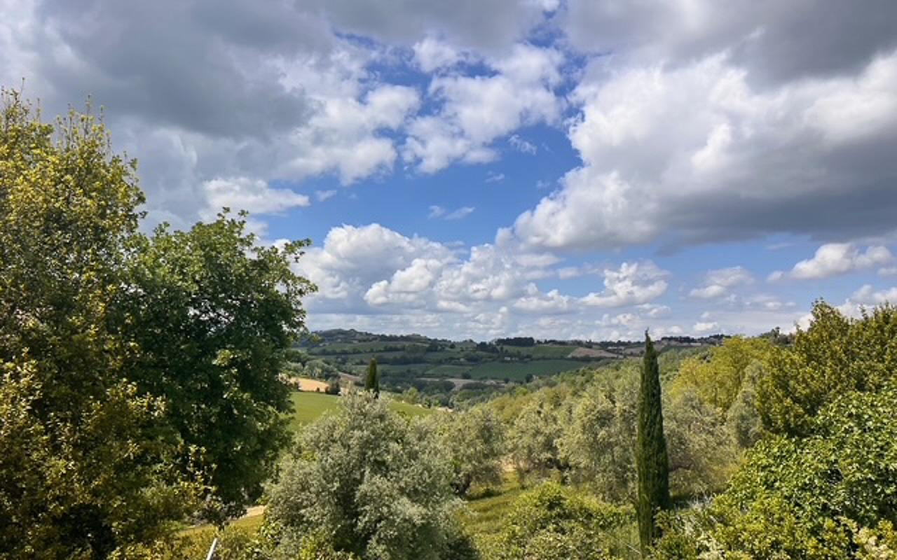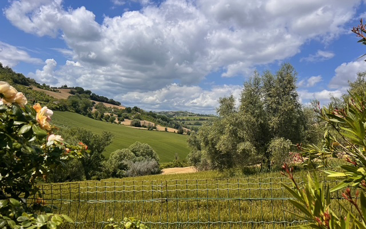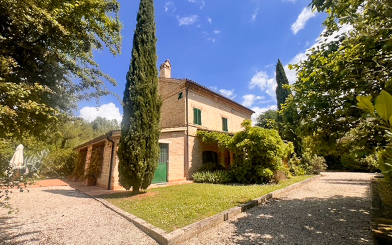 Situata in posizione tranquilla e rialzata, a pochi minuti dal centro di Monte Giberto, Villa Serenità è un casale in pietra finemente restaurato che offre circa 300 mq di superficie abitabile, oltre a una dependance indipendente, un giardino curato di 2.270 mq e una piscina, il tutto con splendide viste aperte sulle dolci colline della regione Marche.
