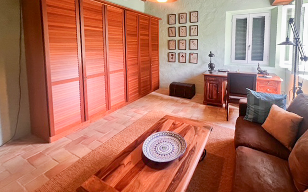L’abitazione principale si sviluppa su più livelli e offre ambienti ampi e versatili. Al piano terra si trovano un grande soggiorno, una cucina, un bagno, una lavanderia e uno studio attualmente utilizzato come camera da letto. È inoltre presente un ampio locale ad uso deposito, con possibilità di trasformazione in ulteriore spazio abitativo, oltre a una terrazza coperta ideale per pranzi e cene all’aperto.
