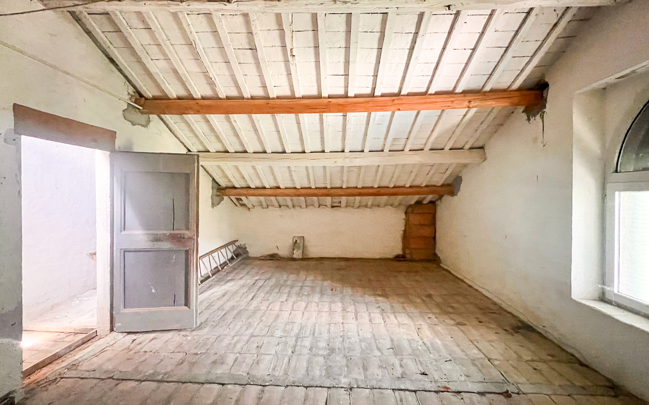 Il primo piano ospita tre camere da letto e due bagni. Al livello superiore, una seconda soffitta con un’altezza centrale di circa 3 metri offre ulteriori possibilità di realizzare due camere aggiuntive o spazi living.