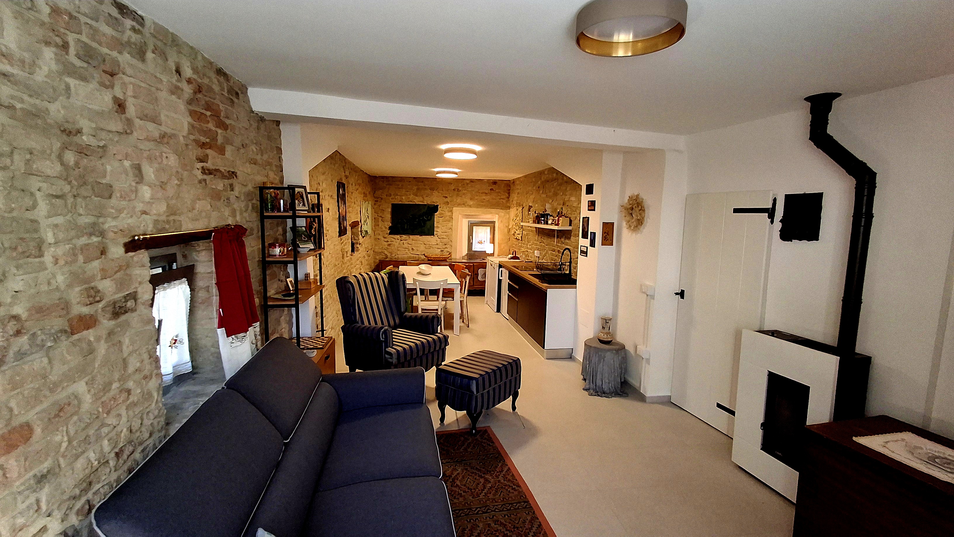 Descrizione breve: Casa Paolina è una proprietà in classe energetica A situata in posizione tranquilla e riservata, con splendida vista sui Monti Sibillini e circa 7 ettari di terreno che confinano con il fiume Tennacola. La casa unisce architettura tradizionale e interni moderni ed efficienti, offrendo impianti energetici sostenibili, spazi accessori e un rudere con possibilità di ricostruzione.