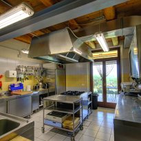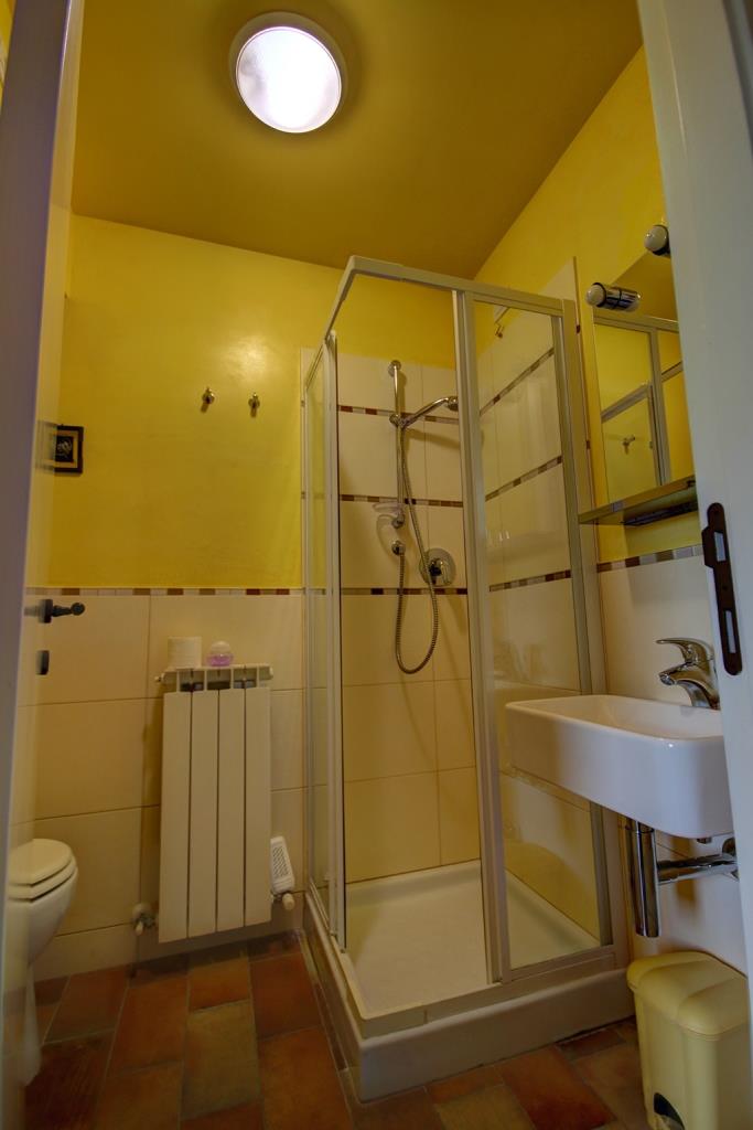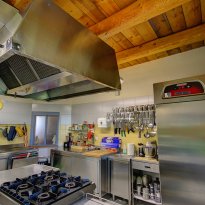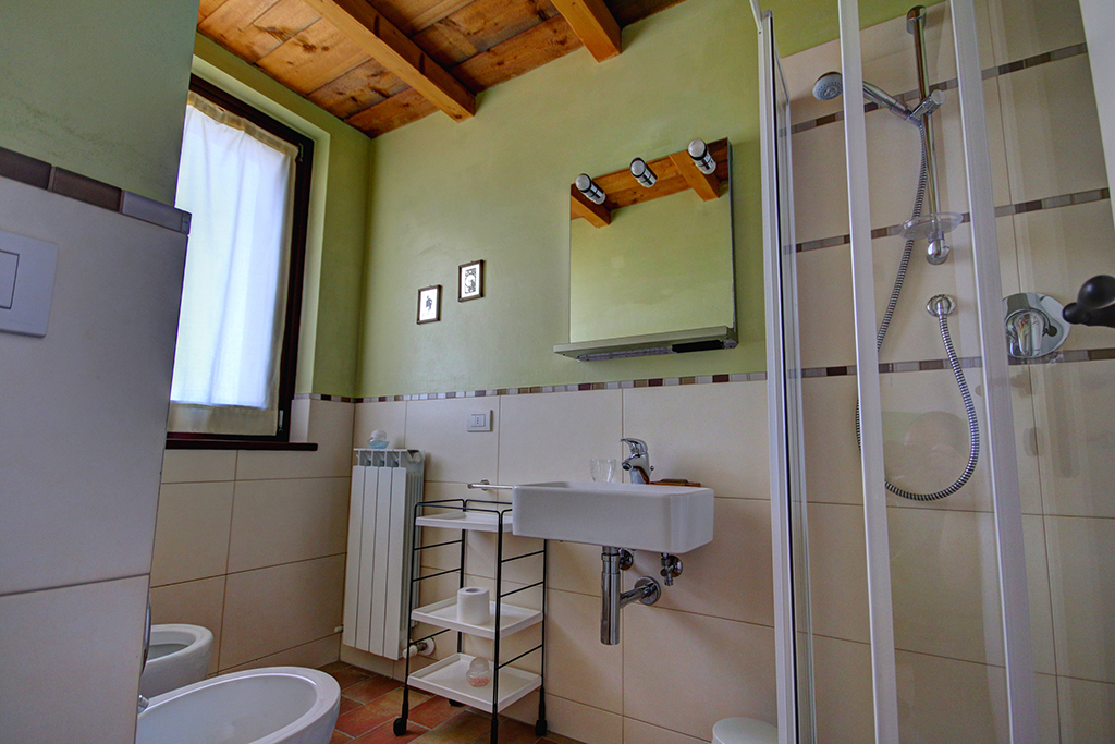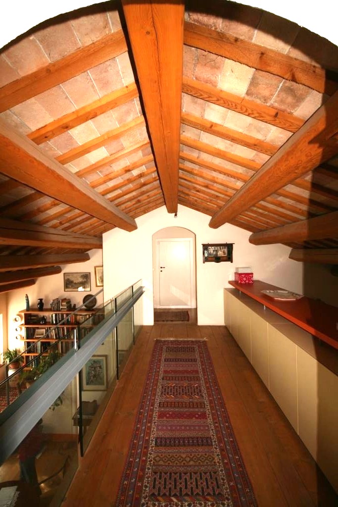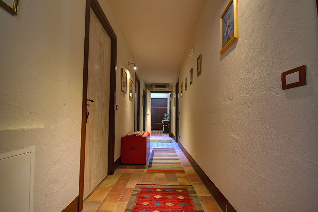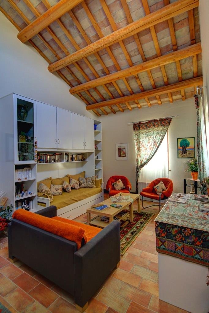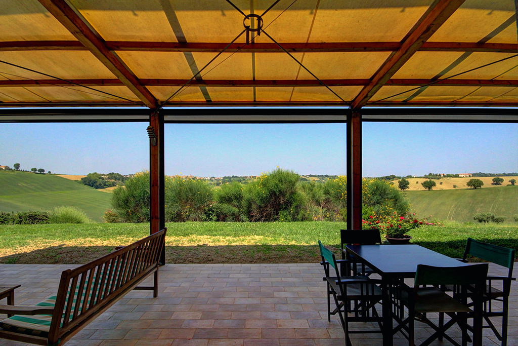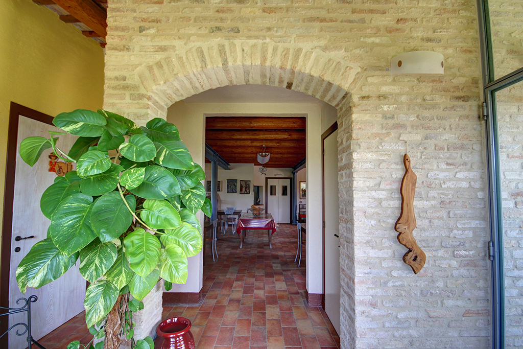Sul lato panoramico è stata ricavata una veranda coperta (88 m²), utilizzata nelle belle stagioni per mangiare all'aperto o per rilassarsi e godersi il panorama, magari con un buon bicchiere di Verdicchio, tipico di questa regione. Sempre al piano terra si trovano la cucina professionale, diversi ripostigli, 2 bagni, tre mini-appartamenti con ingresso indipendente, ciascuno dotato di cucina abitabile, bagno e camera da letto matrimoniale - ideali per due persone o una piccola famiglia con un bambino.Questa proprietà è ideale per chi decide di sviluppare un'attività turistica, come ad esempio B&B e ritiri (yoga) .