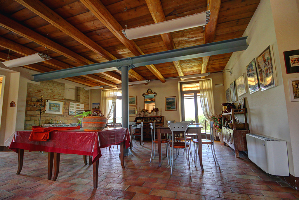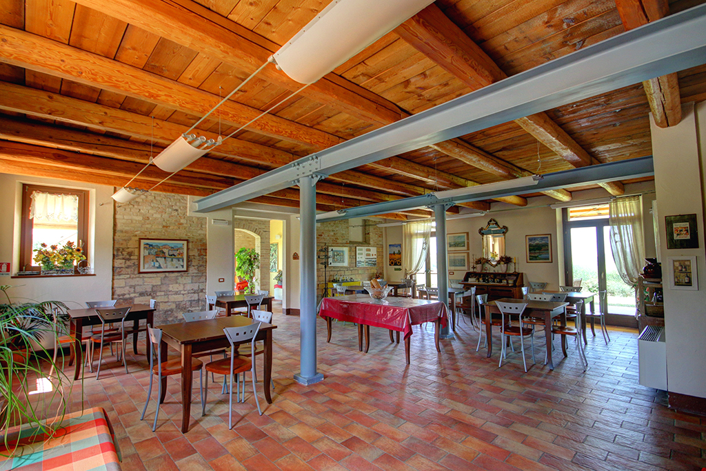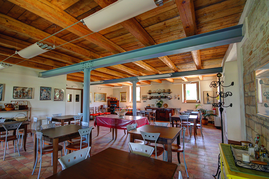 Al piano terra si trova l'ex stalla, che è stata trasformata in un attraente ristorante (circa 50 coperti), ricco di atmosfera e fascino, con incantevole vista sulla campagna circostante e sul vicino villaggio di Ostra.