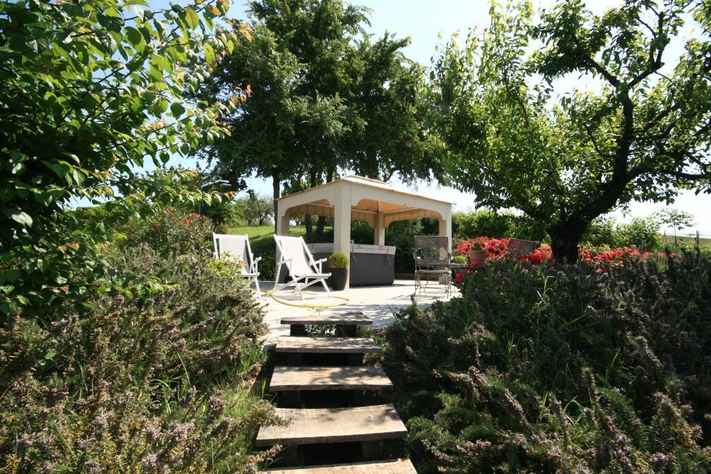 Il bellissimo giardino, con ulivi e alberi da frutto, si estende per circa un ettaro (10.000 m²) e dispone di un parcheggio per gli ospiti, una zona relax e un'area speciale per l'orto.