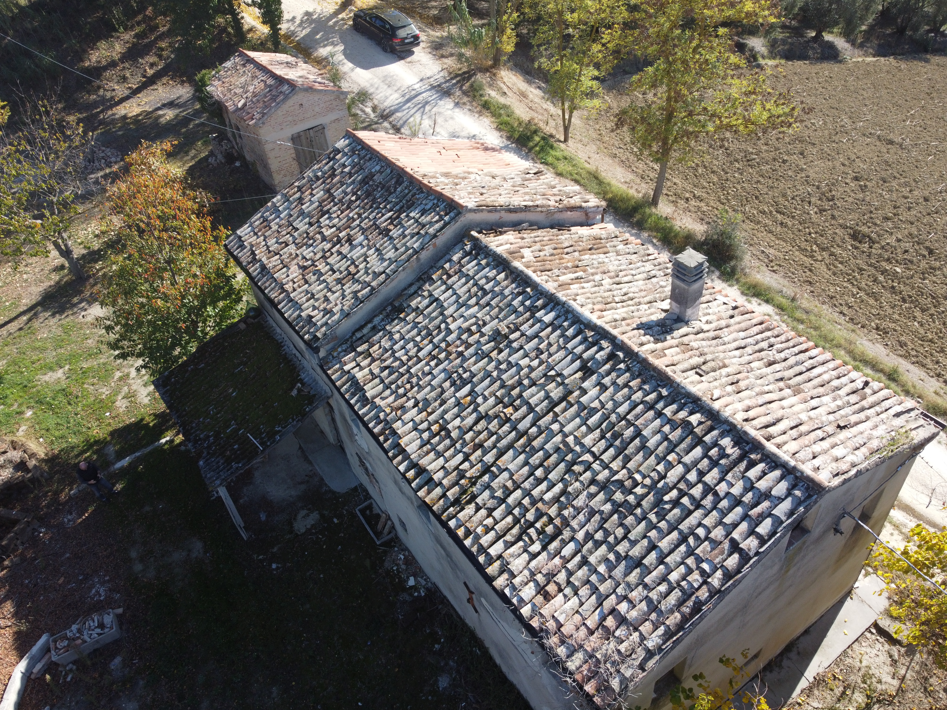 L'edificio è un tipico esempio di casa di campagna tradizionale marchigiana, con una superficie totale di 220 m², distribuita su 2 piani (diversi magazzini al piano terra, 2 camere da letto, 1 bagno e cucina al primo piano, sottotetto con un'altezza di colmo di 1,30 m. Il terreno ha una dimensione di 4,2 ha, parte del quale è piantato con ulivi. Annesso di 20 m².