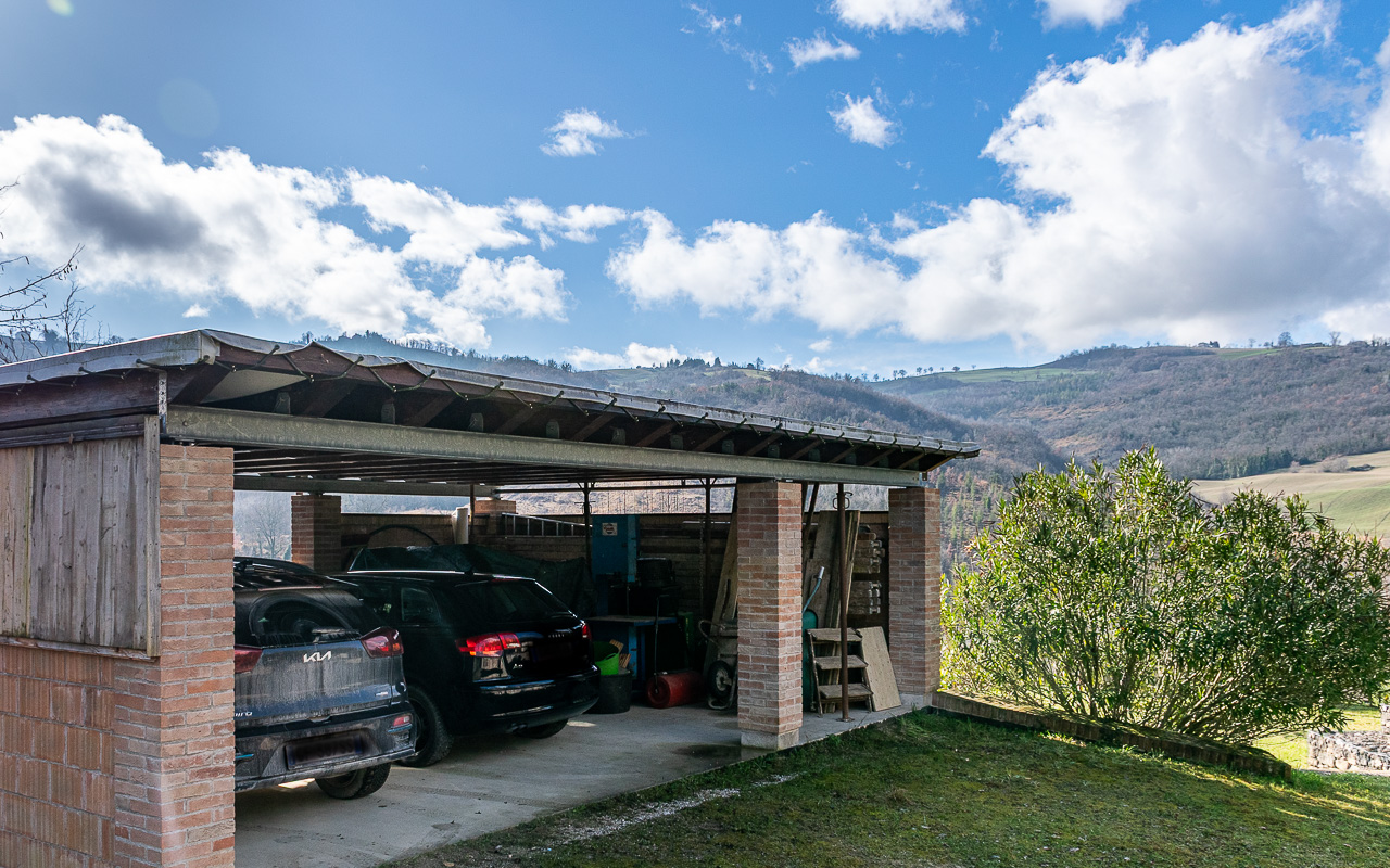 All’esterno è presente una solida tettoia per tre auto con sottostante laboratorio suddiviso in tre locali. Una piscina è in fase avanzata di progettazione. Inoltre, la proprietà comprende un rudere registrato al catasto di circa 300 mq, per il quale è consentita la ricostruzione.