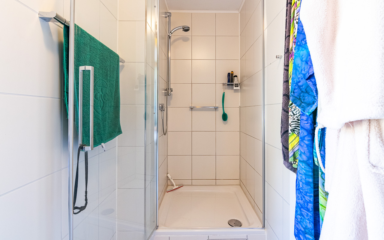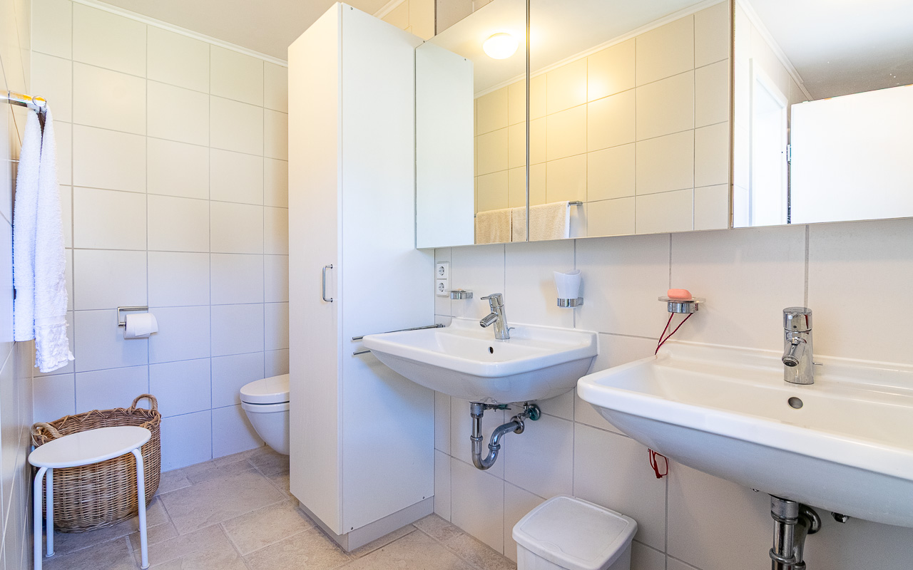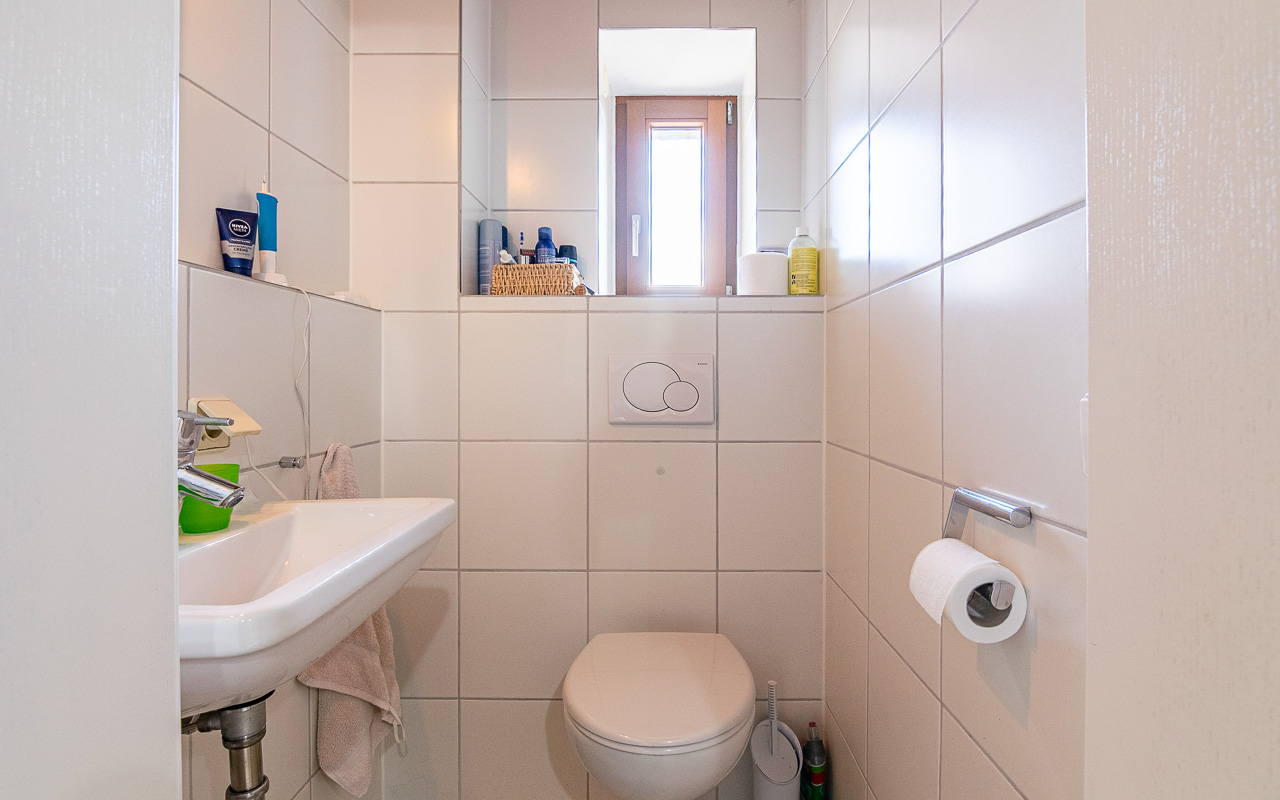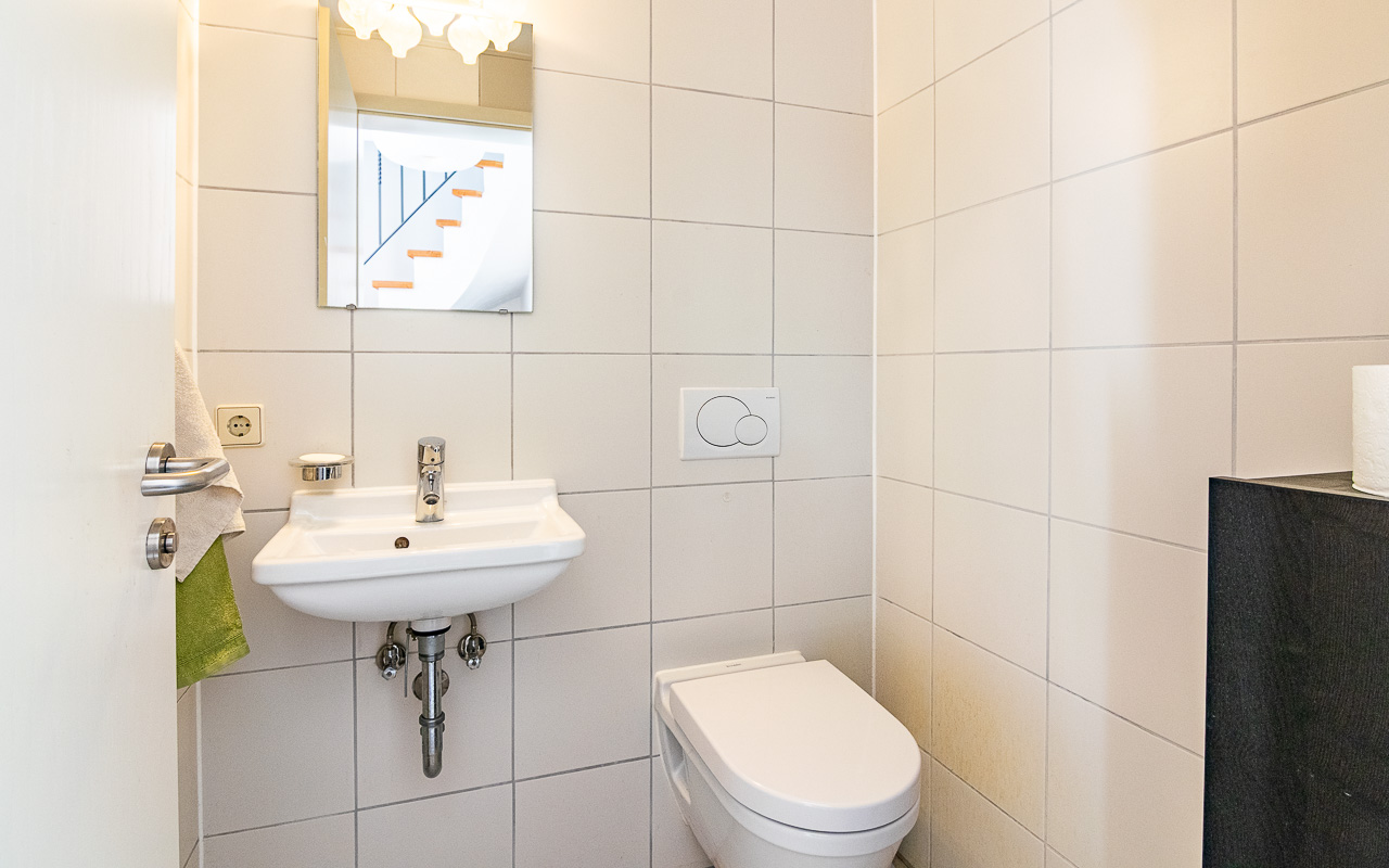 Ogni piano dispone di un proprio bagno, con WC separati al piano terra e al terzo piano. Il secondo piano ospita un ampio bagno con doppi lavabi e doccia. Le due grandi camere da letto si trovano rispettivamente al secondo e al terzo piano.