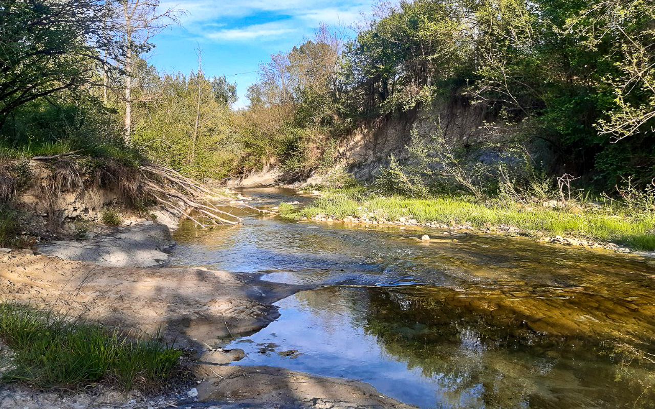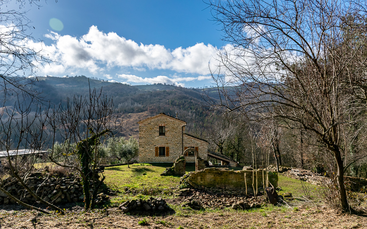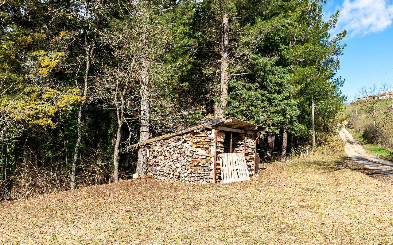 Il terreno si estende per circa 7 ettari (70.000 mq) e confina direttamente con il fiume Tennacola, situato a circa 290 metri dalla casa. Circa 1,5 ettari sono boschivi, garantendo una notevole disponibilità di legna da ardere pari a circa 30 metri cubi.