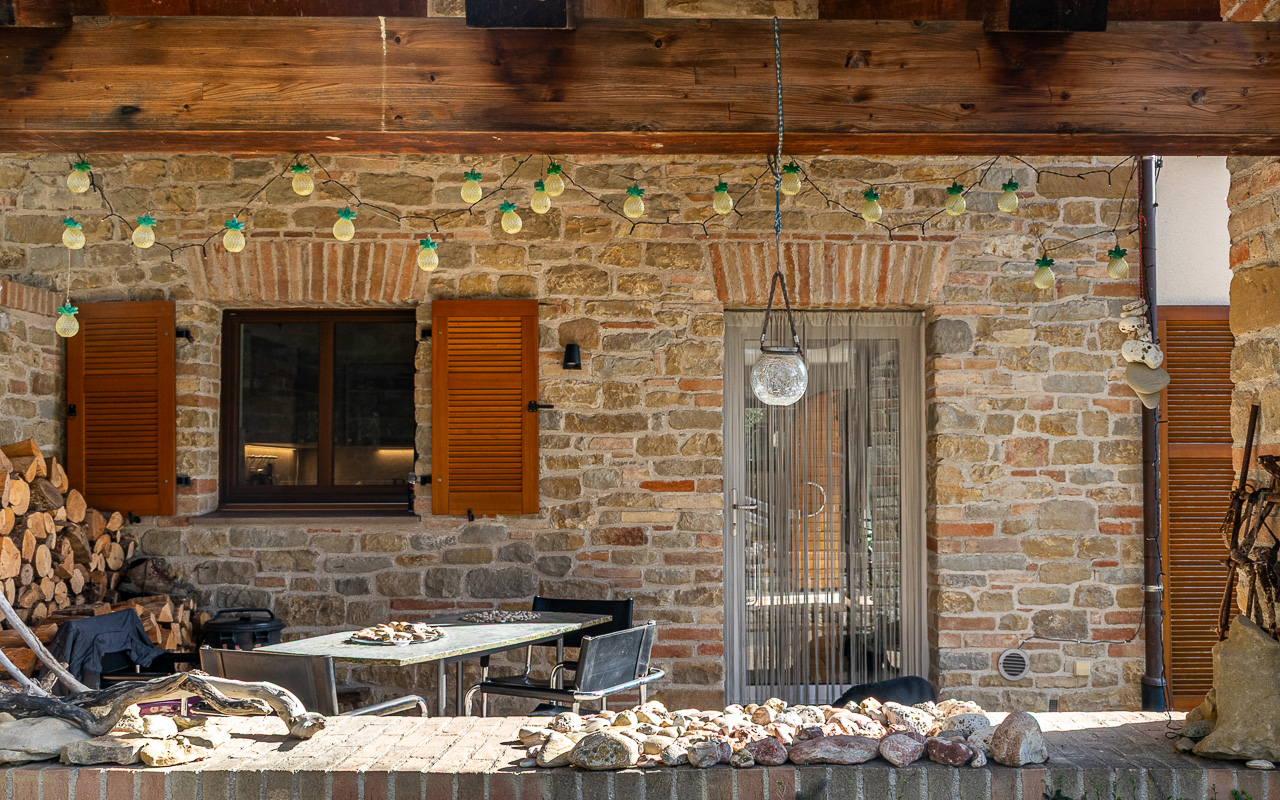 All’esterno, l’abitazione presenta bellissimi muri in mattoni e pietra nello stile tradizionale locale, mentre all’interno offre ambienti luminosi, moderni e confortevoli.