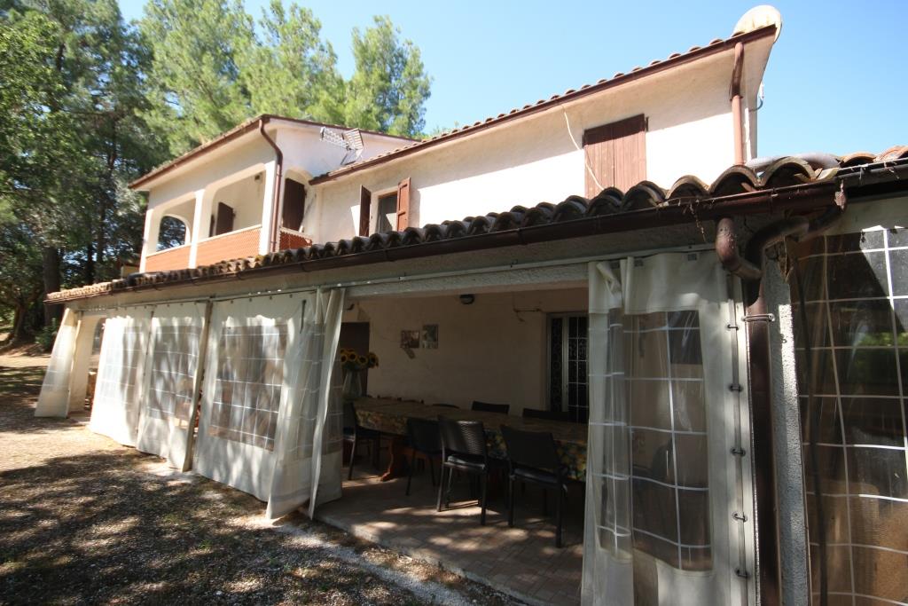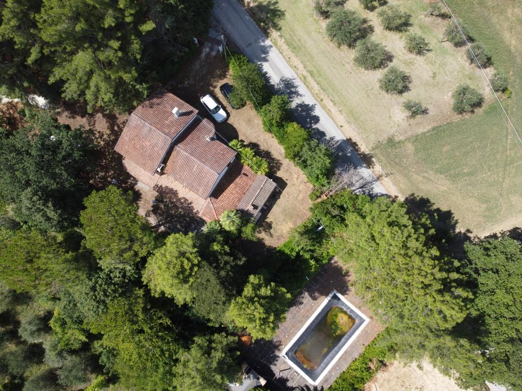 Questa casa di carattere con una superficie abitabile totale di 218 m² si trova in una posizione libera e tranquilla nella campagna intorno al Castello di Piticchio, con meravigliose viste panoramiche su entrambi i lati. La casa dispone di un ampio terreno di circa 7.900 m², di cui 2.800 m² di giardino e il restante terreno è piantato con circa 100 ulivi (60 vecchi, 40 giovani), che trasmettono immediatamente la tipica sensazione di aria aperta italiana.