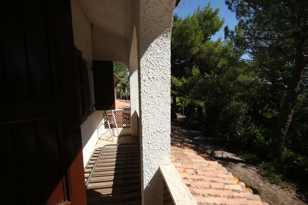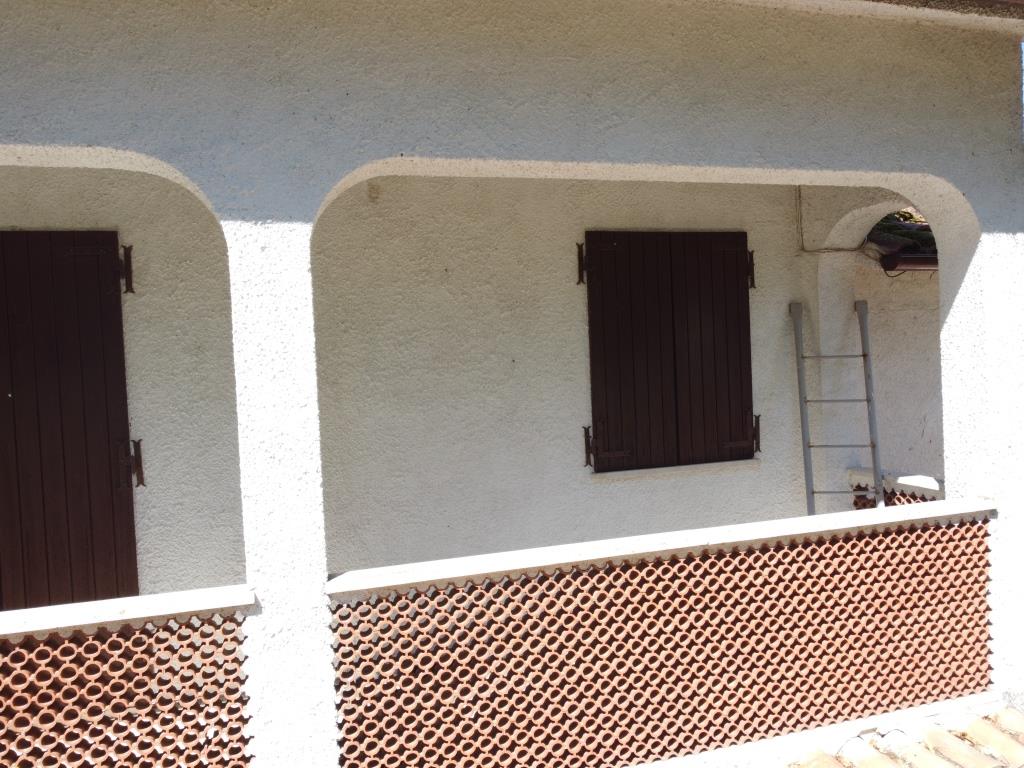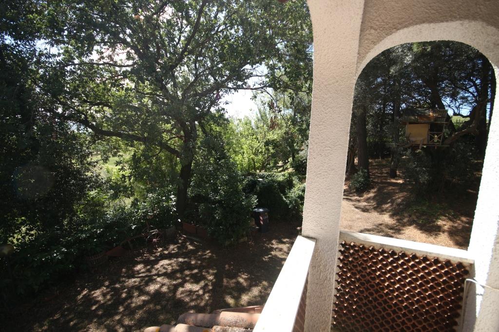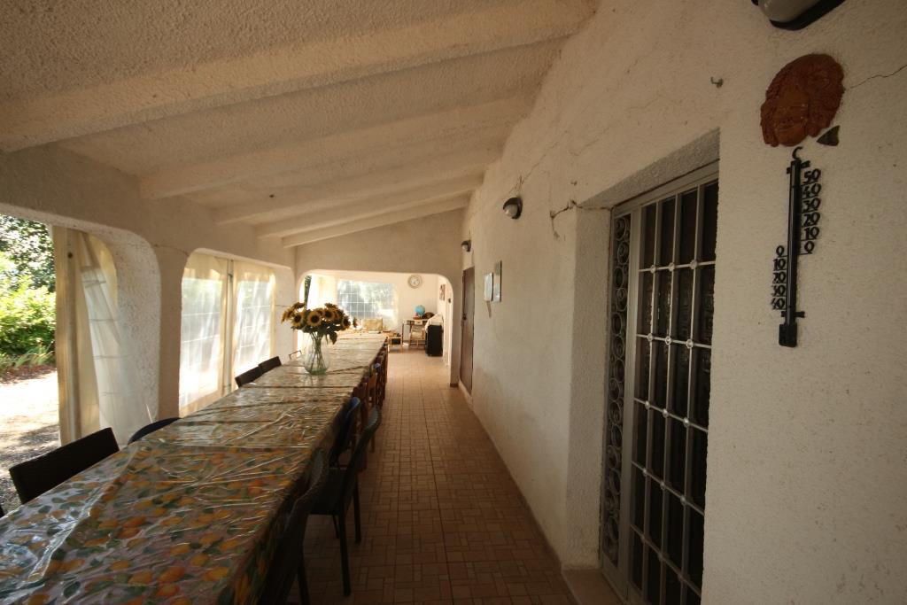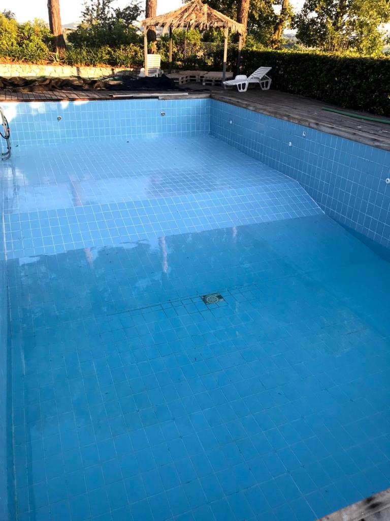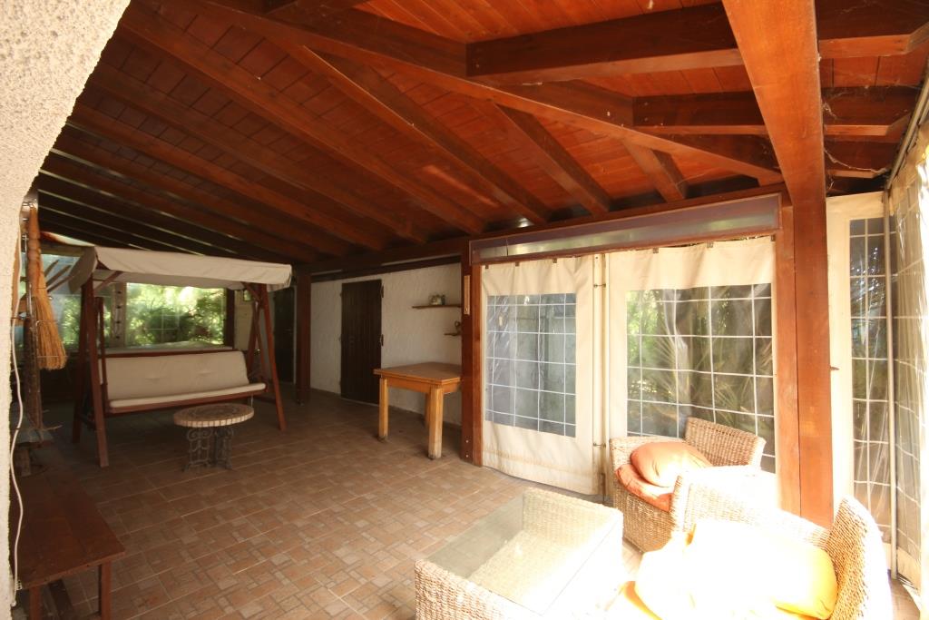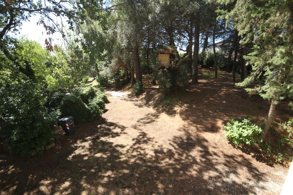 Davanti alla casa c'è un'area barbecue accanto a una scala in tufo che conduce alla piscina inferiore; intorno alla piscina c'è una terrazza solarium con decking in legno che deve essere rinnovato o completamente rinnovato, e fuori dalla terrazza solarium c'è il locale tecnico (9 m²). C'è anche un capanno di 17 m² per riporre gli attrezzi da giardino.