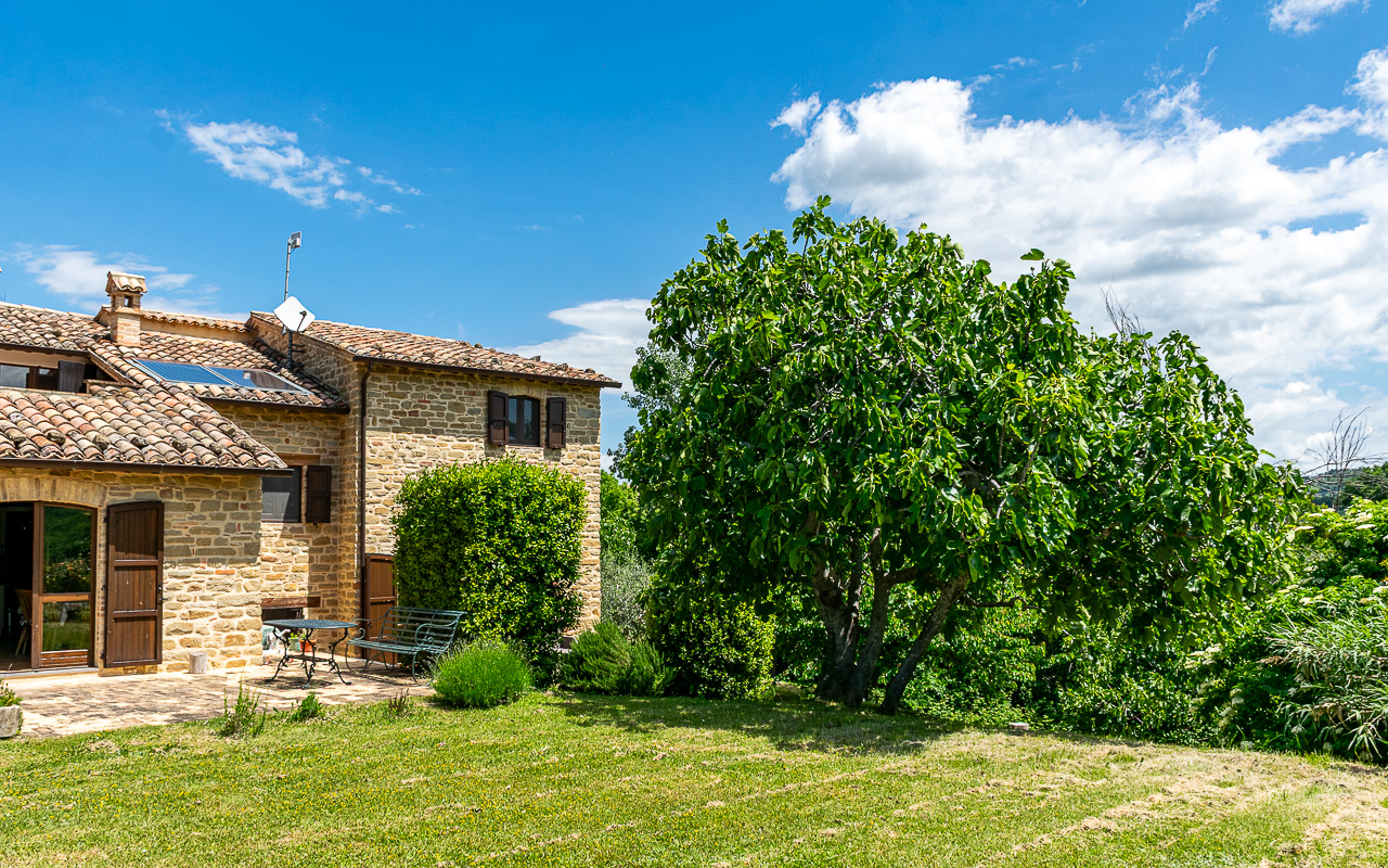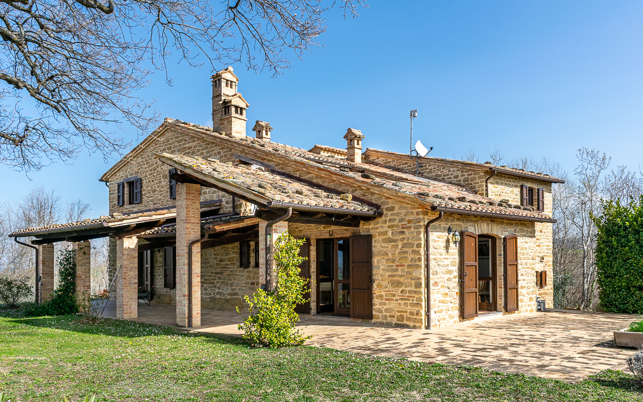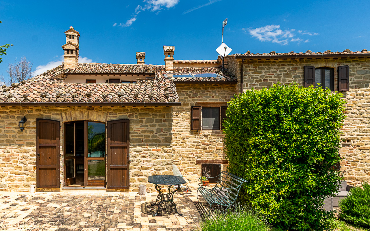 Il casale è stato restaurato con grande cura utilizzando la pietra tradizionale, preservando il carattere autentico e il fascino tipico delle case rurali delle Marche. La casa è disposta su due piani e offre circa 331 mq di superficie abitabile, garantendo ampi spazi sia per la vita familiare sia per accogliere ospiti.