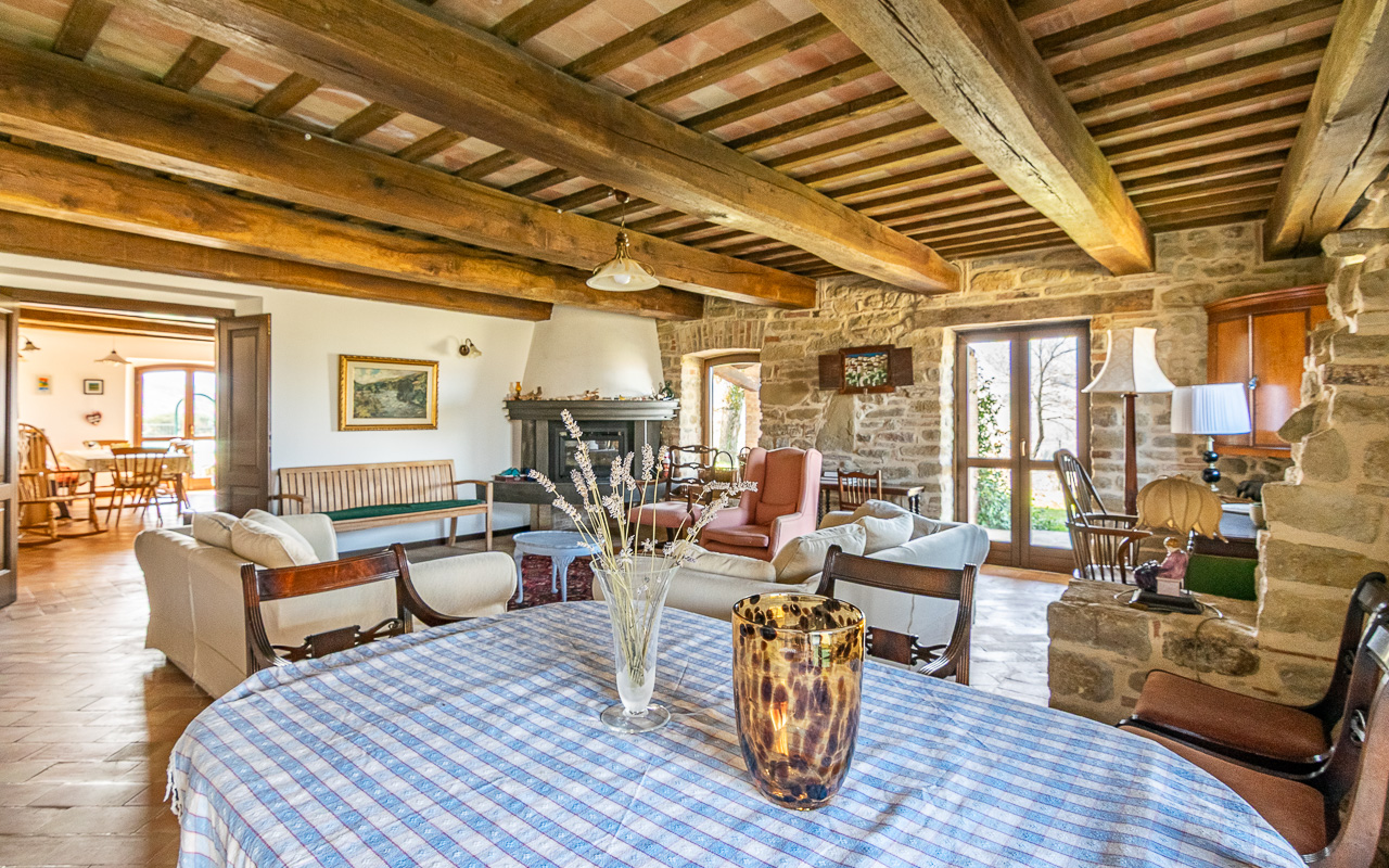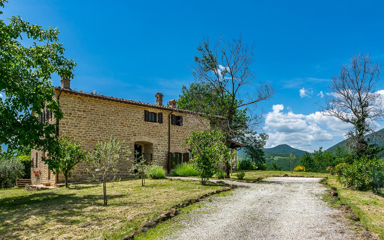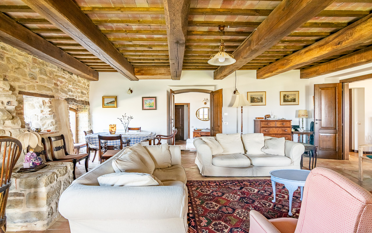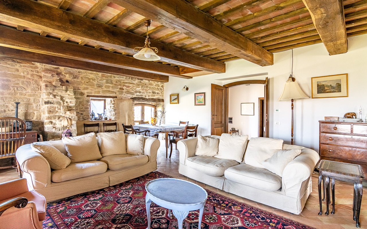 Il casale è stato restaurato con grande cura utilizzando la pietra tradizionale, preservando il carattere autentico e il fascino tipico delle case rurali delle Marche. La casa è disposta su due piani e offre circa 331 mq di superficie abitabile, garantendo ampi spazi sia per la vita familiare sia per accogliere ospiti.