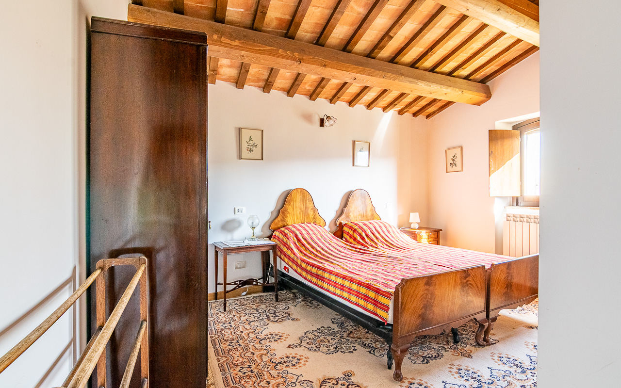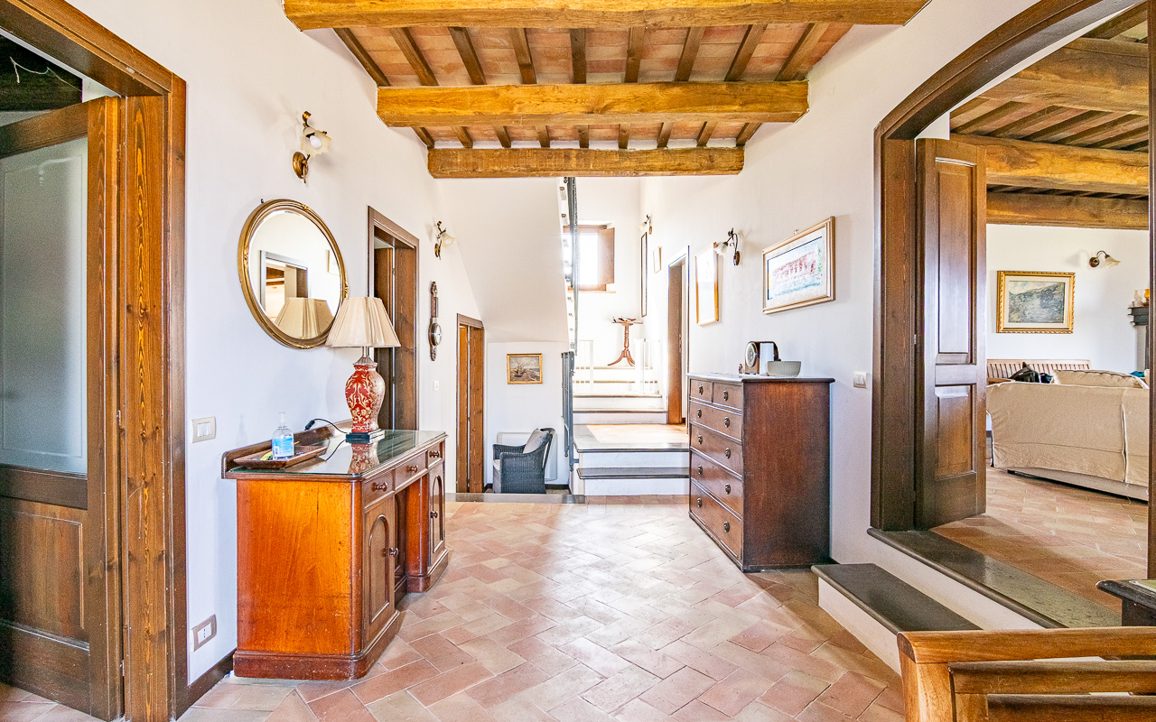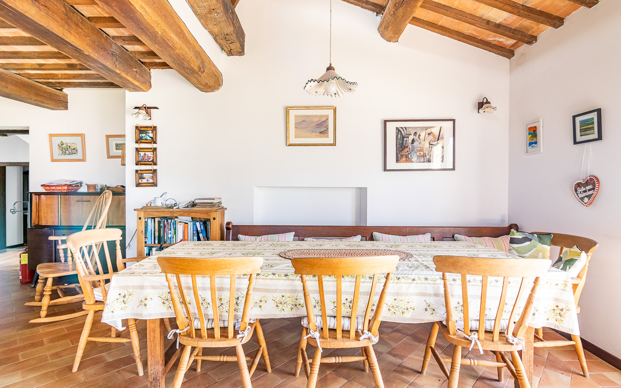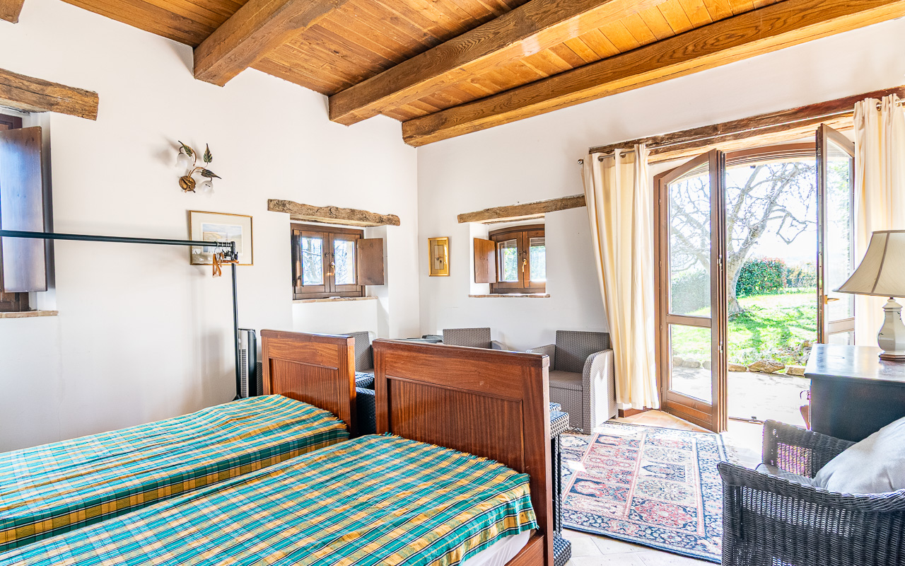 Al piano terra, un accogliente ingresso conduce a un confortevole soggiorno con camino, il luogo ideale per rilassarsi durante i mesi più freschi. Da qui si accede a una cucina luminosa e spaziosa con porte che si aprono direttamente sull’area della piscina, creando un perfetto collegamento tra interno ed esterno durante l’estate. Su questo piano si trova anche una delle camere da letto, con accesso diretto al giardino, un luogo incantevole per uscire al mattino con una tazza di caffè. Completano questo livello un bagno con doccia e diversi locali di servizio e ripostigli, inclusa un’area per la lavanderia. I pavimenti sono rifiniti con tradizionali piastrelle in cotto.