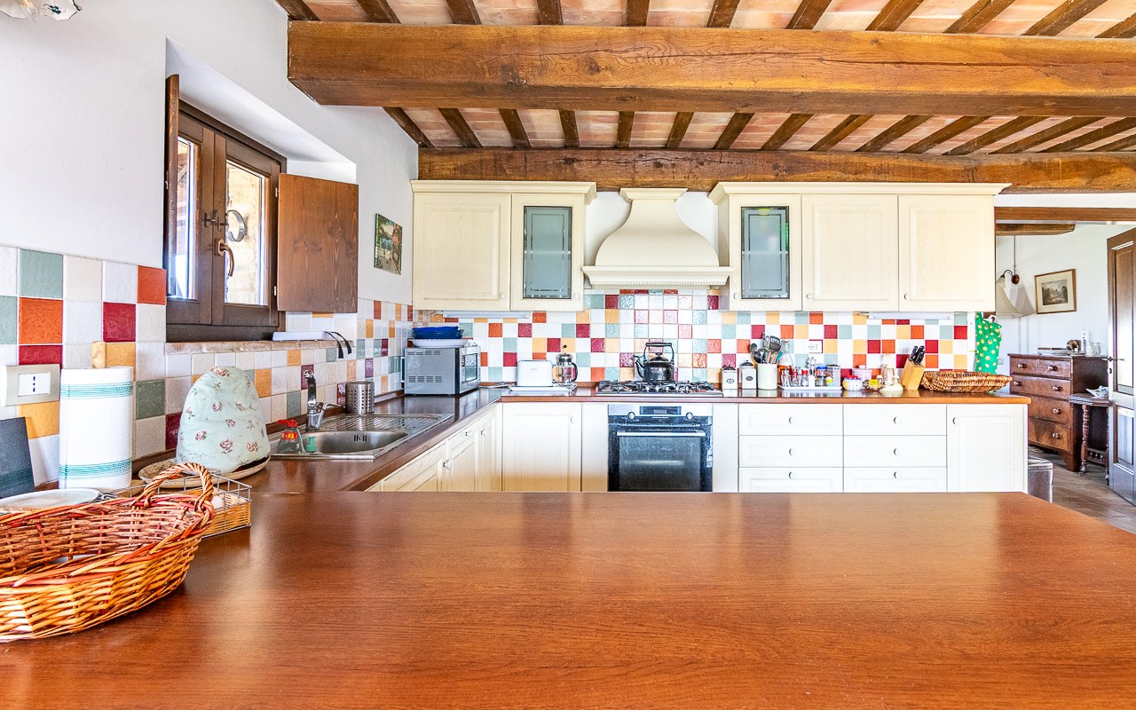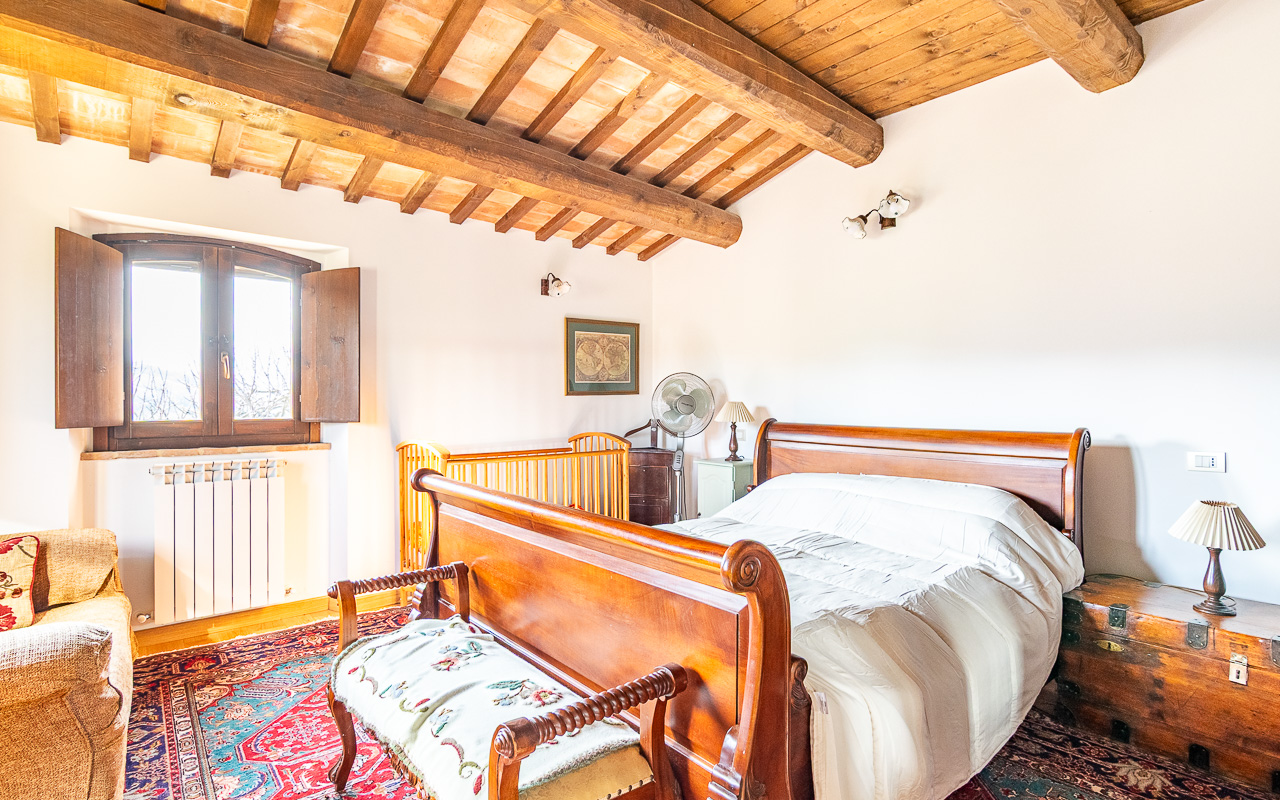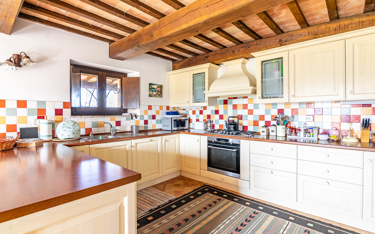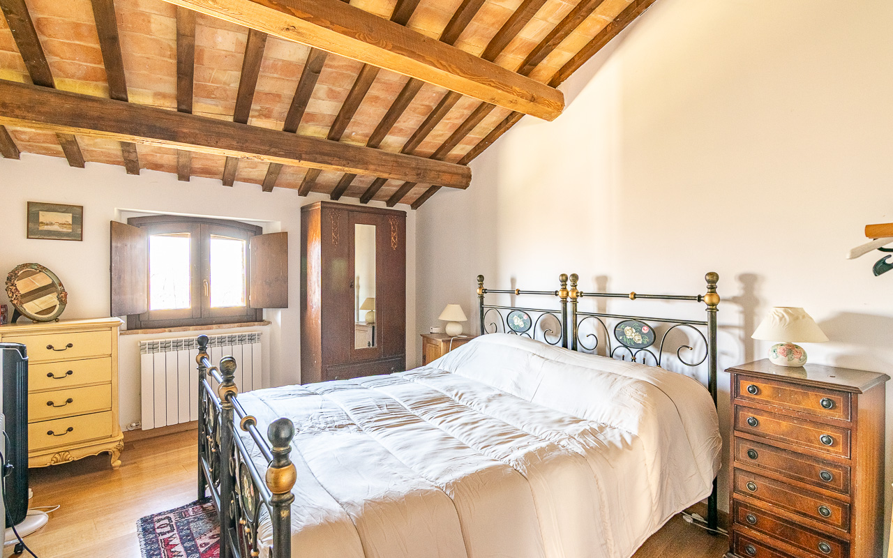 Al piano terra, un accogliente ingresso conduce a un confortevole soggiorno con camino, il luogo ideale per rilassarsi durante i mesi più freschi. Da qui si accede a una cucina luminosa e spaziosa con porte che si aprono direttamente sull’area della piscina, creando un perfetto collegamento tra interno ed esterno durante l’estate. Su questo piano si trova anche una delle camere da letto, con accesso diretto al giardino, un luogo incantevole per uscire al mattino con una tazza di caffè. Completano questo livello un bagno con doccia e diversi locali di servizio e ripostigli, inclusa un’area per la lavanderia. I pavimenti sono rifiniti con tradizionali piastrelle in cotto.