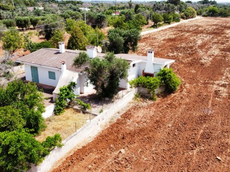 Villetta in campagna a Carovigno con ampio terreno di 8.750 m², situata a pochi minuti dal mare e dal centro. L’immobile, di circa 89 m², dispone di 2 camere da letto, 1 bagno, soggiorno con camino e garage di 26 m². Soluzione ideale come casa vacanza o residenza immersa nella tranquillità.