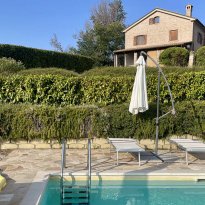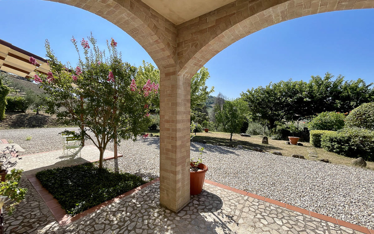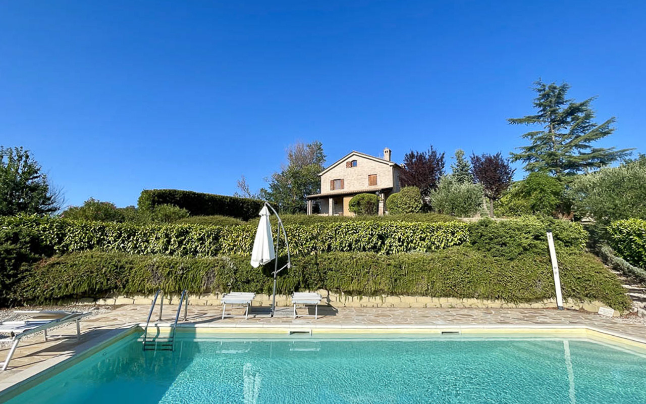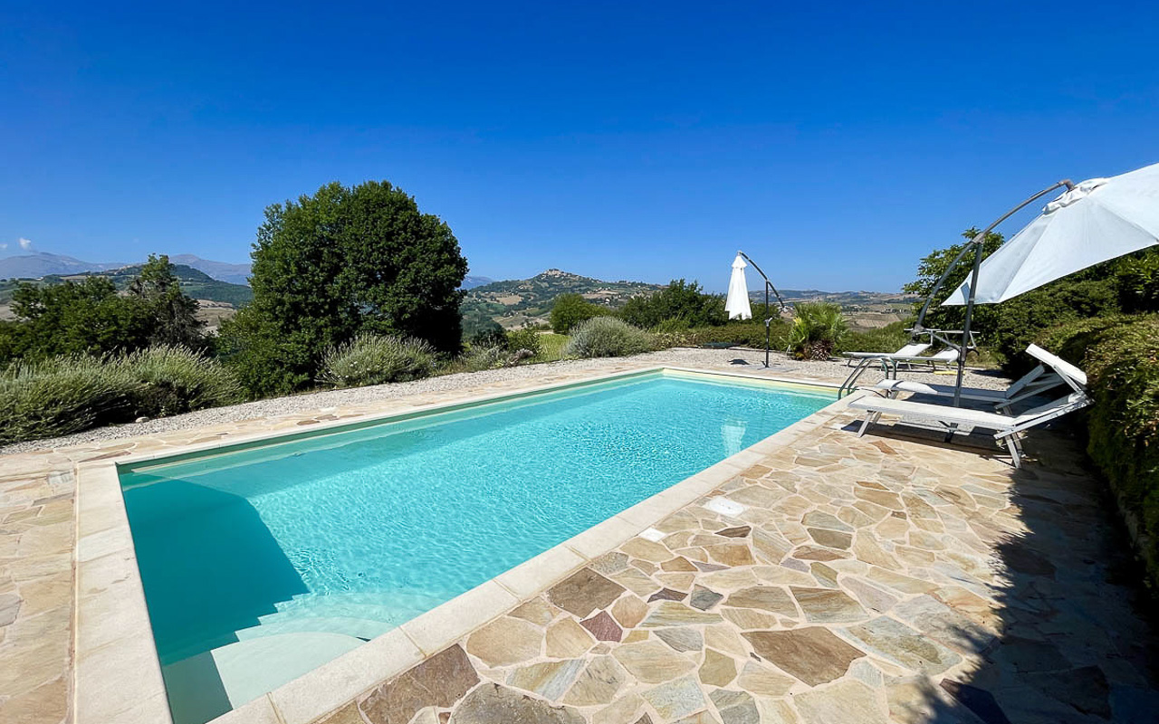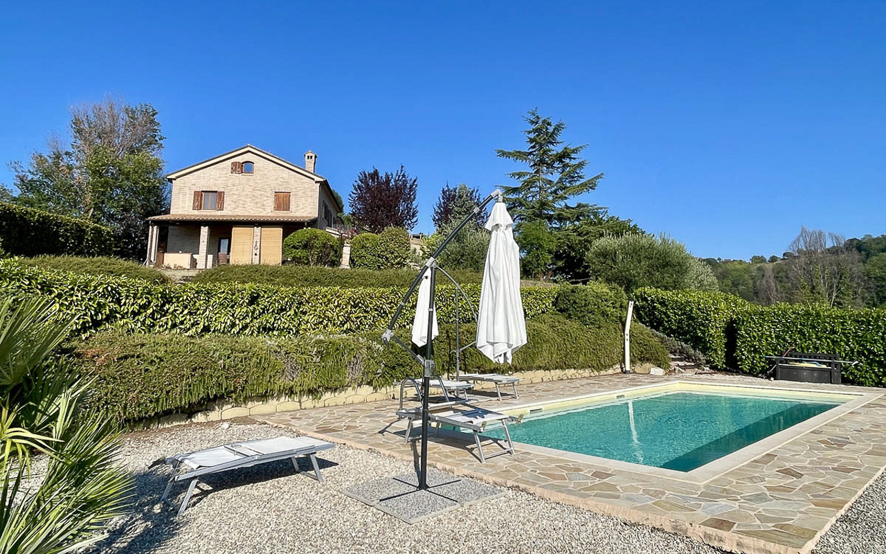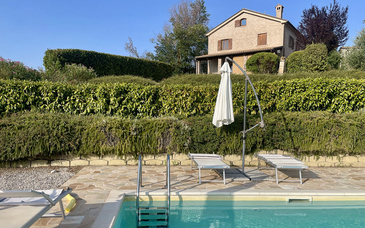 La proprietà viene venduta parzialmente arredata e rappresenta un’opportunità rara per godere di una casa privata con ampi giardini, piscina e viste panoramiche nel cuore delle Marche.
