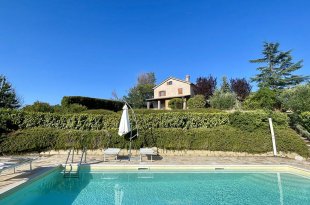 L’edificio principale, che comprende la casa, il garage e un piccolo appartamento indipendente, è stato costruito nel 1998, probabilmente sul sito di un’antica casa colonica, e da allora è stato continuamente migliorato e manutenuto, con l’ultima aggiunta della piscina. La villa offre circa 290 m² di superficie abitativa distribuiti su due piani più un soppalco, oltre a un garage di 26 m² e ampie aree esterne tra portico, veranda e terrazze.