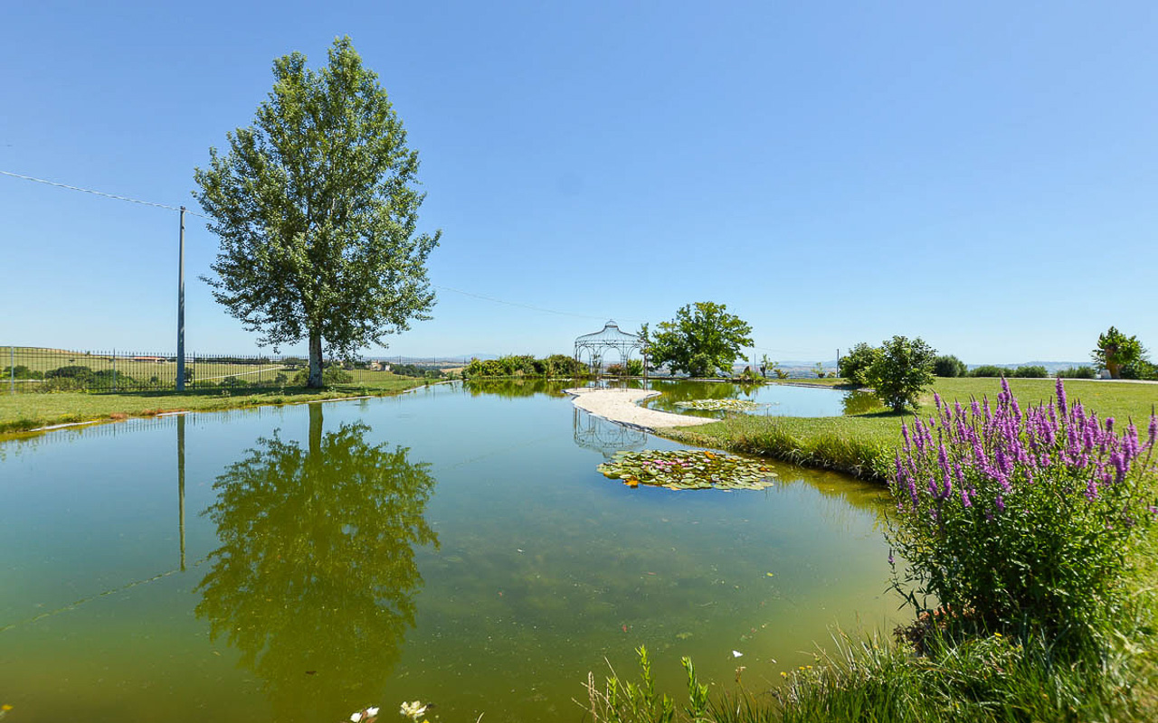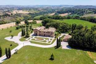 Villa Monastero Santo Stefano is an exceptional property for sale set in the open countryside of Le Marche, perfectly positioned between the Adriatic Sea and the Sibillini Mountains. Surrounded by 360° panoramic views, the villa nestles into the hillside and has been a focal point of the landscape for centuries. With two apartments, an annex, a private chapel, a 5-hole golf course, a pond, and a swimming pool, this estate offers a rare combination of history, luxury, and versatility – ideal as a private retreat, holiday home, or high-end wedding venue.