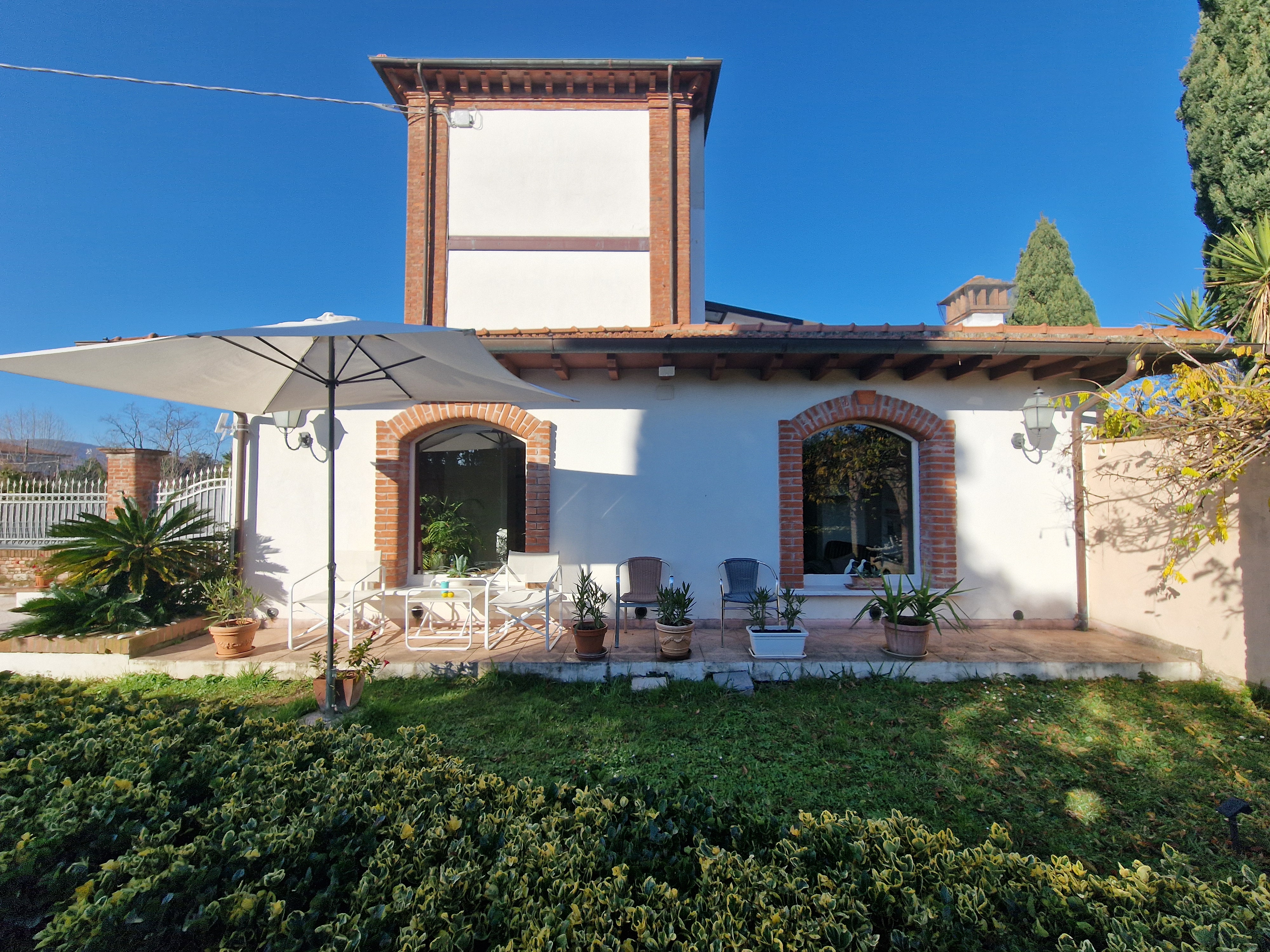 La villa ha una superficie di 322 m² ed è composta da 14 stanze distribuite su tre piani. È circondata da un bellissimo giardino privato di circa 700 m², impreziosito da ulivi, cipressi secolari e una selezione di alberi da frutto. Un autentico giardino mediterraneo, perfetto per momenti di relax e convivialità, con la possibilità di una piscina privata.