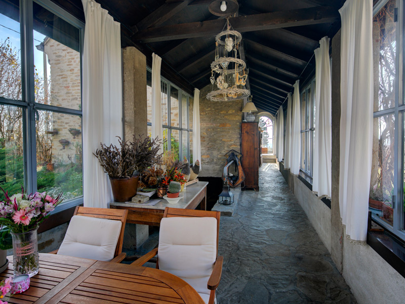 I due edifici sono collegati da una veranda in parte coperta e in parte aperta, un vero e proprio luogo di incontro per la vita domestica: uno spazio dove il tempo sembra scorrere più lentamente.