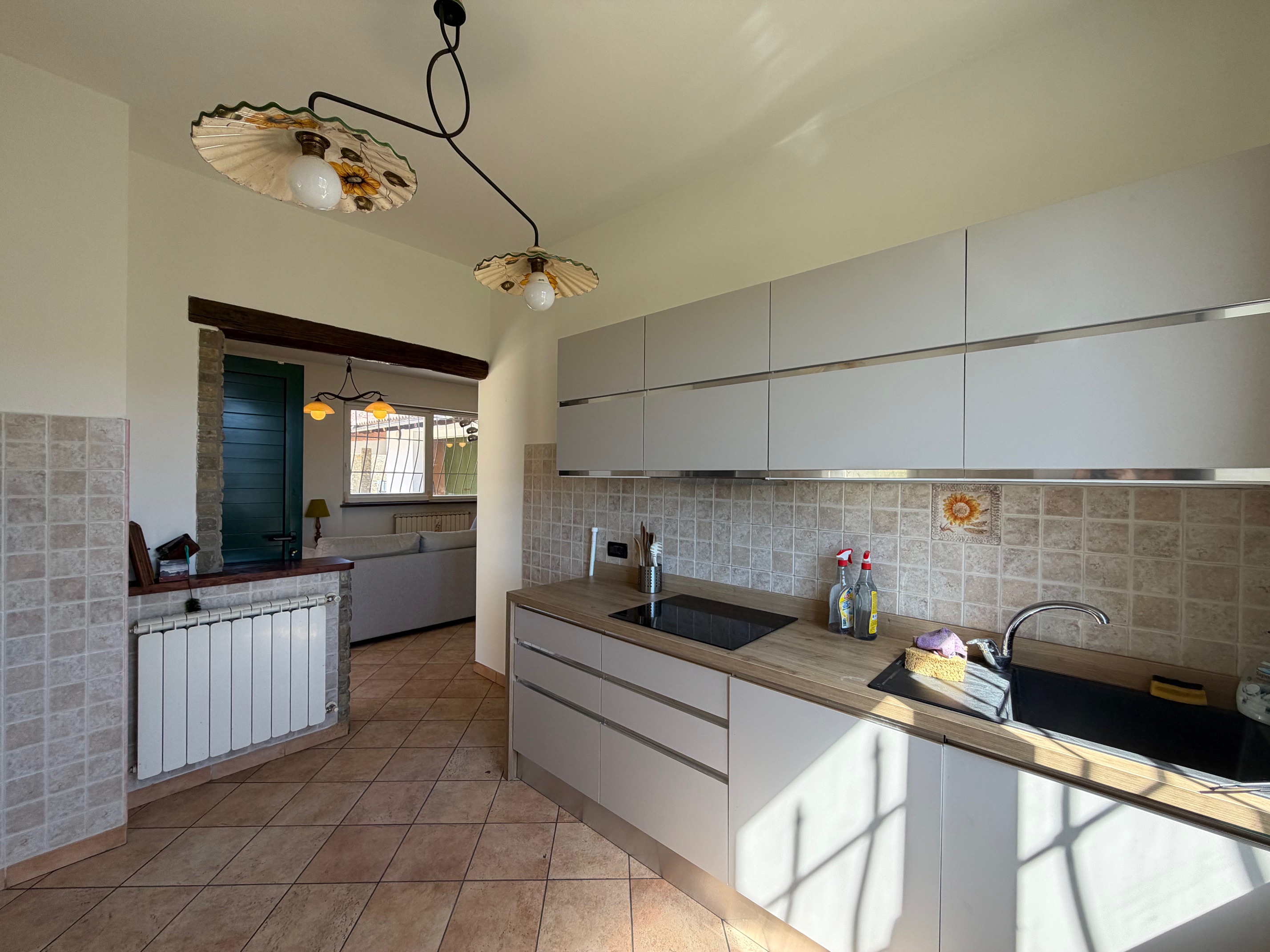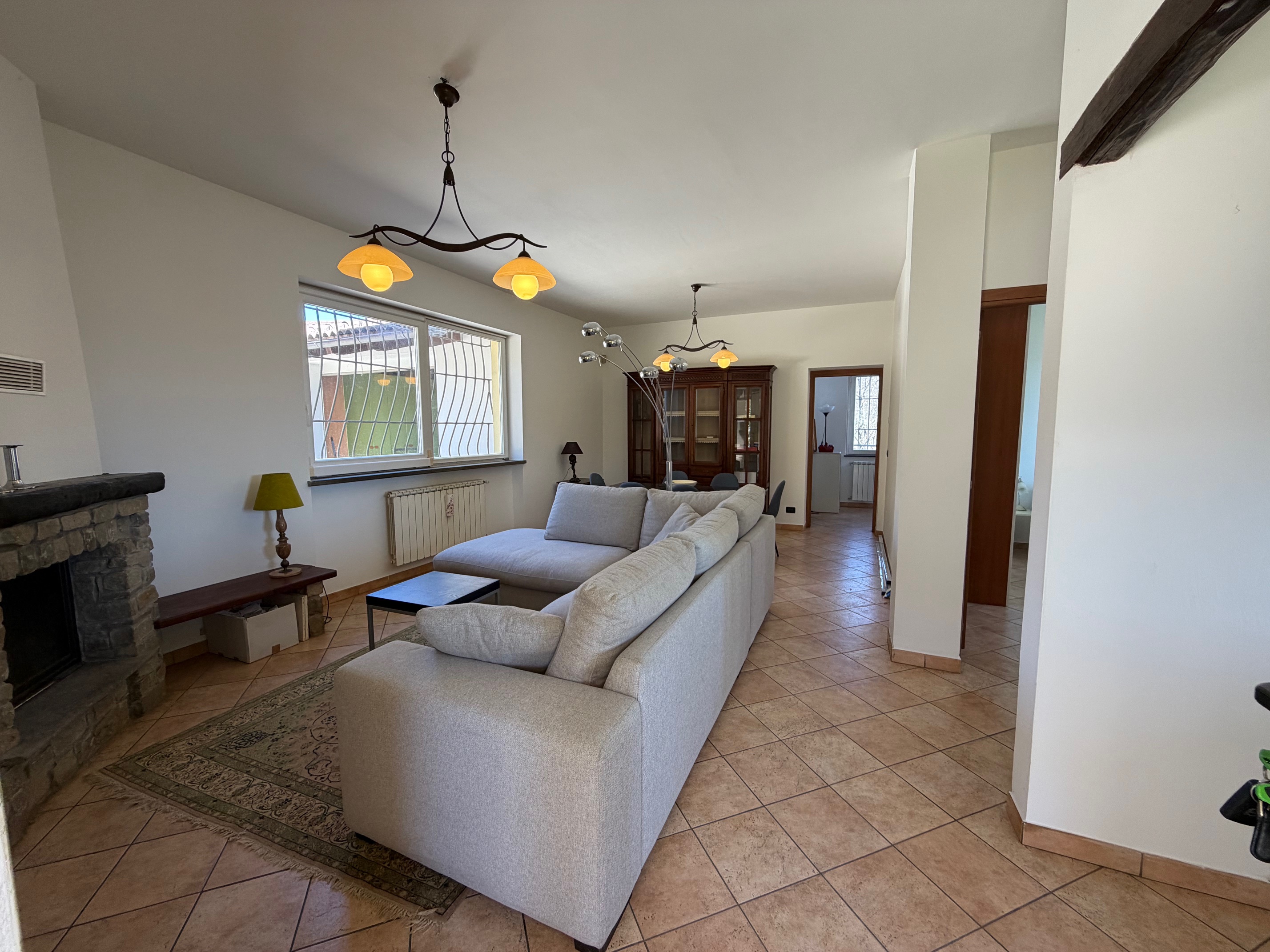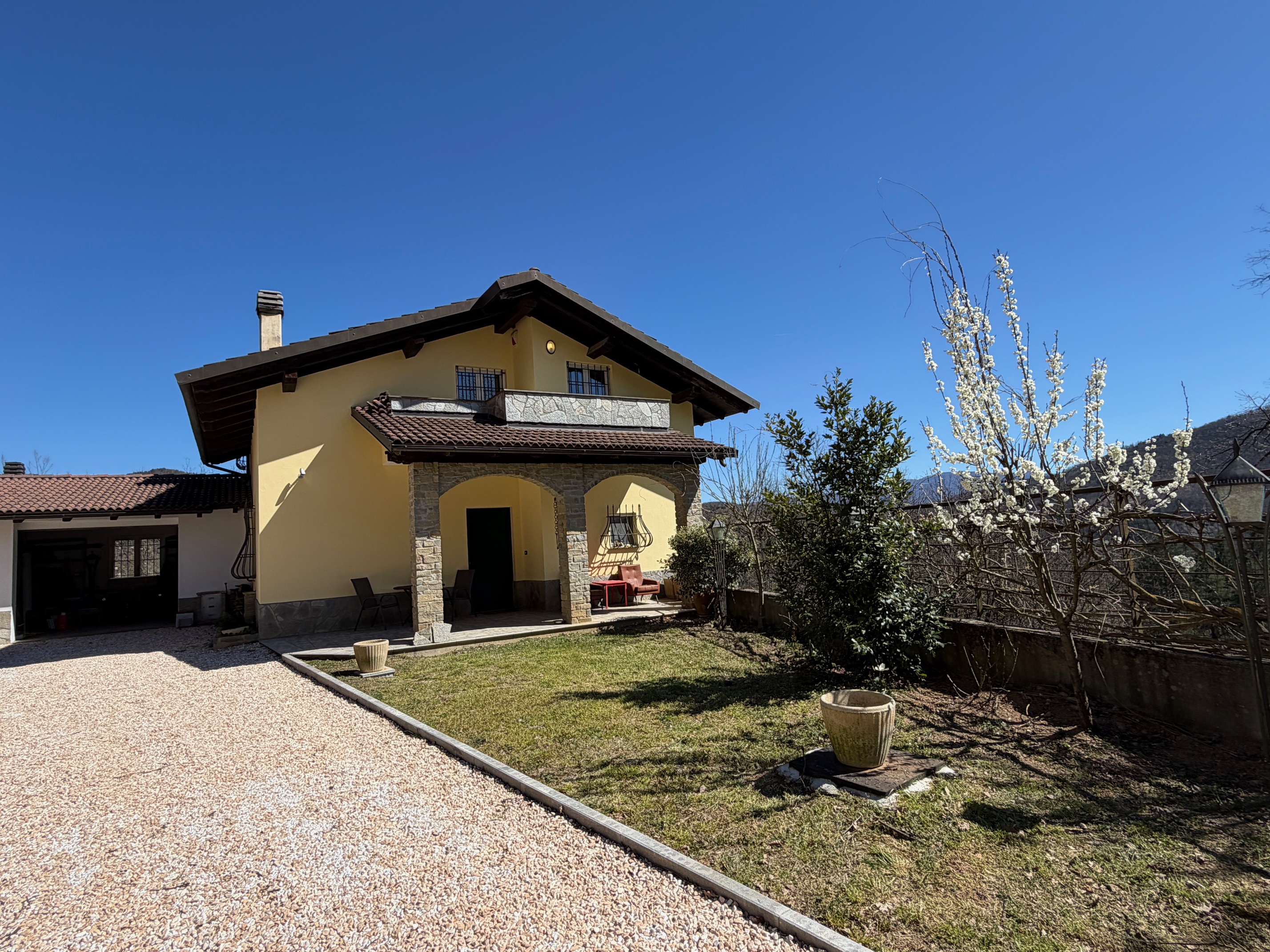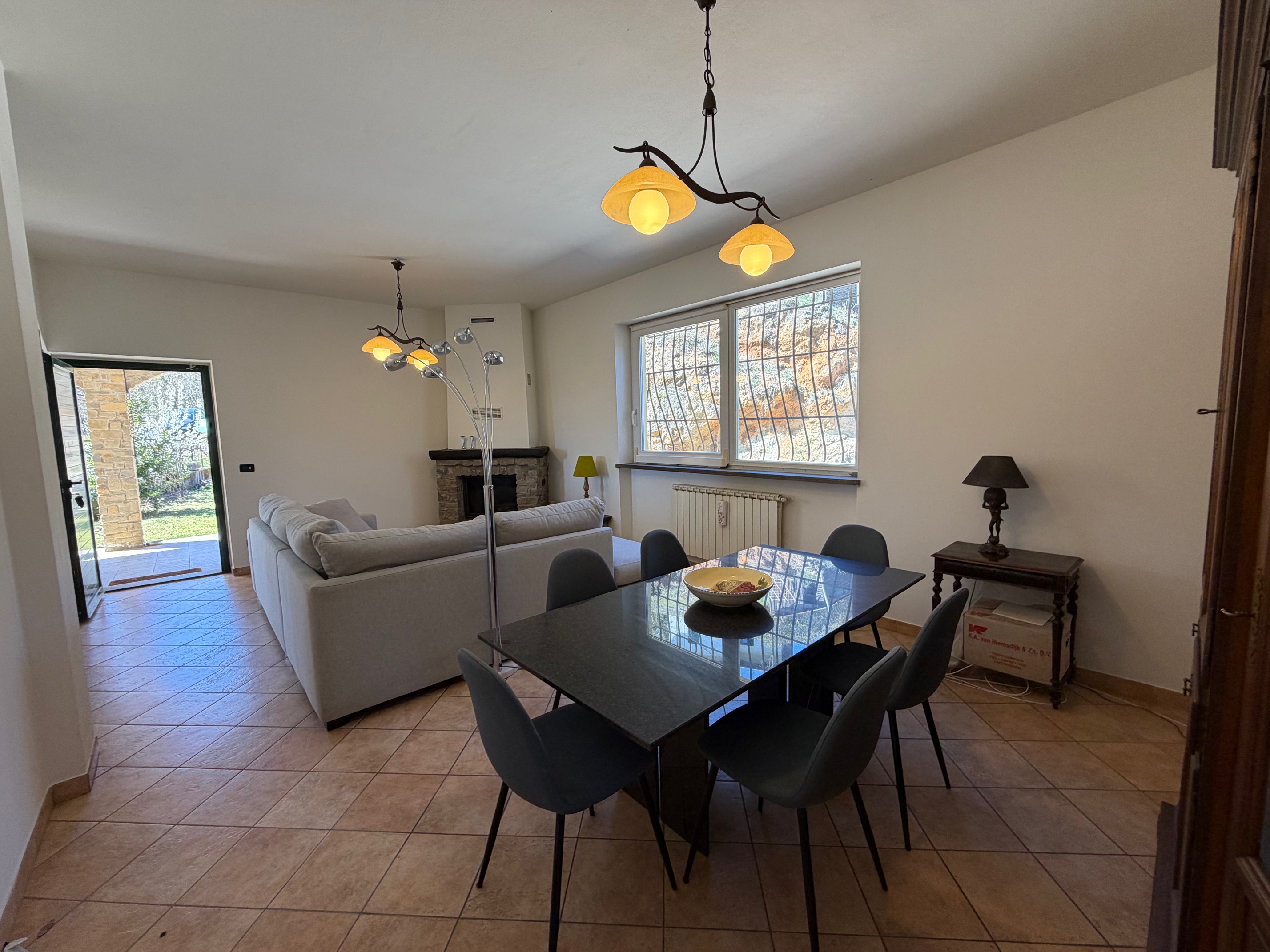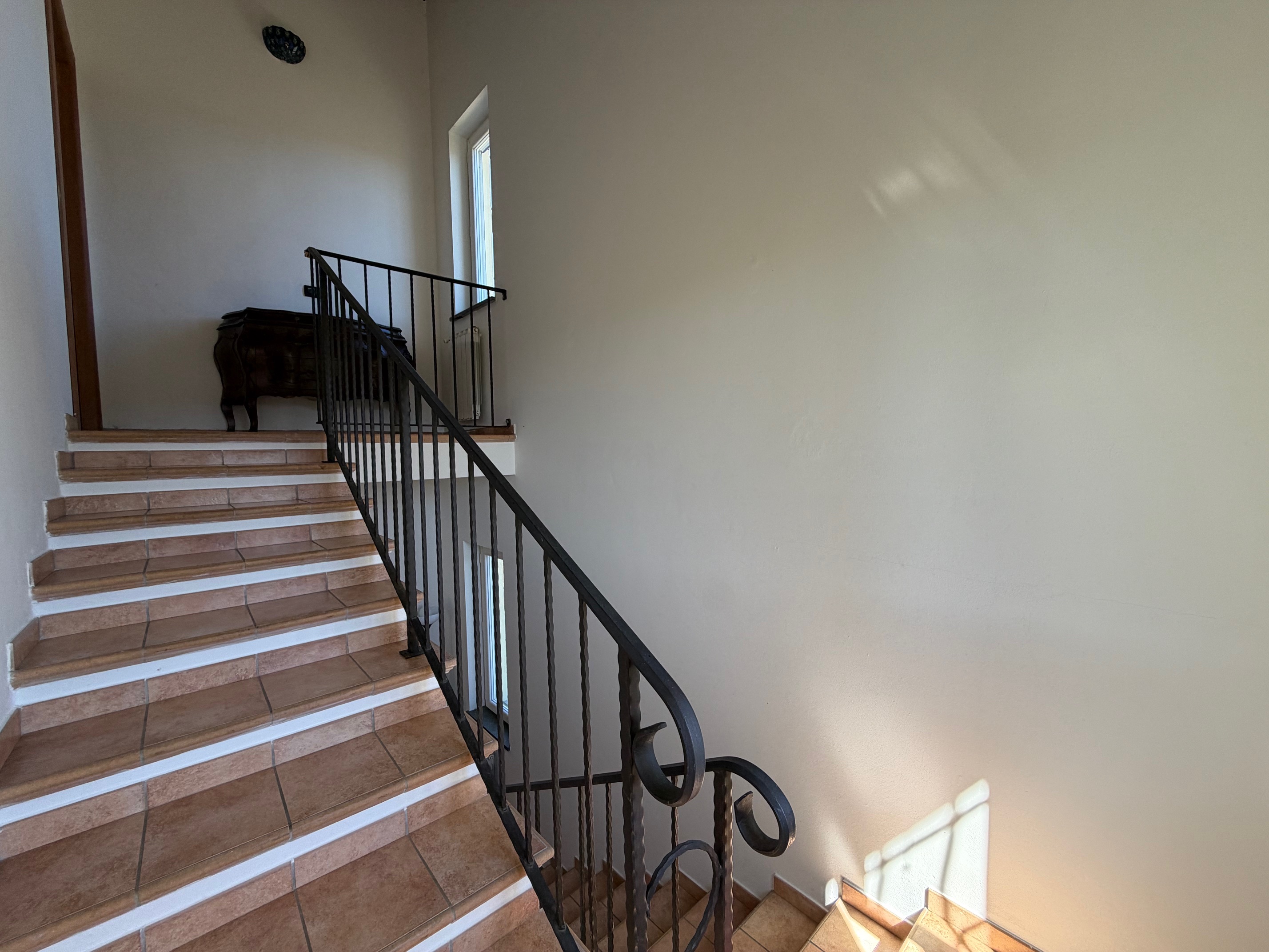 La villa, che si presenta in condizioni immacolate, è circondata da un giardino privato completamente recintato, ideale per chi cerca privacy e sicurezza. La proprietà è distribuita su due piani. Al piano terra troviamo un accogliente ingresso con loggia, un luminoso soggiorno con camino, una cucina funzionale, una camera da letto, un bagno, una lavanderia e un garage. Il piano è completato da un ampio e accogliente portico dove trascorrere le piacevoli serate estive all'aperto. Una scala interna conduce al piano superiore, dove si trovano due camere da letto, un bagno e un ampio disimpegno che potrebbe essere facilmente trasformato in una quarta camera da letto o in una stanza multifunzionale. Il lotto comprende circa 4.000 m² di terreno.